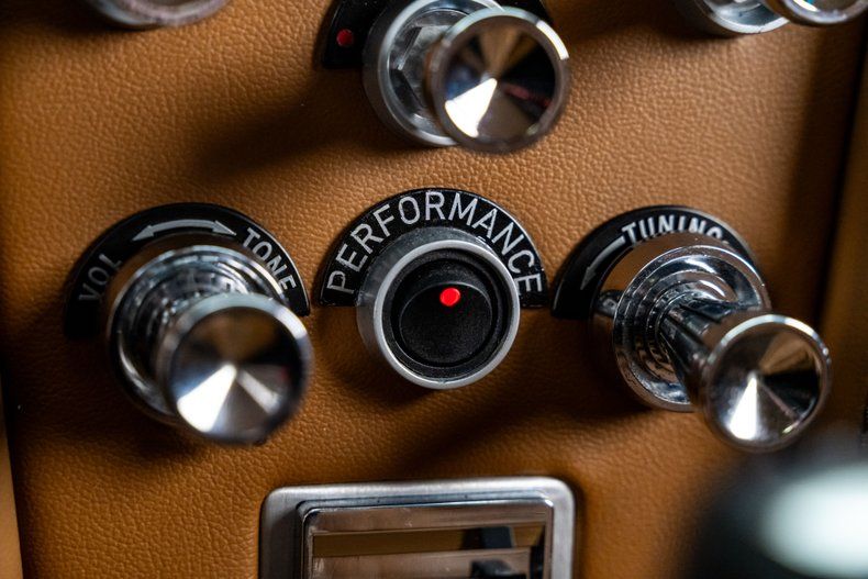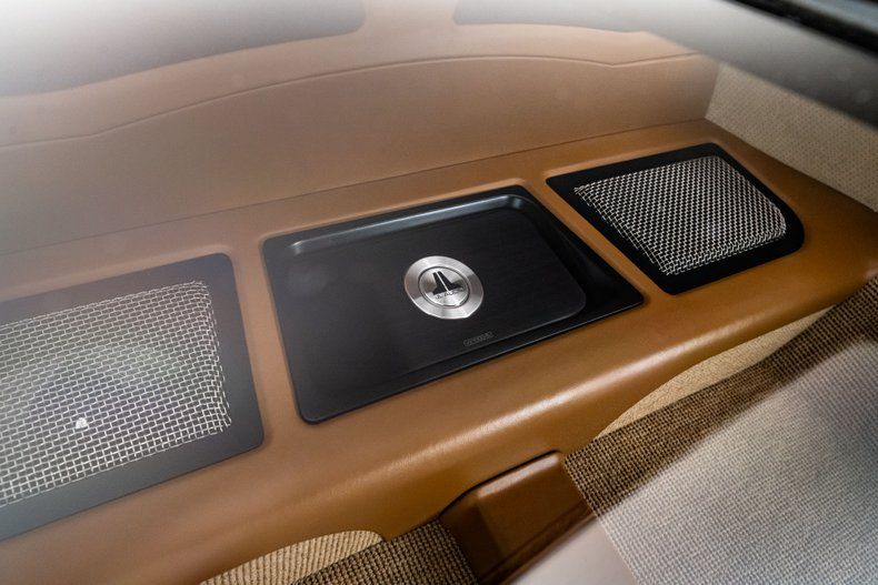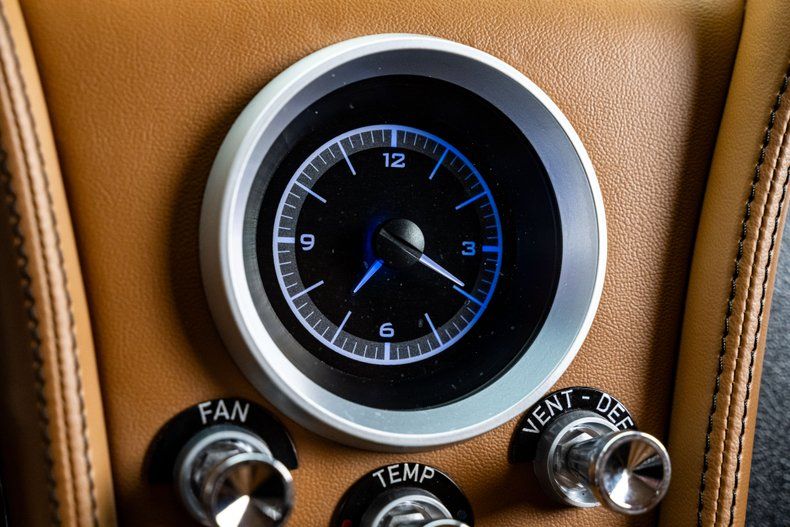 The interior was executed by Dale Hancock Upholstery and delivers a refined, cohesive cockpit that blends original Sting Ray design cues with modern comfort and technology. Custom bucket seats are trimmed in saddle leather with black suede inserts, matched by coordinating door panels and a bespoke saddle leather center console. The original dash bezel remains in place but was extensively modified, with factory openings filled and smoothed for a cleaner presentation. Dakota Digital gauges provide modern accuracy while maintaining a period-appropriate appearance. Additional features include a Flaming River tilt steering column, a custom 15" billet steering wheel, Vintage Air climate control for modern A/C, German square-weave carpeting throughout, and a Custom Autosound receiver that retains a stock appearance. A B&M automatic shifter with a leather knob and custom saddle leather boot completes the cabin. A bespoke custom audio system was added by Miranda Built, utilizing JL Audio components with Bluetooth connectivity.