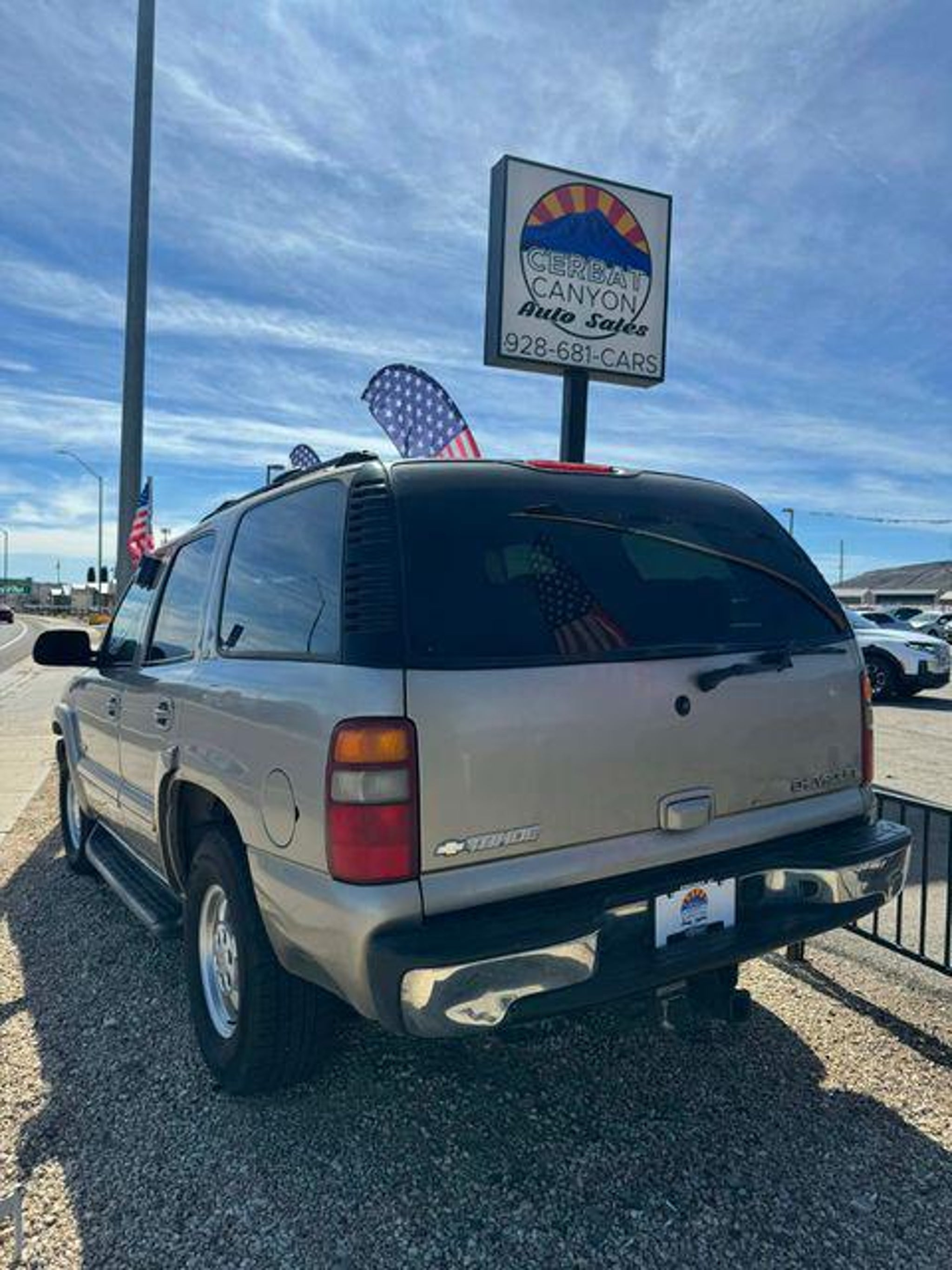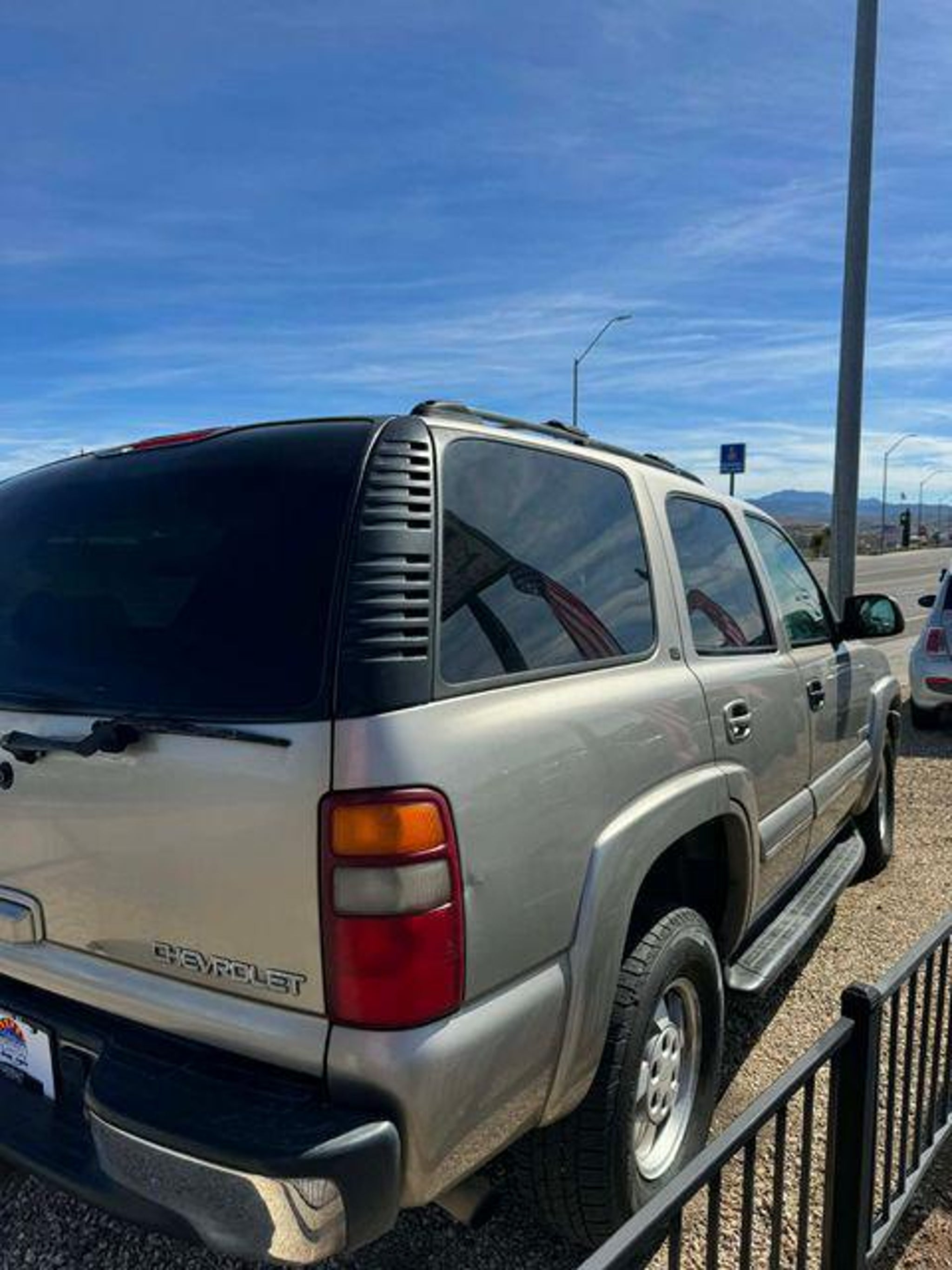 Vortec 5.3L V8 SFI Light Pewter Metallic 2003 Chevrolet Tahoe LT RWD At High Desert Hyundai, we pride ourselves on offering a stellar automotive experience for drivers in Kingman, Henderson NV, and Prescott AZ. Our dedicated team of sales advisors, service technicians, and financing experts are here to address all your needs with the utmost respect, care, and attention to detail. Whether you're interested in the sleek Hyundai Santa Fe Sport, the stylish Sonata, the efficient Elantra, the versatile Tucson, or the compact Accent, our knowledgeable team will guide you through all the features and benefits of each model. If you're in the market for a reliable used car, our team is ready to help you explore our extensive inventory of pre-owned vehicles. Each car undergoes a thorough inspection to ensure it meets our high standards of quality and reliability. Our auto finance team is here to provide personalized solutions that fit your individual needs. Whether you're looking to lease a new Hyundai or finance a pre-owned vehicle, we offer a range of options to make the process stress-free. Start with our online appraisal form and credit application to get a head start. Our commitment to excellence doesn't end with the sale. Our onsite auto service and repair department is staffed with skilled technicians who use cutting-edge tools and technologies to keep your vehicle running smoothly. For those who prefer to perform their own maintenance, we offer a vast collection of authentic Hyundai parts and accessories. High Desert Hyundai has all your automotive needs covered. Whether you're stopping by for a test drive or need an oil change, our team is ready to assist you. Visit us at 4180 N Stockton Hill Rd, Kingman, Arizona, or contact us today to learn more about our services and inventory. This 2003 Chevrolet Tahoe is equipped with the following options: Cargo Package (Cargo Net), Driver Convenience Package (Driver Information Center, HomeLink Wireless Control System, Power Adjustable Pedals, and Steering Wheel Mounted Controls), Heavy-Duty Trailering Equipment (Heavy-Duty External Transmission Oil Cooler and Trailering Hitch Platform), Premium Smooth Ride Suspension Package, 16 x 7 6-Lug Bright Machined Aluminum Wheels, 3.42 Rear Axle Ratio, 4-Wheel Disc Brakes, 60/40 Middle Split-Folding Bench Seat, 8 Speakers, ABS brakes, Air Conditioning, Alloy wheels, AM/FM radio, Auto-dimming Rear-View mirror, Auto-leveling suspension, Black Assist Steps, Bodyside moldings, Bumpers: chrome, Cassette, CD player, Color-Keyed Carpeted Floor Covering, Compass, Driver door bin, Driver vanity mirror, Dual front impact airbags, Floor Console, Front & Rear Wheel Flares, Front anti-roll bar, Front Center Armrest w/Storage, Front dual zone A/C, Front fog lights, Front reading lights, Front Rectangular Halogen Fog Lamps, Front wheel independent suspension, Fully automatic headlights, Heated door mirrors, Heavy-Duty Rear Locking Differential, Illuminated entry, Leather steering wheel, Liftgate w/Liftglass Rear Door System, Occupant sensing airbag, Outside temperature display, Overhead console, Panic alarm, Passenger door bin, Passenger vanity mirror, Power door mirrors, Power driver seat, Power steering, Power windows, Radio data system, Rear air conditioning, Rear anti-roll bar, Rear Cargo Panel Doors, Rear reading lights, Rear seat center armrest, Rear window defroster, Rear-Window Wiper/Washer, Remote keyless entry, Removable 3rd Row 50/50 Split Bench Seat, Removable Color-Keyed Carpet Fr & 2nd Row Floormats, Roof rack: rails only, Security system, Speed control, Split folding rear seat, Tachometer, Tilt steering wheel, Variably intermittent wipers, Voltmeter, and Weather band radio.