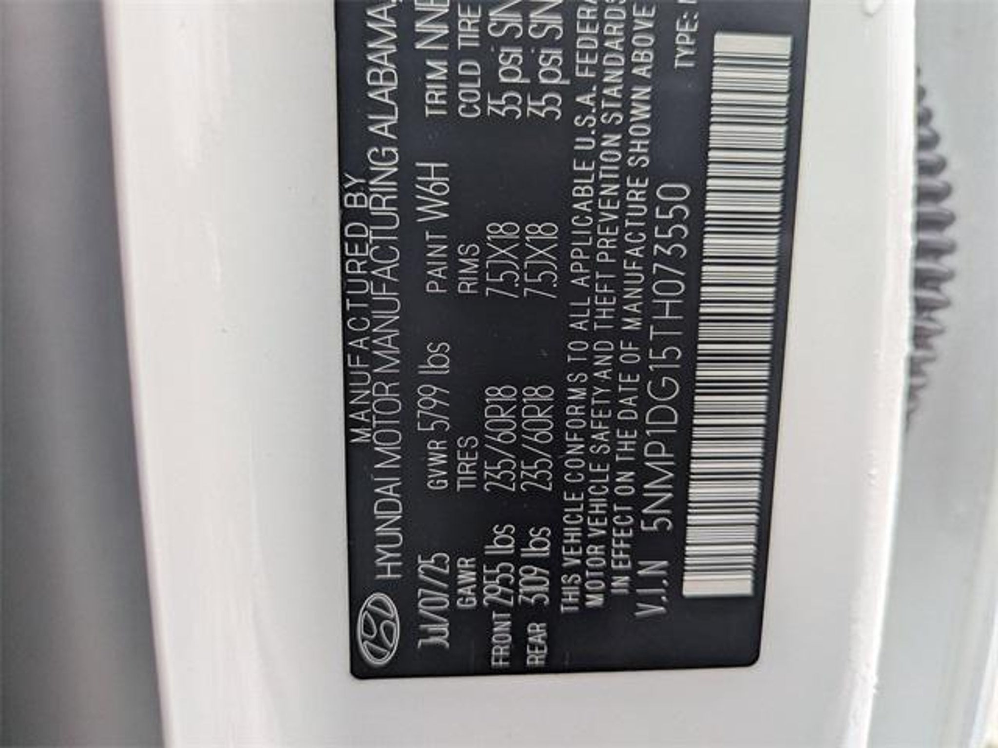 VIN 5NMP1DG15TH073550