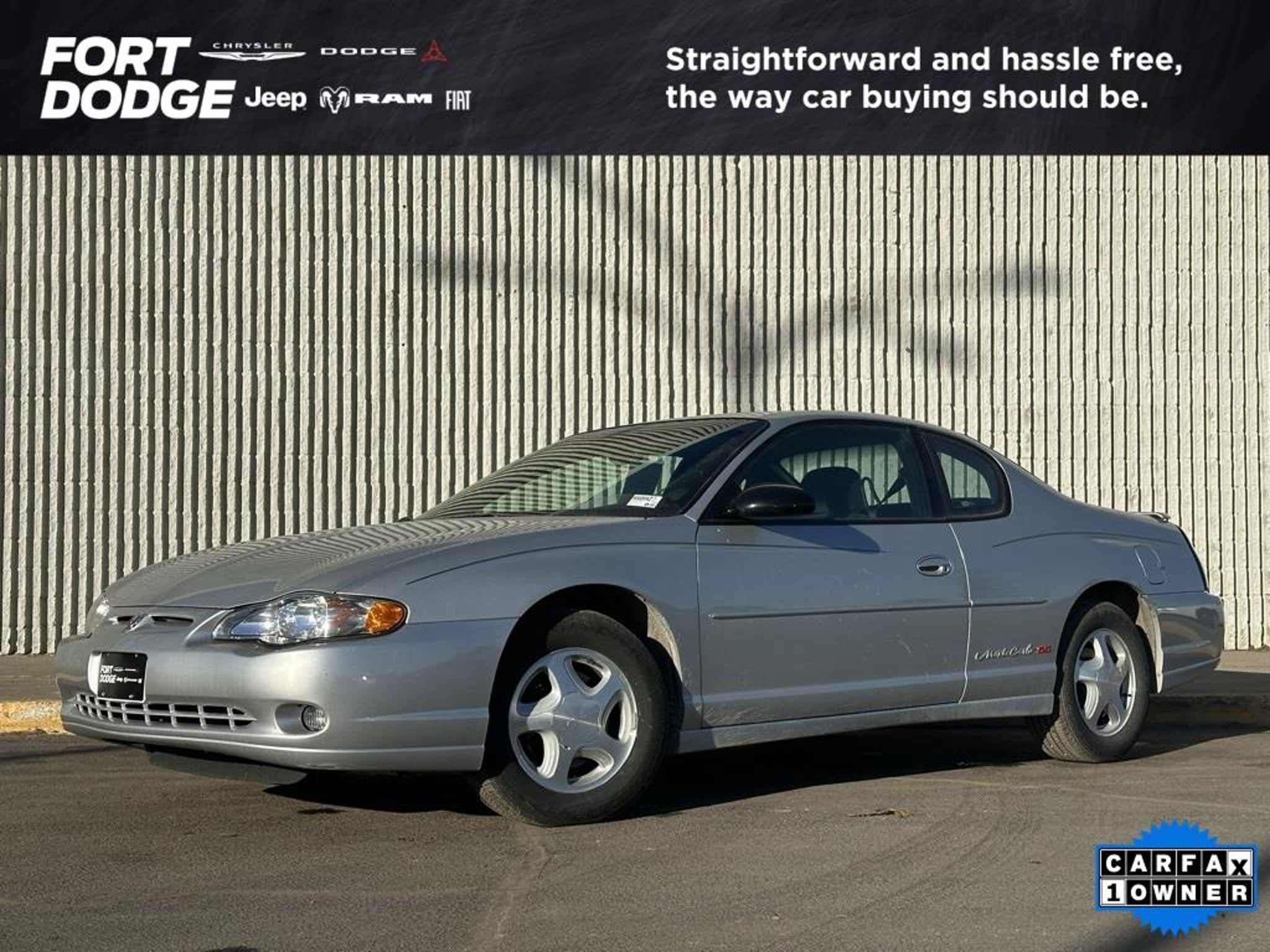 Recent Arrival! CARFAX One-Owner. Galaxy Silver Metallic 2000 Chevrolet Monte Carlo SS FWD 4-Speed Automatic with Overdrive 3.8L V6 SFI Series II Preferred Equipment Group 1SA, Front fog lights. Be happy with your purchase! If you're not completely satisfied with the vehicle you buy, just bring it back within 7 days for a 100% refund, or exchange it within 30 days for an equal or higher priced model on our lot, no questions asked. Our Sales Consultants have your best interests in mind, focusing on your needs. Le podemos ayudar en Espanol. 20/29 City/Highway MPG