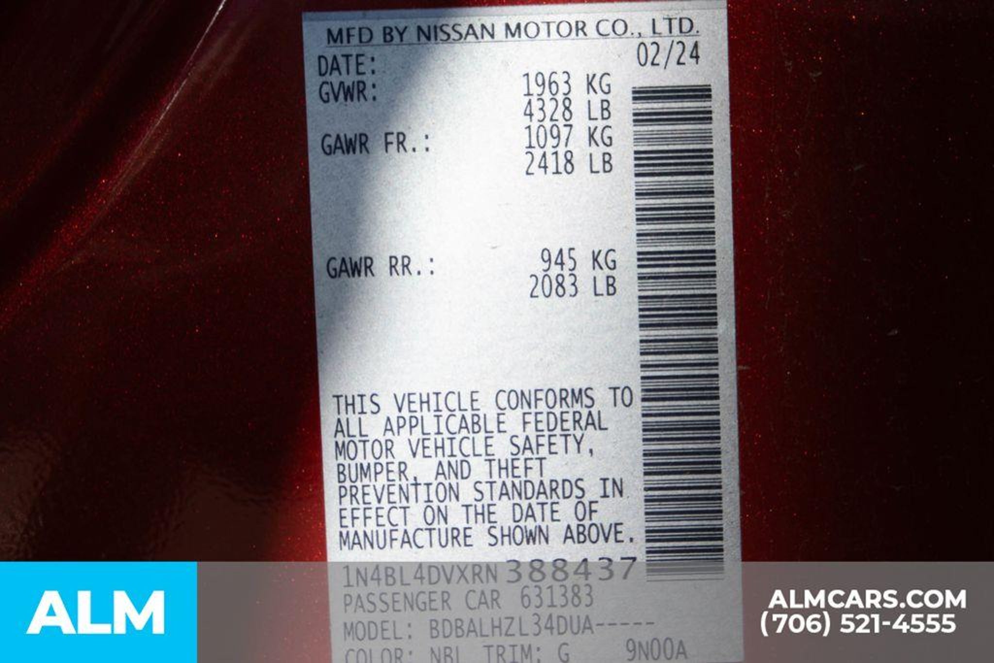 VIN 1N4BL4DVXRN388437