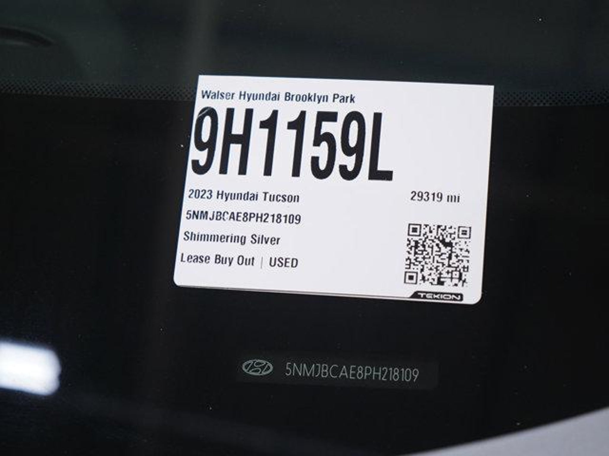 *2023 Hyundai Tucson SEL**VIN:* 5NMJBCAE8PH218109*Exterior Color:* Shimmering Silver*Interior Color:* Gray*MSRP:* $32,185.00*Key Features* * *2.5L I-4 engine with 8-Speed Automatic and AWD* delivers confident performance with multi-link rear suspension and electronic transfer case. * *LED lighting suite* includes LED headlights, automatic high beams, and daytime running lights for enhanced visibility. * *Heated front seats and power driver seat* with lumbar support and cloth upholstery for everyday comfort. * *Smart tech integration* with Apple CarPlay, Android Auto, Bluetooth, HD Radio, satellite radio, and smart device connectivity. * *Adaptive cruise control and cruise control steering assist* support relaxed highway driving and traffic flow. * *Comprehensive safety suite* includes blind spot monitor, lane keeping assist, front collision mitigation, and rear head airbags. * *Convenience features* like keyless entry, remote engine start, hands-free liftgate, and multi-zone climate control. * *Stylish exterior* with aluminum wheels, rear spoiler, body-colored bumpers with metal-look inserts, and black cladding. * *Interior refinement* includes auto-dimming rearview mirror, dual illuminated vanity mirrors, and pass-through rear seat. * *Back-up camera and trip computer* provide real-time driving data and confident maneuvering.At Walser, you'll get an exceptional car-buying experience. Our *streamlined process* means you'll work with one dedicated customer specialist to help you find the perfect vehicle. Upfront Pricing on every vehicle ensures you'll *get a great deal without any surprises or gimmicks*. Buy with confidence because you're backed by our *Worry-Free Return & Exchange Policy*.The benefits don't stop there. We want you to be happy long after you've left our store, so we include a *complimentary WalserCare warranty* with most used vehicles. Every used vehicle also undergoes a *comprehensive 190-point inspection* and includes a *free CarFax History Report*. Simply put: there's no better place to get a used car.The best car-buying experience starts right here at Walser.