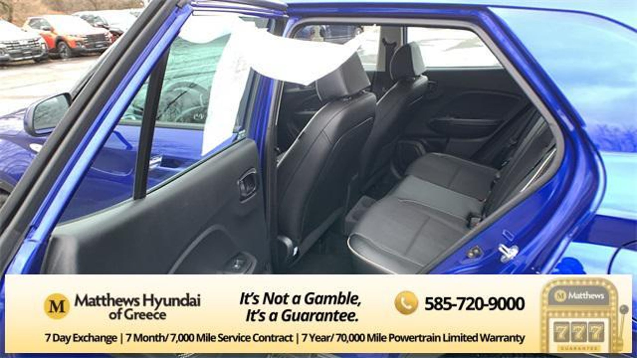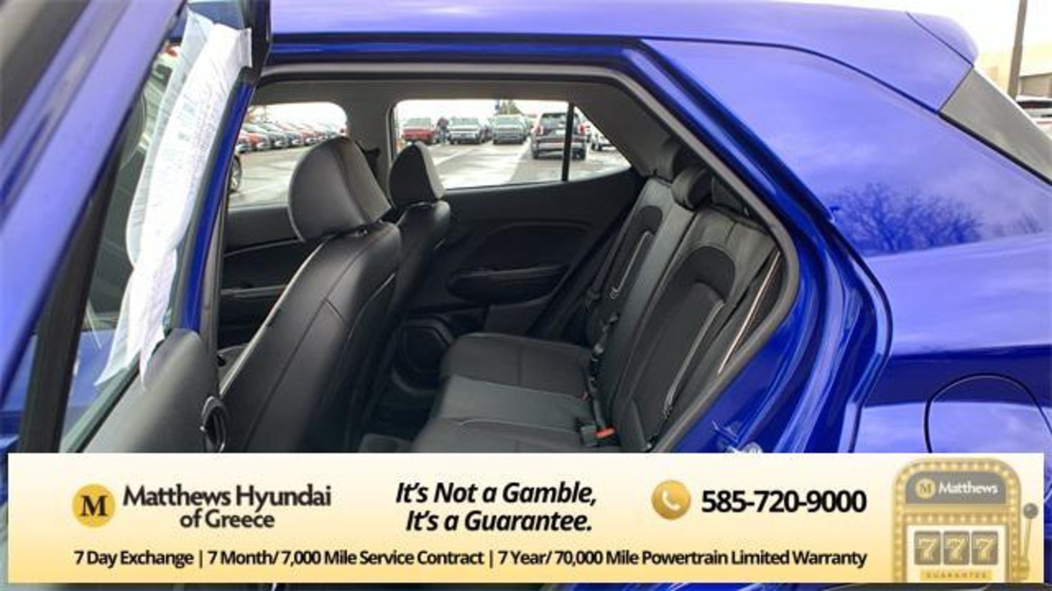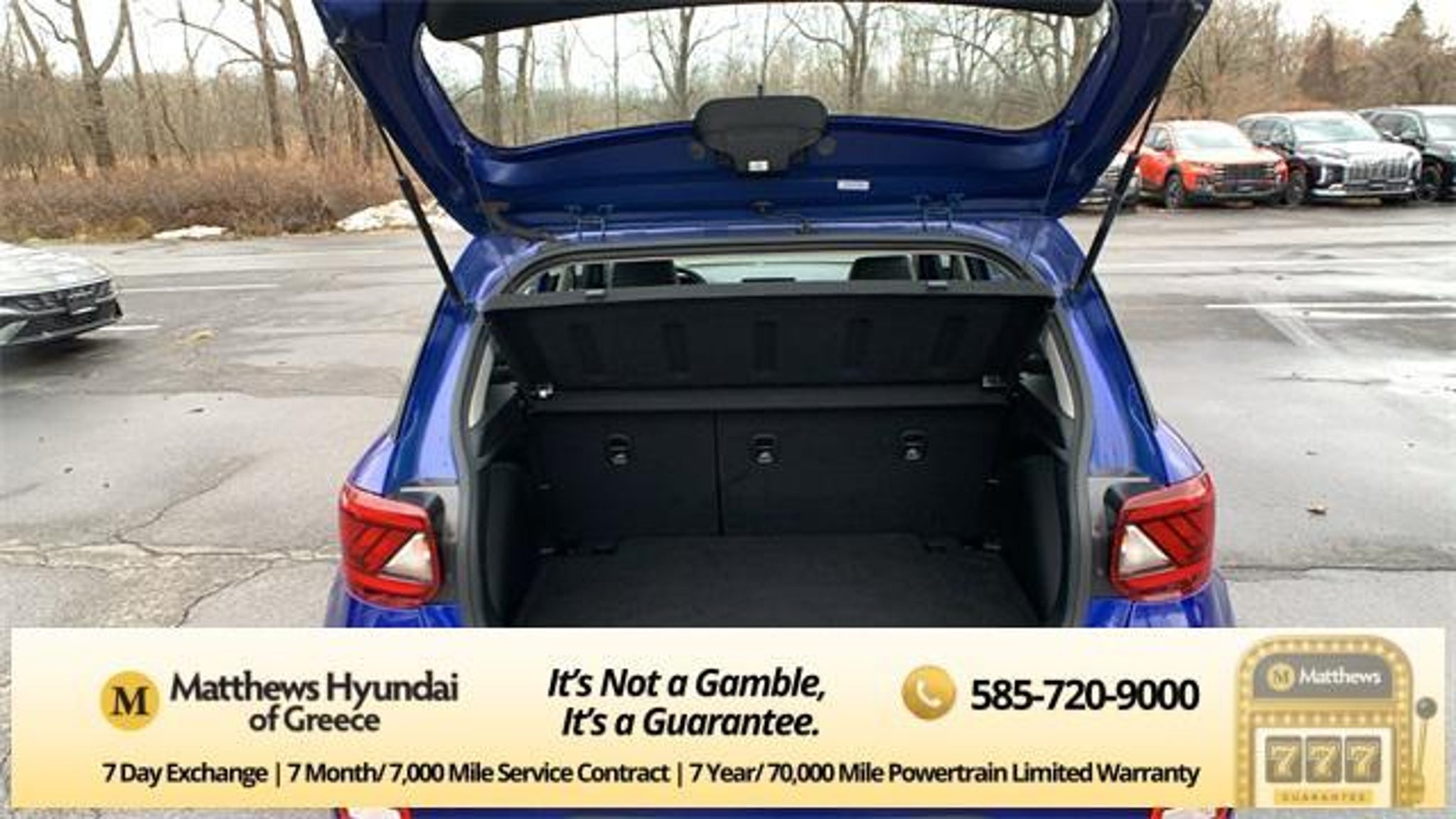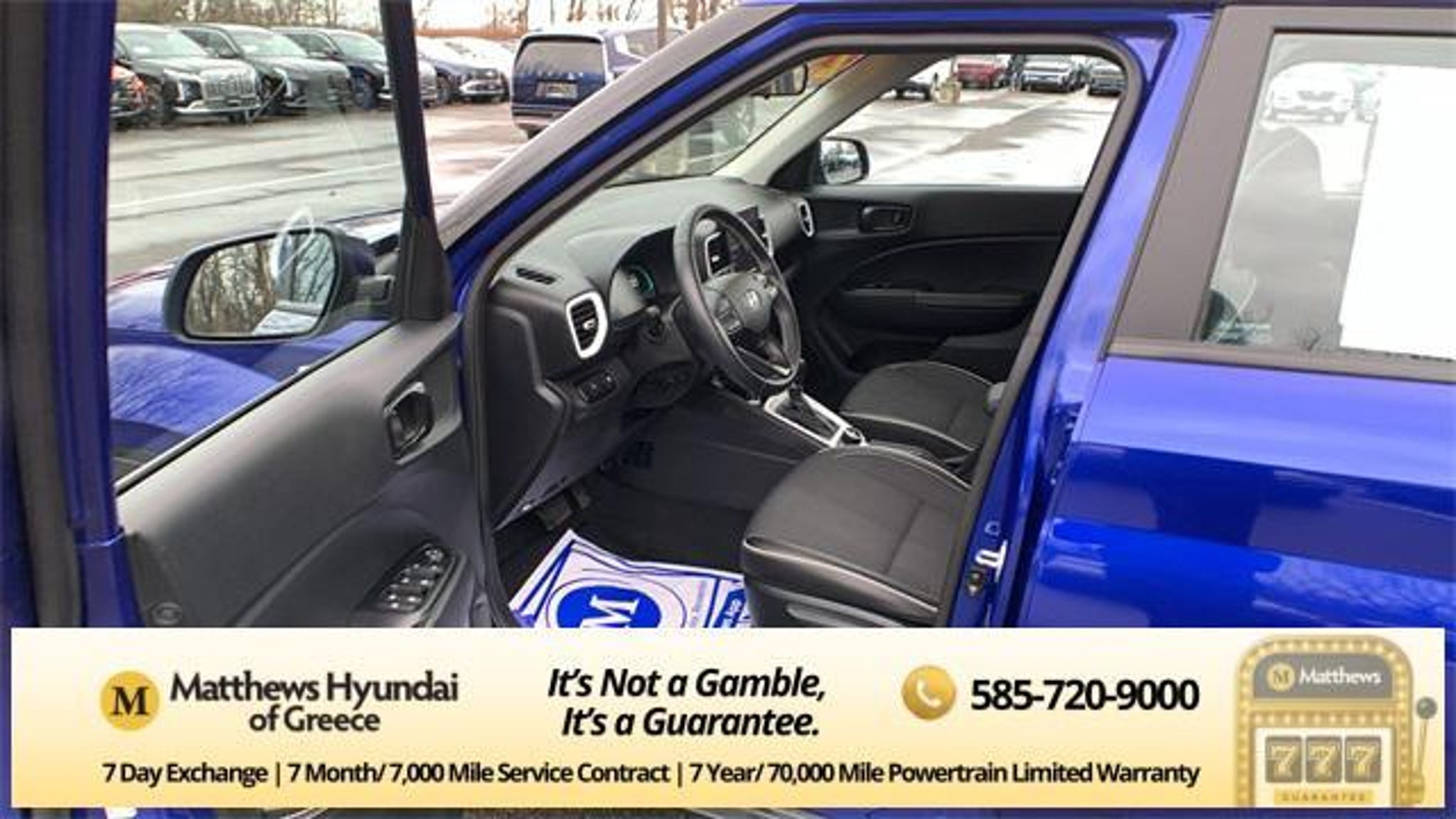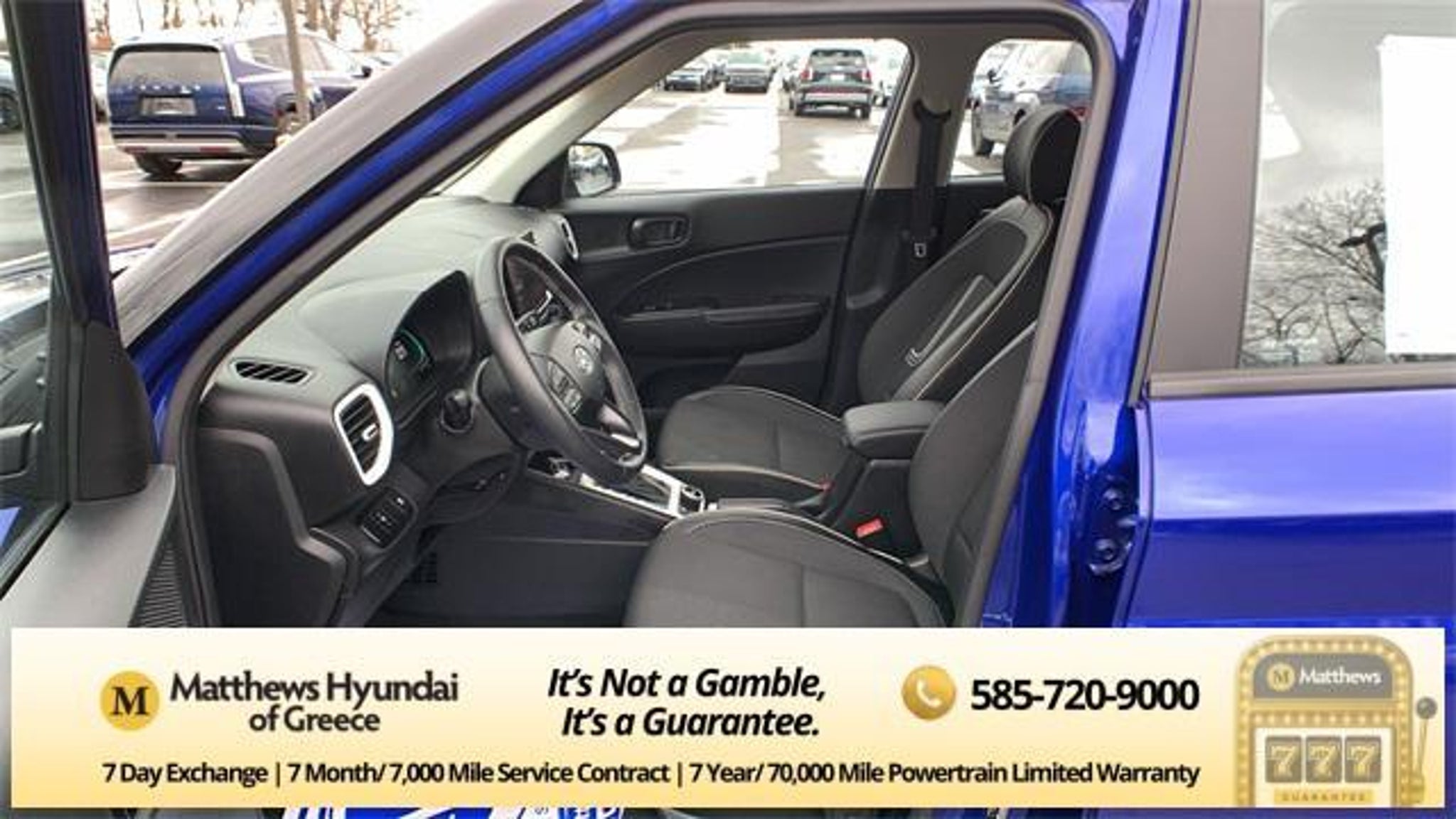 Intense Blue 2023 Hyundai Venue Limited FWD CVT I4 4-Wheel Disc Brakes, 6 Speakers, 6.483 Axle Ratio, 6.5J x 17 Alloy Wheels, ABS brakes, Air Conditioning, Alloy wheels, AM/FM radio: SiriusXM, Apple CarPlay & Android Auto, Auto High-beam Headlights, Automatic temperature control, Brake assist, Bumpers: body-color, Cargo Tray, Carpeted Floor Mats, Cloth & Leatherette Seat Trim, Delay-off headlights, Driver door bin, Driver vanity mirror, Dual front impact airbags, Dual front side impact airbags, Electronic Stability Control, Emergency communication system, Front anti-roll bar, Front Bucket Seats, Front Center Armrest, Front reading lights, Front wheel independent suspension, Fully automatic headlights, Heated door mirrors, Heated Front Bucket Seats, Heated front seats, Illuminated entry, Leather Shift Knob, Leather steering wheel, Low tire pressure warning, Navigation System, Occupant sensing airbag, Option Group 01, Outside temperature display, Overhead airbag, Overhead console, Panic alarm, Passenger door bin, Passenger vanity mirror, Power door mirrors, Power steering, Power windows, Radio: AM/FM/HD/SiriusXM w/Navigation System, Rear Bumper Applique, Rear Seat Cup Holder, Rear window defroster, Rear window wiper, Remote keyless entry, Roof rack: rails only, Security system, Speed control, Speed-sensing steering, Split folding rear seat, Spoiler, Steering wheel mounted audio controls, Tachometer, Telescoping steering wheel, Tilt steering wheel, Traction control, Trip computer, Variably intermittent wipers, Wheel Locks. Odometer is 1271 miles below market average! 29/33 City/Highway MPG