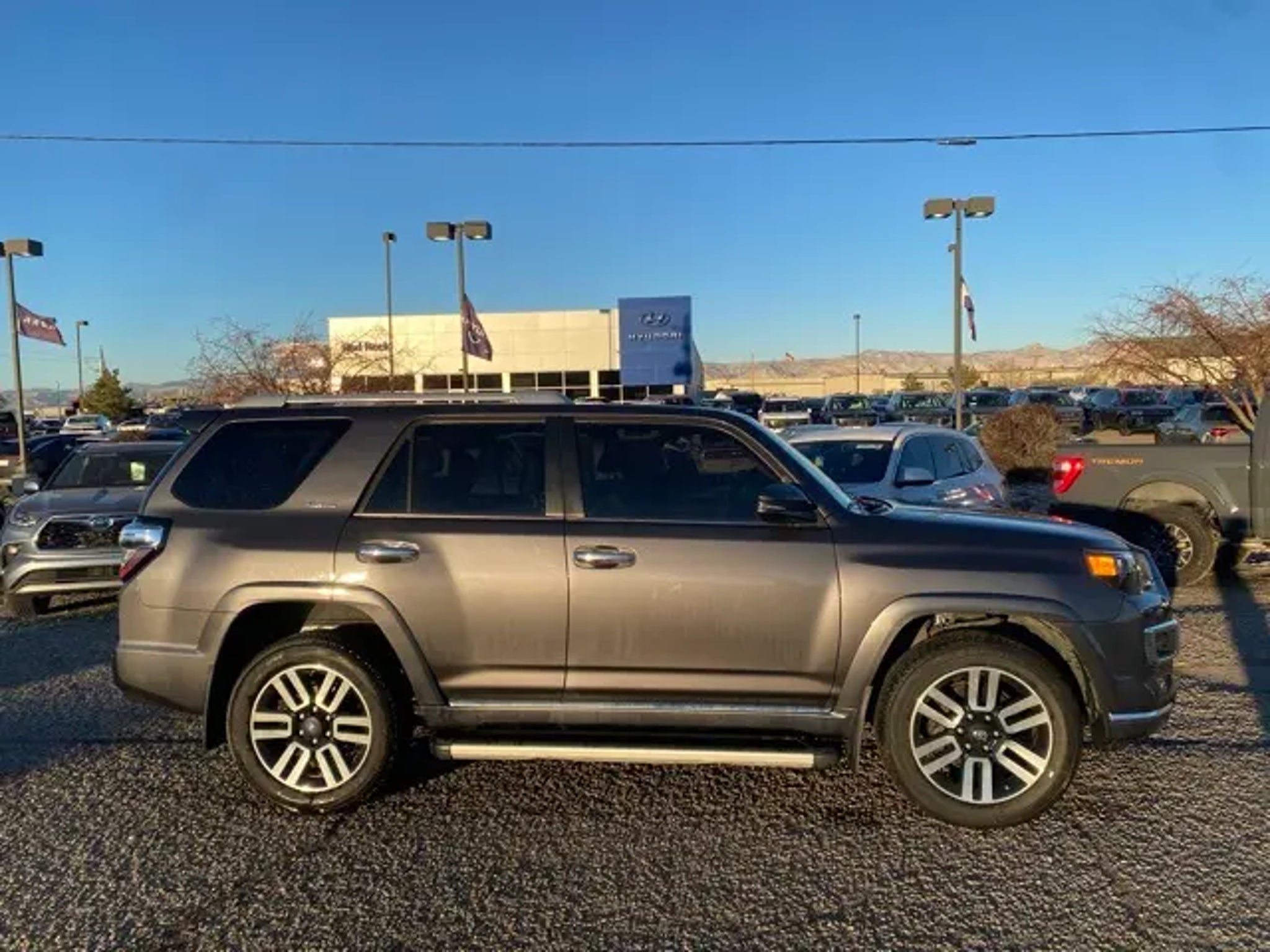 RED ROCK FOREVER WARRANTY. NO CHARGE 100% LIFETIME POWER TRAIN WARRANTY RED ROCK vehicles with less than 60,000 miles, 6 years and newer, non luxury or altered vehicles, come with a Lifetime Power train Warranty. This warranty is valid in all fifty states. ALL At No Charge just for doing business with RED ROCK Auto Group. While we make every effort to ensure the data listed here is correct, there may be instances where some of the options or vehicle features may be listed incorrectly as we get data from multiple data sources. PLEASE MAKE SURE to confirm the details of this vehicle with the dealer to ensure its accuracy. Dealer cannot be held liable for data that is listed incorrectly. See Dealer for details. Odometer is 21797 miles below market average! Red Rock Hyundai proudly offers this 2021 Toyota 4Runner Limited 4WD in Gray it comes well equipped with these standard and optional features, 4WD, Black/Graphite Leather, 15 Speakers, 20 x 7.5 Unique Dual 6-Spoke Alloy Wheels, 3.727 Axle Ratio, 4-Wheel Disc Brakes, ABS brakes, Air Conditioning, Alloy wheels, AM/FM radio: SiriusXM, Anti-whiplash front head restraints, Apple CarPlay/Android Auto, Auto High-beam Headlights, Auto-dimming Rear-View mirror, Automatic temperature control, Body Color Heated Mirrors, Brake assist, Bumpers: body-color, Compass, Delay-off headlights, Driver door bin, Driver vanity mirror, Dual front impact airbags, Dual front side impact airbags, Electronic Stability Control, Emergency communication system: Safety Connect with 1-year trial, Exterior Parking Camera Rear, Front anti-roll bar, Front Bucket Seats, Front Center Armrest, Front dual zone A/C, Front fog lights, Front reading lights, Front wheel independent suspension, Fully automatic headlights, Garage Door Opener, Garage door transmitter: HomeLink, Heated door mirrors, Heated front seats, Heated/Ventilated Front Bucket Seats, Illuminated entry, Knee airbag, Leather Seat Trim, Low tire pressure warning, Memory seat, Moonroof w/Tilt Up & Slide, Navigation System, Occupant sensing airbag, Outside temperature display, Overhead airbag, Overhead console, Panic alarm, Passenger door bin, Passenger vanity mirror, Power door mirrors, Power driver seat, Power moonroof, Power passenger seat, Power steering, Power windows, Radio: Premium JBL Audio, Rear anti-roll bar, Rear seat center armrest, Rear window defroster, Rear window wiper, Remote keyless entry, Right & Left Individual Air Conditioner, Roof rack: rails only, Security system, Speed control, Speed-sensing steering, Split folding rear seat, Spoiler, Steering wheel mounted audio controls, Tachometer, Telescoping steering wheel, Tilt steering wheel, Traction control, Trip computer, Turn signal indicator mirrors, Variably intermittent wipers, and Ventilated front seats. 4WD, Black/Graphite Leather.