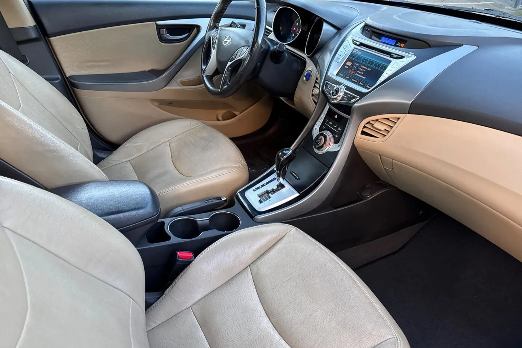 Midnight Black Mica 2012 Hyundai Elantra Limited FWD 6-Speed Automatic with Overdrive 1.8L 4-Cylinder DOHC 16V Dual CVVT 1 OWNER, NAVIGATION PACKAGE, SUPER LOW MILES, LOCAL TRADE IN, SERVICED REGULARLY, CLEAN TITLE (HAS SEVERE ACCIDENT ON FILE), Elantra Limited, 4D Sedan, 1.8L 4-Cylinder DOHC 16V Dual CVVT, 6-Speed Automatic with Overdrive, FWD, Midnight Black Mica, Beige w/Leather Seating Surfaces, 17 x 7.0 J Alloy Wheels, 6 Speakers, 60/40 Split Fold-Down Rear Seatback, ABS w/Electronic Brake Force Distribution (EBD), Adjustable Head Restraints, Advanced Dual Front Airbags, Air Conditioning, Automatic Headlamps, Black Chrome Grille, Bluetooth® Hands-Free Phone System, Bodycolor Door Handles & Mirrors, Brake assist, Bumpers: body-color, Center Console w/Storage Compartment & Armrest, Daytime Running Lights, Delay-off headlights, Dual Heated Power Outside Mirrors, Electronic Stability Control, Front & Rear Door Map Pockets, Front 2-Speed Intermittent Wipers, Front Fog Lights, Heated door mirrors, Heated front seats, Heated rear seats, Illuminated Ignition Key Cylinder Surround, Illuminated Vanity Mirrors w/Extensions, Immobilizer, iPod Cable, Leather Seating Surfaces, Leather Wrapped Steering Wheel & Shift Knob, Leatherette Door Trim Inserts, Limited Badge, Limited Technology Package, Lower Multi-Box w/Cover, Manual Air Conditioning, Map & Cargo Area Lights, Motor Driven Power Steering (MDPS), Navigation System, One Touch Up Drivers Window, Option Group 04, Panic alarm, Power Door Locks, Power Tilt & Slide Sunroof, Power windows, Power Windows w/Driver's Auto-Down, Proximity Key Entry w/Electronic Push Button Start, Radio: AM/FM/XM/CD/MP3, Rear Defroster, Rear window defroster, Rear-View Camera, Remote keyless entry, Remote Keyless Entry System w/Alarm, Security system, Side Repeater Mirrors, Sliding Center Armrest w/PVC Cover, Solar Glass, Speed control, Speed-sensing steering, Steering Wheel Audio Controls, Steering wheel mounted audio controls, Steering Wheel Mounted Cruise Control, Telescopic Steering Wheel, Tilt Steering Wheel, Tinted Glass, Tire Pressure Monitoring System, Traction Control System, Trip Computer, Trunk Lid Inner Cover, Turn signal indicator mirrors, Vehicle Stability Management, Windshield Shade Band.Odometer is 22900 miles below market average! 28/38 City/Highway MPGAwards: * NACTOY 2012 North American Car of the Year * 2012 KBB.com 10 Best Sedans Under $25,000 * 2012 KBB.com 10 Best Green Cars