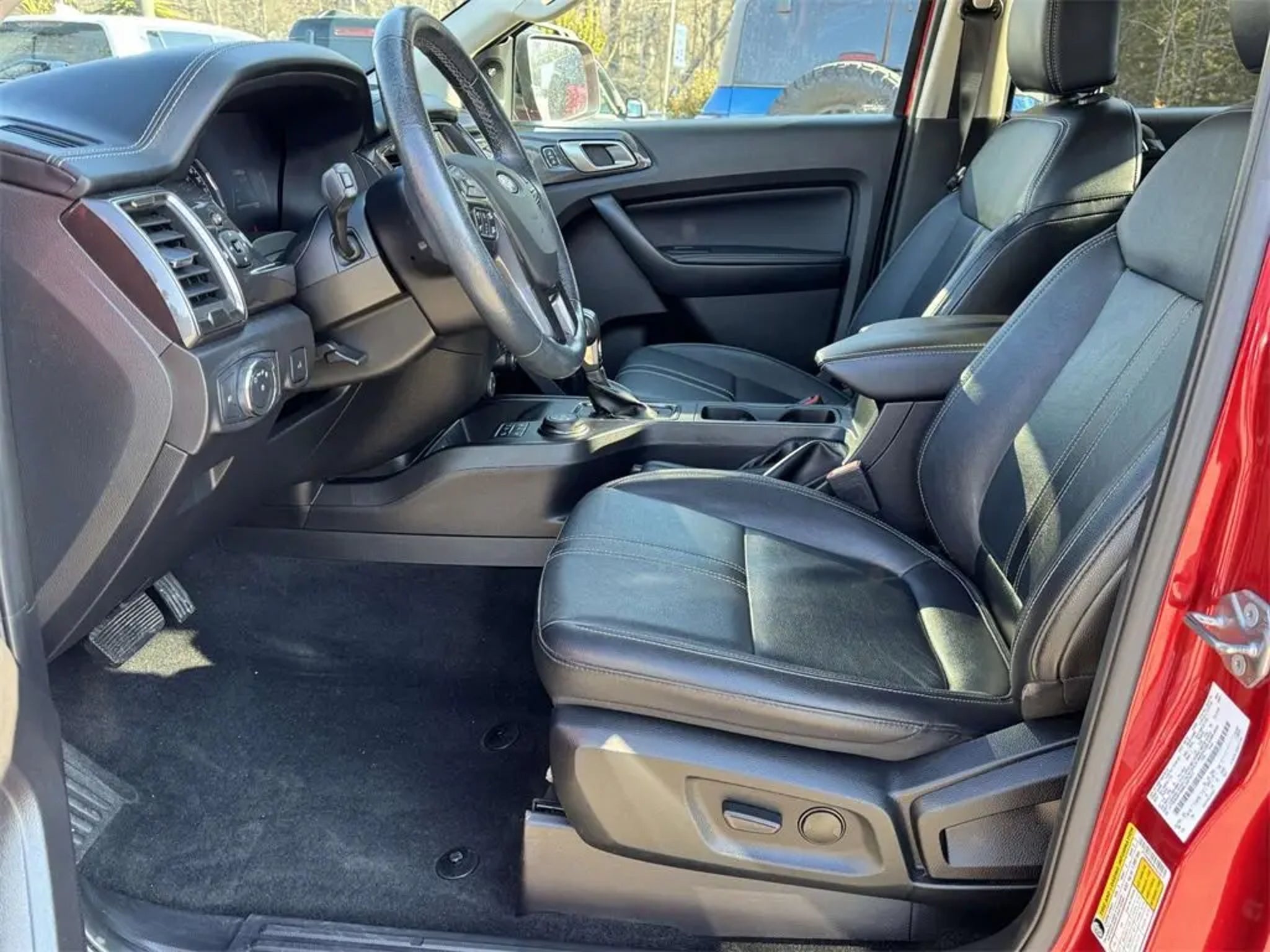 2021 Ford Ranger Lariat Red Metallic 4WD 10-Speed Automatic EcoBoost 2.3L I4 GTDi DOHC Turbocharged VCTMeet the 2021 Ford Ranger Lariat 2.3L EcoBoost, a midsize pickup engineered to deliver full-size capability with modern refinement. Powered by Fords proven 2.3-liter EcoBoost turbocharged engine, this Ranger produces strong horsepower and torque while maintaining impressive fuel efficiency. Paired with a smooth-shifting 10-speed automatic transmission, it offers confident acceleration, responsive towing performance, and everyday drivability. Built on Fords rugged truck DNA, the Ranger is known for its durability, high-strength steel frame, and excellent payload and towing capabilities--making it ideal for work, weekend adventures, or daily commuting.The Lariat trim elevates this Ford Ranger with premium OEM features and upscale comfort. Inside, you'll find leather-trimmed seating, advanced SYNC 3 infotainment with a responsive touchscreen, Apple CarPlay and Android Auto, and intuitive voice-activated controls. The refined cabin blends rugged utility with luxury-focused design, offering smart storage solutions, a leather-wrapped steering wheel, and high-quality materials throughout. Available Ford Co-Pilot360 driver-assist technologies enhance confidence behind the wheel with features designed to support safety and awareness on the road.On the outside, the 2021 Ranger Lariat stands out with bold styling, signature Ford truck design cues, alloy wheels, and a commanding stance. Whether you're searching for a used Ford Ranger Lariat, a turbocharged midsize pickup, or a reliable EcoBoost truck with premium features, this Ranger checks all the right boxes. With its balance of power, technology, and comfort, the 2021 Ford Ranger Lariat remains one of the most versatile and sought-after trucks in its class.All prices exclude taxes, title, $799 dealer processing fee and $319 theft protection etch. Prices are subject to change without notice. The dealer reserves the right to correct any errors or omissions. Offers, specials and discounts are vin specific. Although every reasonable effort has been made to ensure the accuracy of the information contained on this site, absolute accuracy cannot be guaranteed.