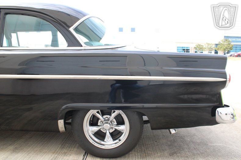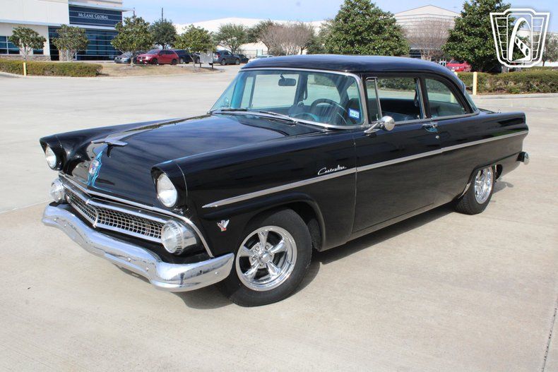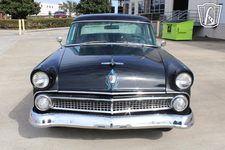 Finished in a sleek black exterior, this Customline carries a timeless and dignified presence that highlights the clean lines and chrome accents characteristic of mid-1950s Ford styling. The car is also equipped with power steering for added comfort and ease of handling, along with an AM/FM radio that enhances the classic cruising experience.