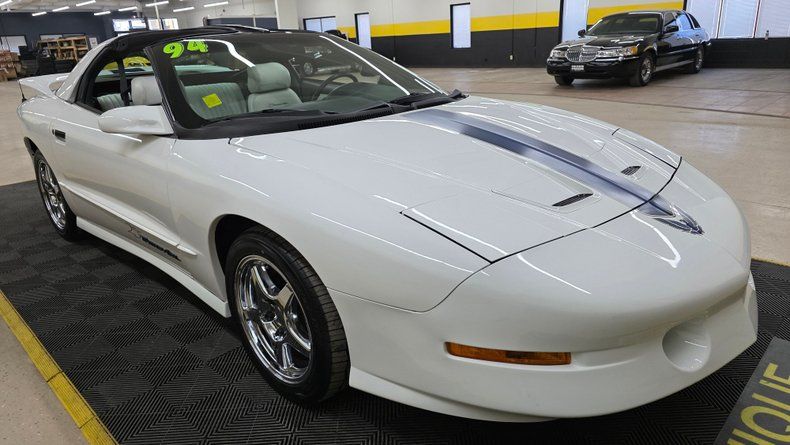 1994 Pontiac 25th Anniversary Trans Am T-Top Coupe, only 2,000 units produced-specifically 1,750 coupes and about 250 convertibles. This particular vehicle is a two-owner car, with a clean Carfax report, no accidents, and exceptionally LOW MILEAGE of 17,604 MILES. It features a Vortech V1 SUPERCHARGED 5.7-liter with a engine delivering around 450 horsepower, paired with a smooth-shifting 4L60E automatic transmission with overdrive. Equipped with power steering, power brakes, COLD air conditioning, and a host of factory and aftermarket upgrades, including Crane Cams Fireball H6 electronic ignition and additional A-pillar gauges. The exterior paint and chrome five-spoke wheels are in excellent condition, complemented by radial tires that are relatively new and equipped with subframe connectors for enhanced chassis rigidity. The white leather interior is equally impressive, featuring embroidered 25th Anniversary logos on the bucket seats, power windows, locks, mirrors, tilt column, cruise control, and a well-maintained dash with no stress cracks-a common issue in these models. The stereo system includes an AM-FM CD player with a built-in equalizer. The car is presented with its complete owner's manual package. On the road the car's SUPERCHARGED upgraded power, smooth handling, and the comfort expected makes it very fun to drive.