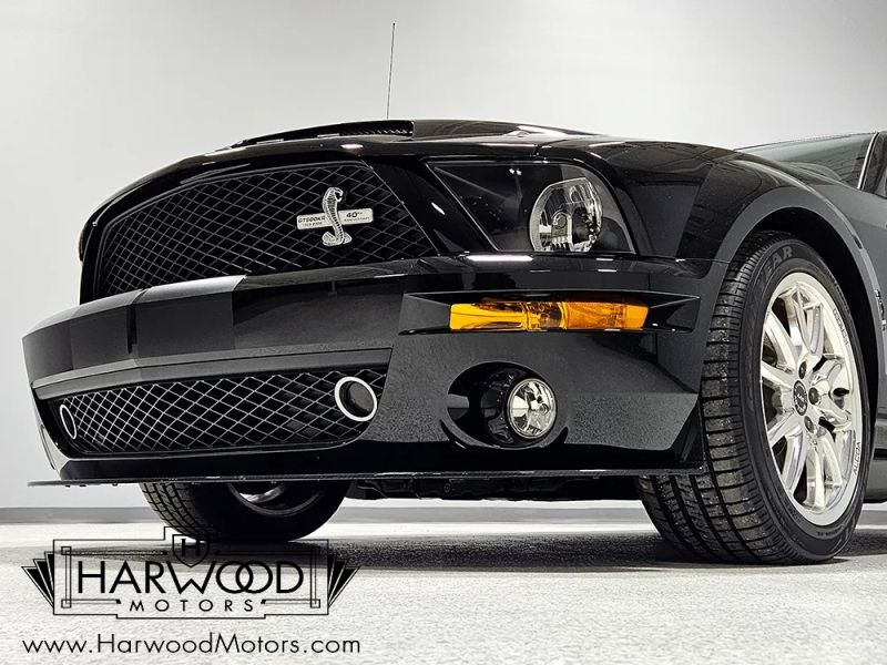 The GT500KR is easy to spot, thanks to an all-new carbon fiber hood with twin snorkels that emulate the look of the original GT500KR and shaves about 15 pounds off the nose, too. Only 328 KRs were painted Black with Satin Black stripes, and its a sinister change from the usual red, white, and blue Shelbys you see at shows. With only 3617 original miles, this one remains virtually as new and looks spectacular in person. The revised ride height makes the KR look less blocky than the regular GT500, aided by a deeper front air dam with splitter and a subtle tail spoiler. It sits right, looking nasty just sitting still, and I dont think anyone at Ford was interested in making the KR subtle. This car has never been used as a daily driver and was always a fair-weather toy, and if its been wet more than a handful of times, Id be surprised. Build quality is excellent, with doors that close with a solid THUNK and even the carbon fiber components fit beautifully, something that Ol Shel could only dream of in 1968. And in case you didnt notice, 2008 was the 40<sup>th</sup> anniversary of the GT500KR so its festooned with a bunch of Cobra badges advertising that special celebration. They did an awesome job of making this a special Mustang.