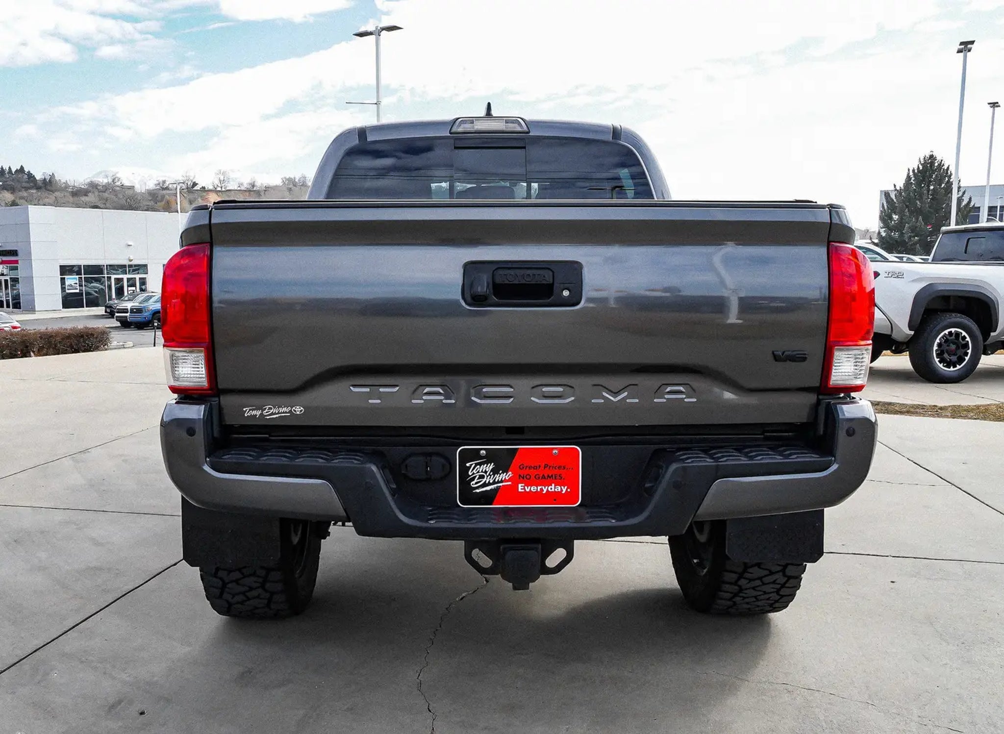 KBB.com Best Resale Value Awards. This Toyota Tacoma boasts a Regular Unleaded V-6 3.5 L/211 engine powering it's polished transmission. Wireless Phone Connectivity, Tailgate Rear Cargo Access, Steel Spare Wheel. This Toyota Tacoma Comes Equipped with These Options Solid Axle Rear Suspension w/Leaf Springs, Single Stainless Steel Exhaust, Side Impact Beams, Regular Composite Box Style, Rear Cupholder, Rear Child Safety Locks, Power Rear Windows, Power 1st Row Windows w/Driver 1-Touch Down, Passenger Seat, Part-Time Four-Wheel Drive. The Votes are Counted KBB.com Best Resale Value Awards, KBB.com 10 Most Awarded Brands. Stop By Today Stop by Tony Divino Toyota located at 777 West Riverdale Rd, Riverdale, UT 84405 for a quick visit and a great vehicle! * Estimated Monthly Payment will depend on vehicle make and model and will be determined upon actual vehicle inspection. All payments are estimates. Tax, title, registration and documentation fee ($349) are extra.* While every reasonable effort is made to ensure the accuracy of this information, we are not responsible for any errors or omissions contained on these pages. Please verify any information in question with Tony Divino Toyota.