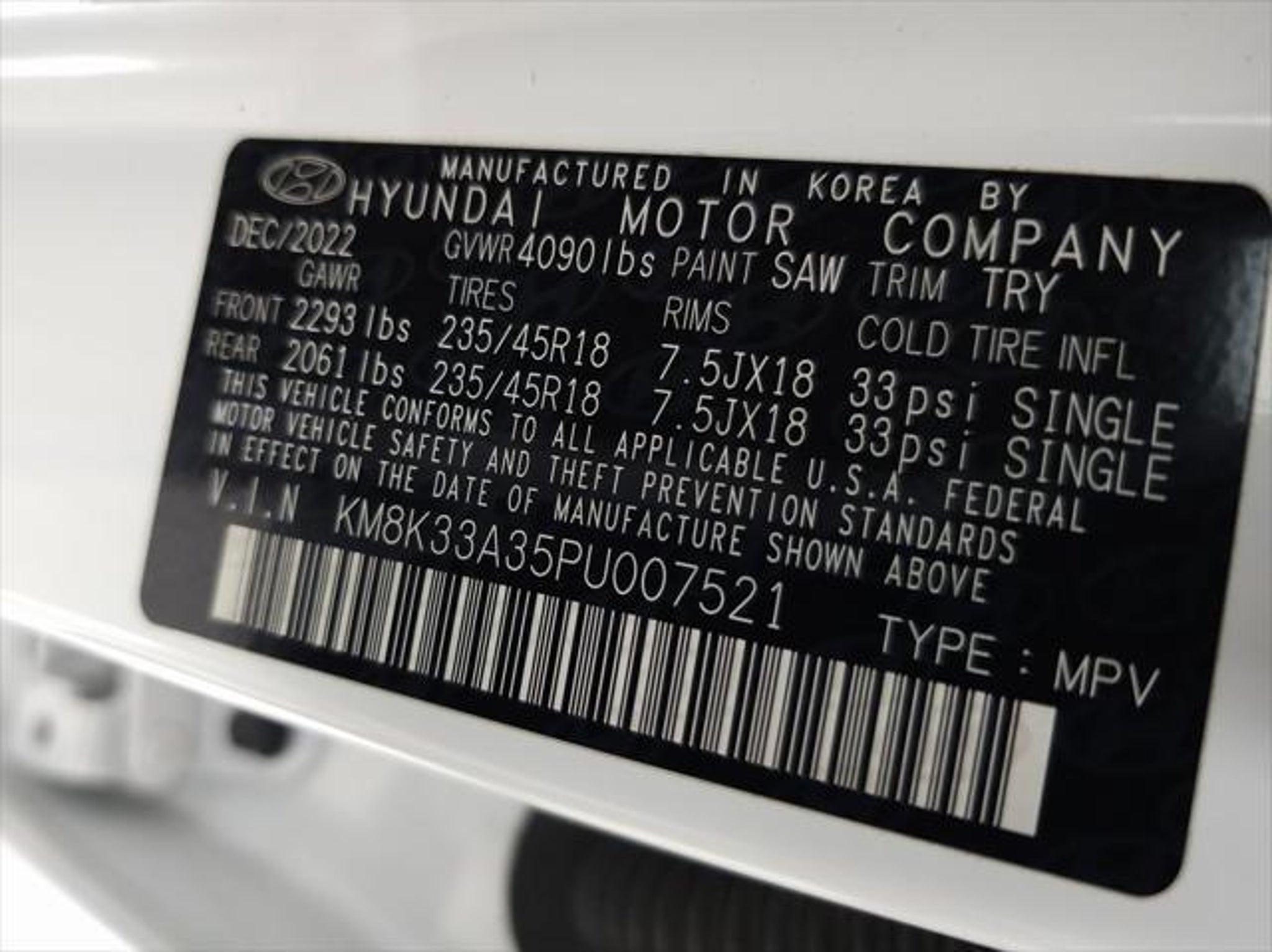 VIN KM8K33A35PU007521
