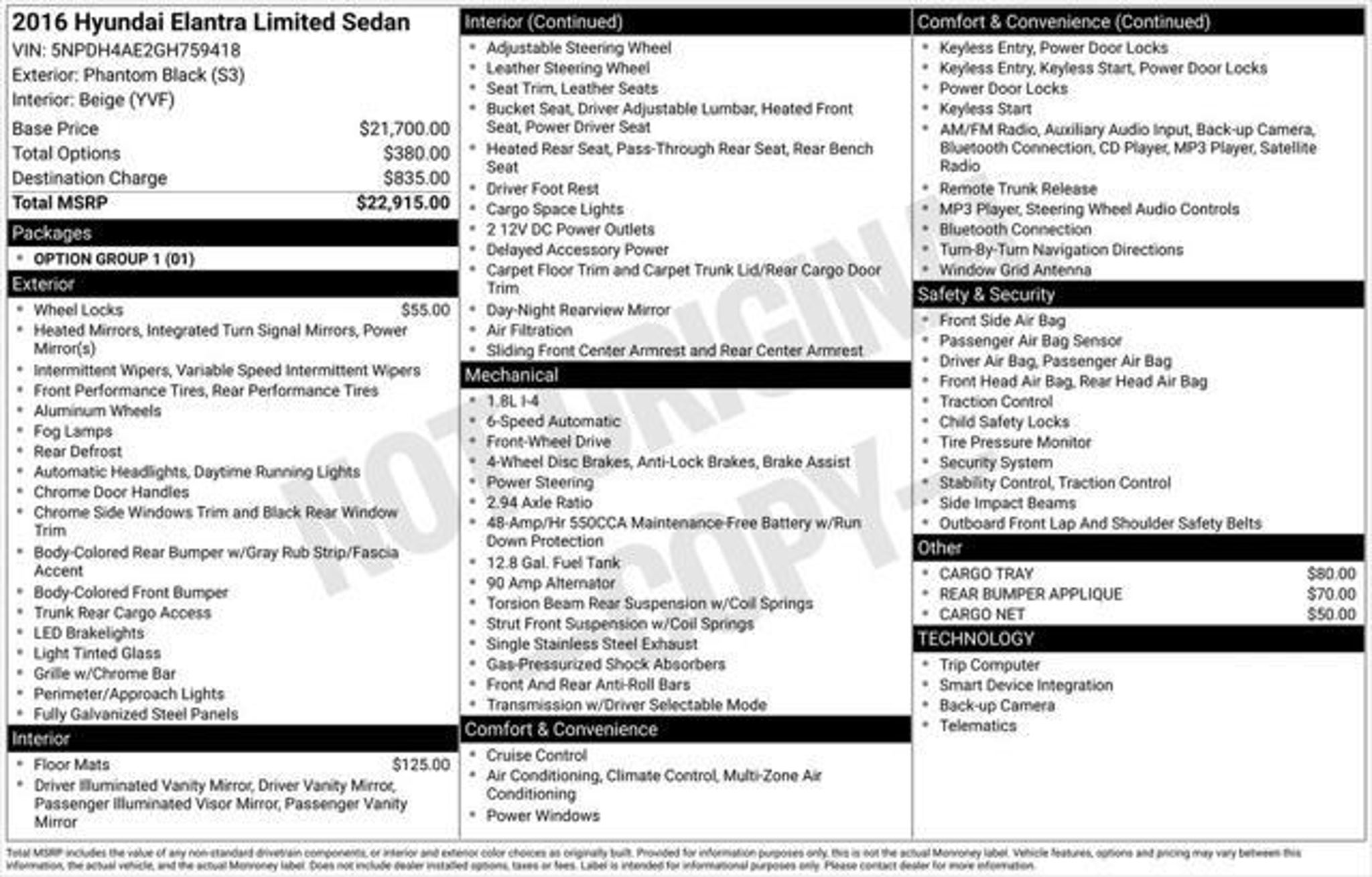 **PRICE INCLUDES RECONDITIONING**, **BLUETOOTH HANDS FREE PHONE SYSTEM**, **BACK UP CAMERA**, **LEATHER SEATING**, **NO DEALER FEES!!**, **4.8 STARS GOOGLE BUSINESS REVIEW**, **CLEARANCE PRICED**, Alloy wheels, Automatic temperature control, Delay-off headlights, Exterior Parking Camera Rear, Front dual zone A/C, Front fog lights, Fully automatic headlights, Heated front seats, Heated rear seats, Leather Seating Surfaces, Power driver seat, Remote keyless entry, Turn signal indicator mirrors, Variably intermittent wipers, 17 Alloy Wheels, 4-Wheel Disc Brakes, 6 Speakers, ABS brakes, Air Conditioning, AM/FM radio: SiriusXM, Brake assist, Bumpers: body-color, Cargo Net, Cargo Tray, Carpeted Floor Mats, CD player, Driver door bin, Driver vanity mirror, Dual front impact airbags, Dual front side impact airbags, Electronic Stability Control, Emergency communication system: Blue Link, Front anti-roll bar, Front Bucket Seats, Front Center Armrest, Front reading lights, Front wheel independent suspension, Heated door mirrors, Heated Front Bucket Seats w/Lumbar Support, Illuminated entry, Low tire pressure warning, Occupant sensing airbag, Outside temperature display, Overhead airbag, Overhead console, Panic alarm, Passenger door bin, Passenger vanity mirror, Power door mirrors, Power steering, Power windows, Radio: AM/FM/SiriusXM/CD/MP3 Audio System, Rear anti-roll bar, Rear Bumper Applique, Rear seat center armrest, Rear window defroster, Security system, Speed control, Speed-sensing steering, Split folding rear seat, Steering wheel mounted audio controls, Tachometer, Telescoping steering wheel, Tilt steering wheel, Traction control, Trip computer, Wheel Locks, Alloy wheels, Automatic temperature control, Delay-off headlights, Exterior Parking Camera Rear, Front dual zone A/C, Front fog lights, Fully automatic headlights, Heated front seats, Heated rear seats, Leather Seating Surfaces, Power driver seat, Remote keyless entry, Turn signal indicator mirrors, Variably intermittent wipers. 1.8L 4-Cylinder DOHC 16V Dual CVVT Our BRONZE Tag vehicles give you the assurance of a 5 Day/300 Mile exchange/return policy, if you don't like it, BRING IT BACK! JUST ADD TAX, there are no dealer fees! Join the Movement to a Better Way to Buy a Car! Located conveniently just West of Orlando at 4500 Collina Ter Clermont, FL 34711. Awards: * 2016 KBB.com 10 Best Used Compact Cars Under $15,000 * 2016 KBB.com Best Buy Awards Finalist * 2016 KBB.com 5-Year Cost to Own Awards