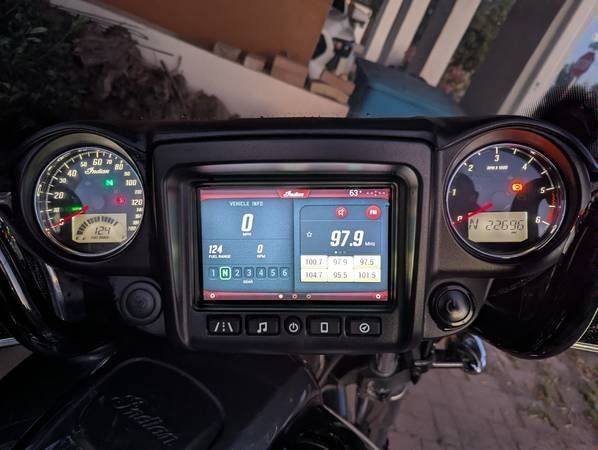 This 2019 Indian Chieftain is a well maintained cruiser that's in excellent condition and ready to ride. The odometer shows 22,696 miles. It is powered by the 111 cu in Thunder Stroke V-twin (1800cc) paired with a 6-speed manual transmission. This bike is street legal and starts easily with push button start and a wireless key fob. It also comes with a driver backrest and cupholder, and it's been kept in great working condition.
