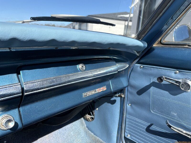 HIGHLIGHTS: Factory Super Sport car Blue exterior with white convertible top Blue vinyl bucket seat interior 194ci inline six cylinder engine Converted to 3-speed manual transmission Automatic transmission included True driver-project BODY OVERVIEW: This Nova SS convertible retains its classic early-60s charm and unmistakable Super Sport identity. As a factory SS car, it has added desirability, even in its current driver condition. The body shows age and prior repairs, including visible rust areas and previously patched sections that will require attention (depending what youre going for!). This is not a restored example"it is an honest, time-worn classic that invites improvement for the individual in the right mindset. As shown in the photos, areas of concern include quarter panels, wheel arches, and floor pans. PAINT CONDITION OVERVIEW: The blue paint is an older repaint and is showing its age. There are cosmetic imperfections consistent with a car that has been enjoyed and not recently refinished. It presents well enough for casual cruising but does not attempt to hide its driver-grade status. While some may prefer to repaint after doing any necessary body repairs, others may enjoy its time-sweetened appearance as a piece of living history. INTERIOR CONDITION OVERVIEW: The blue vinyl bucket seat interior matches the exterior nicely and maintains the sporty SS feel. The seats appear to have been recovered at some point and present respectably for a driver-quality vehicle. Overall, the interior shows typical wear and age. Buyers should note that the horn, radio, speedometer, and heater are currently not functioning, but the door panels, dash, seats, and carpet are all present and intact. While there are some small repairs to be made, this interior makes it easy to focus on the major improvements first! MECHANICAL OVERVIEW: Power comes from a 194ci inline six cylinder engine, which for 1963 was the only engine option in a Nova. The car has been converted from an automatic to a 3-speed manual transmission for a more engaging driving experience, but an automatic transmission is included with the sale for anyone that wishes to swap it back. It runs and drives, making it a solid starting point for continued improvement or restoration while enjoying the car in between repairs. WHAT YOULL LOVE ABOUT THIS CAR: Genuine factory Super Sport convertible Desirable color combination with classic top-down appeal Manual transmission Drivable project you can enjoy while improving! WHAT YOU MIGHT HATE ABOUT THIS CAR: Rust and prior rust repairs will require attention Older paint shows age and imperfections Not a turn-key show car DOES IT NEED ANYTHING?: Yes. This Nova should be viewed as a rolling restoration or drivable project. Rust repair, cosmetic refinishing, and attention to non-working accessories will be needed to bring it to the next level. WHAT BUYER IS LOOKING FOR THIS CAR?: This car is ideal for the enthusiast seeking an authentic factory SS convertible at an approachable price point. Perfect for someone who enjoys hands-on ownership and wants a classic they can drive now while restoring over time, rather than paying a premium for a completed car (and without being able to brag about doing it themselves!) Contact Rare Rides Company at 980-306-8100 or info@rarerides.com for more information The advertised price for this vehicle includes the $250 document fee added by Rare Rides Company. Rare Rides Company does not collect tax, tag or title fees. Title Status: CLEAN DOES IT WORK? Air Conditioning N/A Heater NO Speedometer NO Odometer NO Oil PSI Gauge YES Temperature Gauge NO Fuel Gauge YES Tachometer N/A Wipers YES Windows YES Horn NO Radio NO Headlights NO Tail Lights NO Brake Lights NO Reverse Lights NO Turn Signals NO Emergency Brake NO 4x4/AWD N/A Tire Condition: Good tread, 2013 date Keys " Ignition YES, Door YES - pass lock cyl missing, Trunk YES Seatbelts Front: N/A Rear: N/A Runs & Drives YES