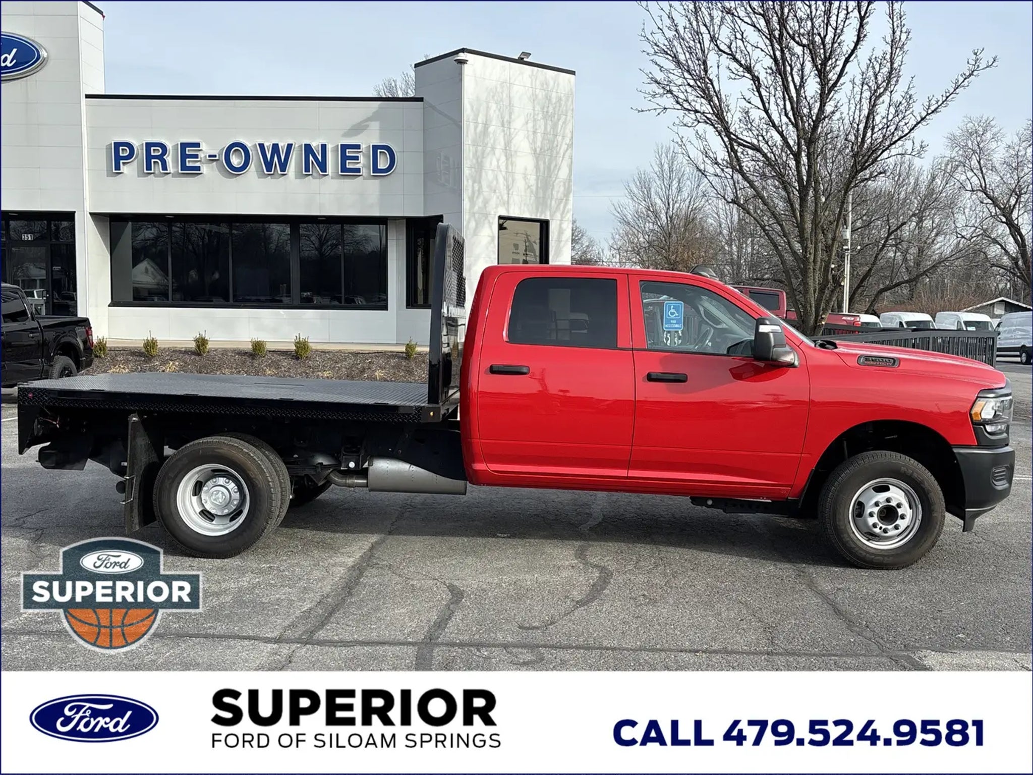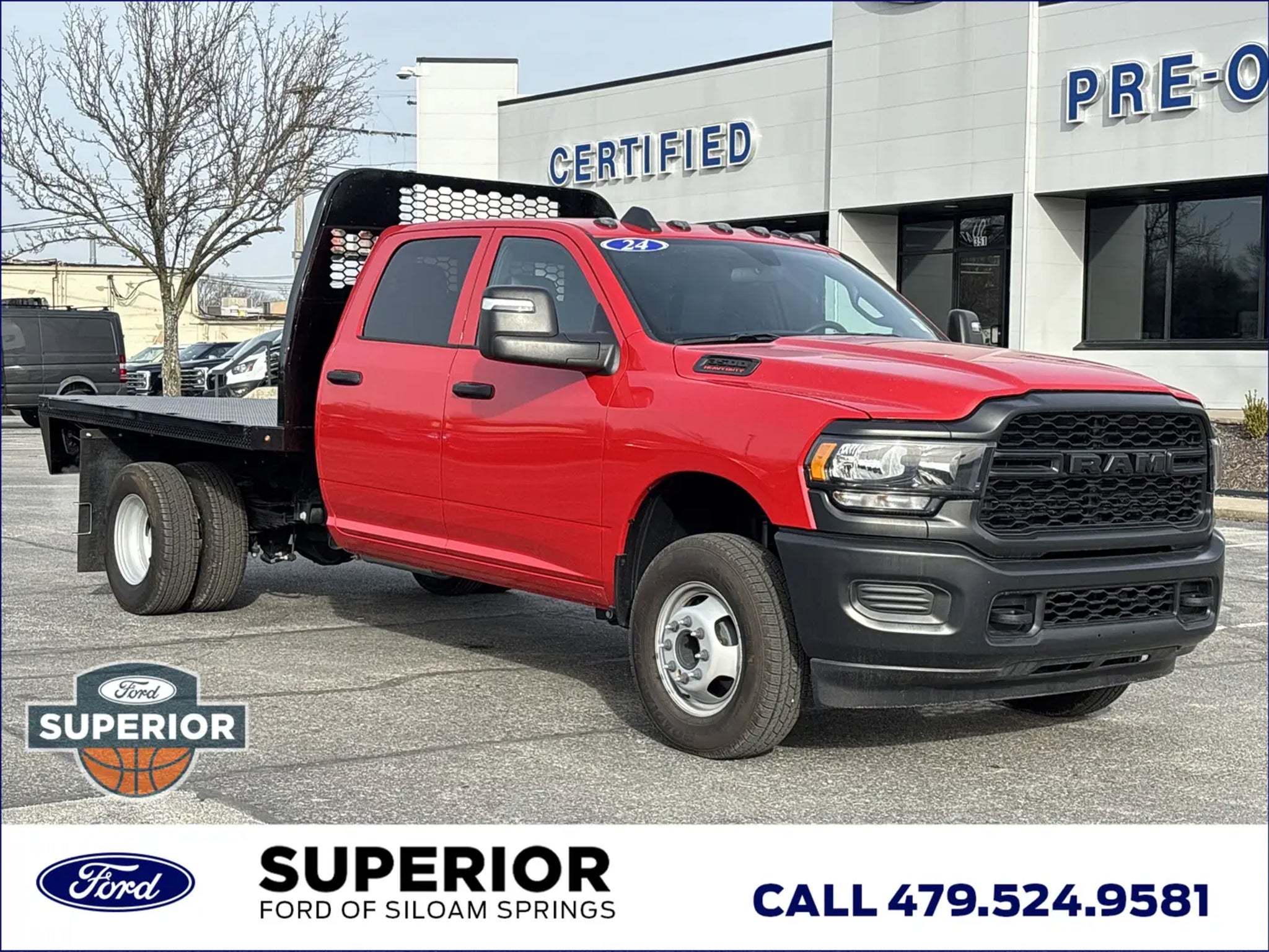 When the job demands serious muscle, this 2024 Ram 3500 Tradesman in striking Flame Red Clearcoat is ready to answer the call. Built as a heavy-duty Crew Cab with a 4WD drivetrain and Dual Rear Wheels, this truck is engineered for maximum stability and towing power. Driven by the proven 6.4L V8 engine, it provides the raw strength needed to haul heavy equipment while maintaining a professional look with its bold matte black grille and black exterior badging.The Tradesman trim is all about getting the job done efficiently. This model features the 6000# Front Axle with Hub Extensions and a heavy-duty rear axle, ensuring it can handle significant payloads without breaking a sweat. It also comes equipped with tow hooks and heated power mirrors with integrated turn signals, giving you the tools and visibility required for a safe, productive workday in any environment.Inside, you'll find a cabin that balances durability with modern convenience. The Uconnect 3 system features a 5-inch display with Integrated Voice Command and Bluetooth, allowing you to stay connected to your team while keeping your hands on the wheel. Plus, with the Remote Keyless Entry and power windows, getting in and out of the job site is faster and easier than ever.Safety and awareness are key when operating a truck of this size. This Ram includes the ParkView Rear Back-Up Camera, which provides a clear view of whats behind you, making it much simpler to line up a trailer or navigate tight spaces. With Electronic Stability Control and a comprehensive airbag system, you can focus on the task at hand knowing you and your passengers are well-protected.At the Superior Pre-Owned Superstore of Bentonville, we know that a truck is more than just a vehicle it's an investment in your business. This Clean CARFAX Ram 3500 has been professionally cleaned and serviced to ensure it's ready to work the moment you drive it off the lot. Let us show you what your trade is worth and provide the straightforward, respectful service you deserve. Visit us at http://www.bentonvillepreowned.com or call today!Faster. Simpler. More Transparent. Superior Automotive Group has helped thousands of customers find the right car by leveraging one of Arkansas' largest selections of new and pre-owned vehicles at unparalleled prices. Yet, it's our extra-mile customer service and uncommonly candid and respectful staff that have won the trust and loyalty of Arkansas drivers for 30 years. Come visit one of our Superior dealerships today and let us exceed your expectations.