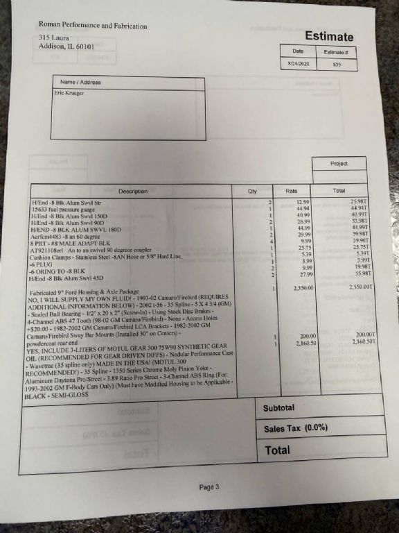 2002 Chevrolet Camaro 427 427cid custom built (see photos) 6 speed T-56 manual transmission Ford 9 with Posi unit Odometer shows 48,141 original miles Clean carfax report Only 4 previous owners Lots of paperwork on build Over $58,000 spent on BUILD!!