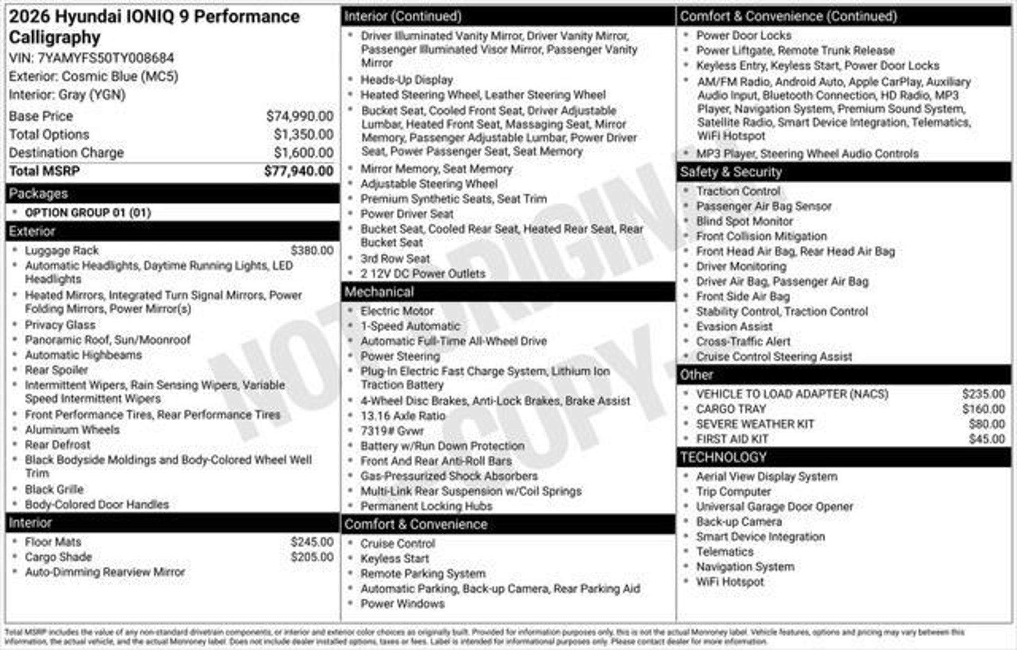 CARFAX One-Owner. 2026 Hyundai IONIQ 9 Performance Calligraphy Please Call For More Details And Availability. Discover The One & Only Way To Buy Your Next Vehicle! Welcome To Gregory Hyundai, Where Convenience Meets Transparency. Skip The Traditional Dealership Hassel With The Time It Takes To Buy A Car And The Annoying Back & Fourth Negotiations! Our Innovative Process, One & Only, Revolutionizes Car Buying For Both First Time And Expert Car Buyers. Embrace Our Online Platform If You Prefer To Shop At Home; With Express Service at express.gregoryhyundai.com, Buy Your Dream Vehicle From The Comfort Of Home. With Express, You're In Charge. Select Your Terms, Apply for Financing, Get a Trade-In Value, Customize Your Ownership Options Or Simply Figure Out The Costs Involved With Your Purchase. Transparency Is Our Goal And We Prioritize Integrity, We Want To Be Your Guide Through This Process And We Promise To Act With Honesty And Professionalism. We Invite You To Experience The Difference At Our State-Of-The-Art Dealership In Highland Park, Illinois. 490 Skokie Valley Road Highland Park, IL 60035. We're Committed To Serving Our Community And Building Lasting Relationships With Our Customers All Over The Country. We're Here For You With Flexible Hours From 9 AM To 8 PM (Mon-Fri) And 9 AM To 6 PM (Sat). Don't Miss Out On the Future Of Car Buying. Visit GregoryHyundai.com Or Call Us Today . Gregory Hyundai/Genesis of Highland Park"“ Where Convenience, Transparency, and Exceptional Service Meet. We Look Forward To Serving You SooN.