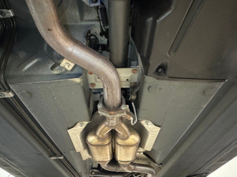 Super clean and dry underneath where the single exhaust flows through its original muffler which emits a pair of short tail pipes shrouded in a single chrome tip. Power disc brakes are at all four wheels and suspension is composed of Macpherson struts up front and coil springs in back, and both ends are independent.