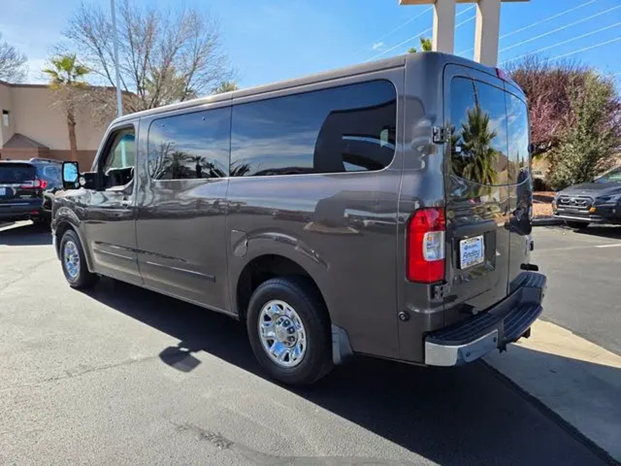 Welcome to Findlay Subaru in St George on the Savings Side of the Freeway. Please contact us at the phone number listed above for any questions that you might have and to check the availability of this vehicle. This Nissan NV Passenger is equipped with the following options:3.54 Axle Ratio, 3rd row seats: split-bench, 4-Wheel Disc Brakes, 4th-Row Bench Seat, 6 Speakers, 7.5J x 17 Chrome-Clad Steel Wheels, ABS brakes, Air Conditioning, AM/FM radio, AM/FM/CD/MP3 Audio System, Auto-dimming Rear-View mirror, Automatic temperature control, Brake assist, Bumpers: chrome, CD player, Compass, Driver door bin, Dual front impact airbags, Dual front side impact airbags, Electronic Stability Control, Front anti-roll bar, Front Bucket Seats, Front Center Armrest w/Storage, Front dual zone A/C, Front fog lights, Front reading lights, Front wheel independent suspension, Heated Front Bucket Seats, Heated front seats, Illuminated entry, Leather steering wheel, Leather-Appointed Seat Trim, Low tire pressure warning, Outside temperature display, Overhead airbag, Overhead console, Panic alarm, Passenger door bin, Power door mirrors, Power driver seat, Power steering, Power windows, Radio data system, Rear air conditioning, Rear anti-roll bar, Rear reading lights, Rear window defroster, Remote keyless entry, Security system, Speed control, Speed-sensing steering, Speed-Sensitive Wipers, Steering wheel mounted audio controls, Tachometer, Tilt steering wheel, Traction control, Trip computer, Variably intermittent wipers, and Voltmeter. Clean CARFAX. RWD 5-Speed Automatic with Tow Mode 5.6L V8 DOHC Reviews: * Simple model and option structure; multiple seating arrangements; easy-to-use cabin controls. Source: Edmunds