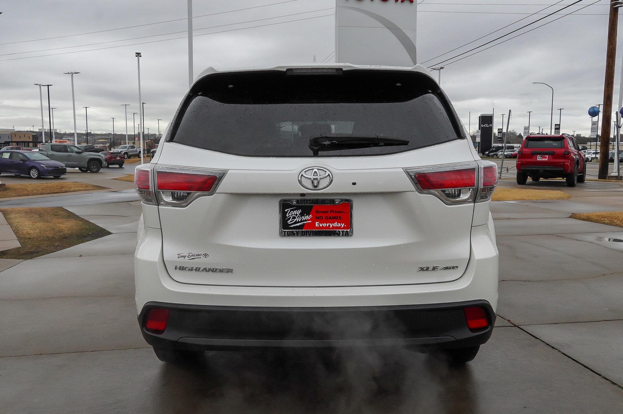 ALG Residual Value Awards, Residual Value Awards. Scores 24 Highway MPG and 18 City MPG! This Toyota Highlander delivers a Regular Unleaded V-6 3.5 L/211 engine powering this Automatic transmission. Wireless Phone Connectivity, Window Grid Diversity Antenna, Wheels: 18 Split 5-Spoke Machined-Face Alloy. This Toyota Highlander Comes Equipped with These Options Wheels w/Machined Accents, Variable Intermittent Wipers w/Heated Wiper Park, Valet Function, Trunk/Hatch Auto-Latch, Trip Computer, Transmission: Electronic 6-Speed Automatic w/OD -inc: ECT-i, sequential shift mode and snow mode, Transmission w/Driver Selectable Mode and Oil Cooler, Trailer Wiring Harness, Tires: P245/60R18 105S AS, Tailgate/Rear Door Lock Included w/Power Door Locks. The Votes are Counted ALG Residual Value Awards, Residual Value Awards, IIHS Top Safety Pick, KBB.com Best Buy Awards, KBB.com 15 Best Family Cars, KBB.com 10 Best Certified Pre-Owned 3-Row SUVs Under $30,000. Expert Reviews! As reported by KBB.com: The 2015 Toyota Highlander is a safe choice, for all the right reasons. Comfortable, accommodating and feature-packed, with a variety of models for all budgets, the Highlander???s a tough act to follow. Stop By Today Treat yourself- stop by Tony Divino Toyota located at 777 West Riverdale Rd, Riverdale, UT 84405 to make this car yours today! * Estimated Monthly Payment will depend on vehicle make and model and will be determined upon actual vehicle inspection. All payments are estimates. Tax, title, registration and documentation fee ($349) are extra.* While every reasonable effort is made to ensure the accuracy of this information, we are not responsible for any errors or omissions contained on these pages. Please verify any information in question with Tony Divino Toyota.