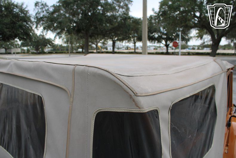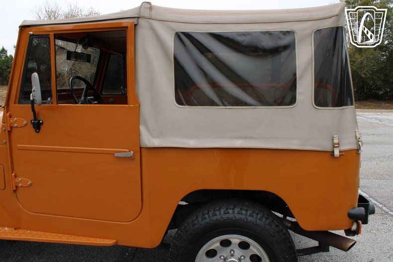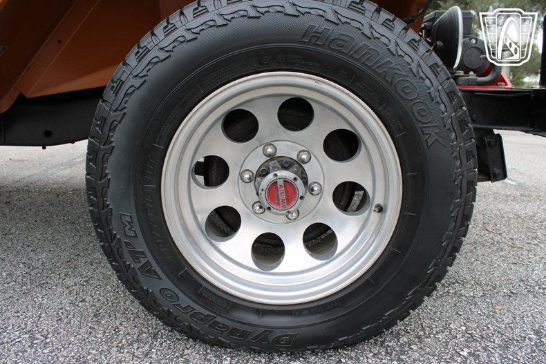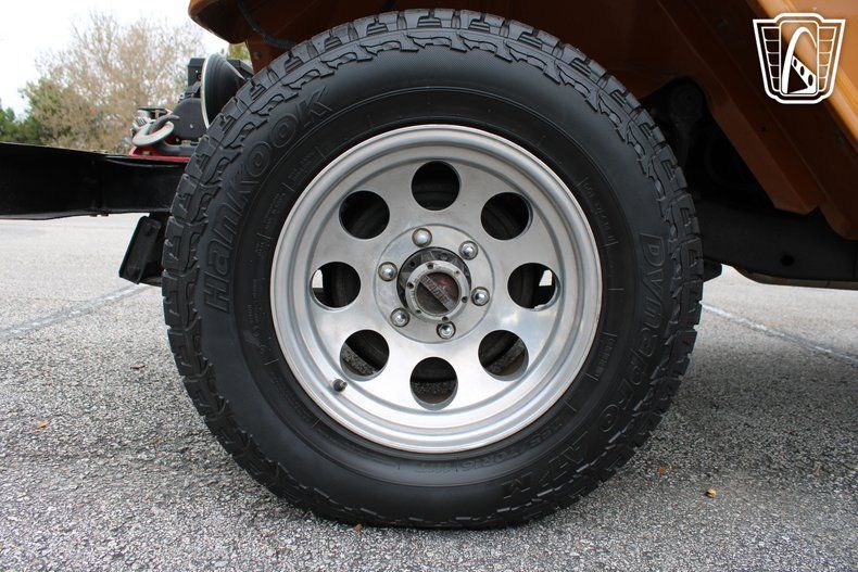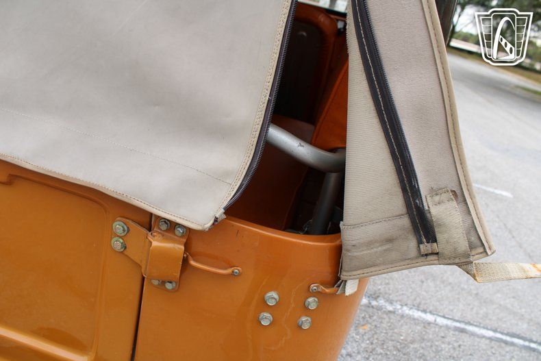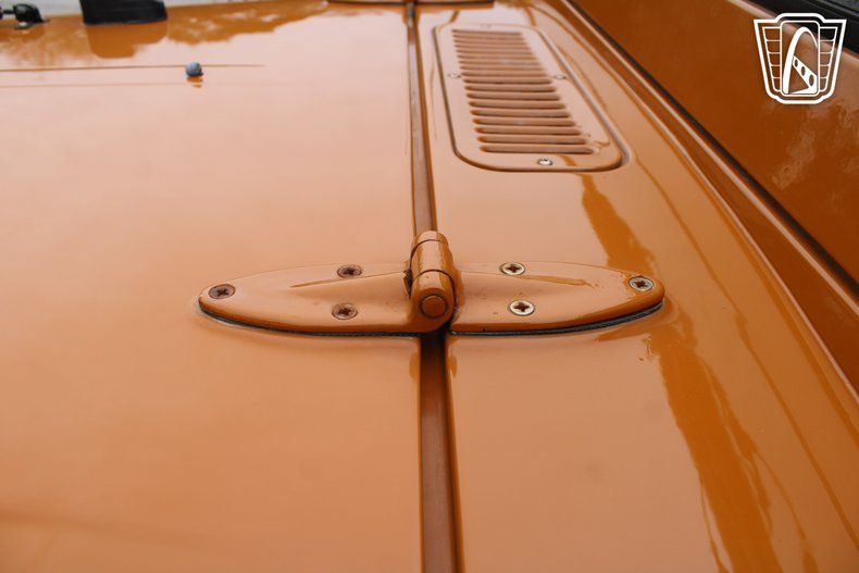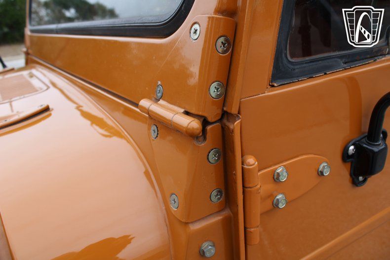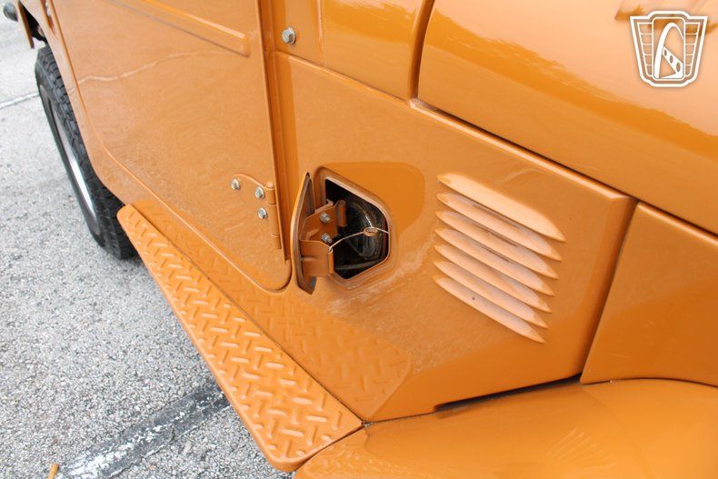 The AM/FM radio and CD player provide the soundtrack to your journey, filling the cabin with your favorite tunes as the miles roll by. The orange vinyl interior adds a touch of warmth and character, creating an inviting space that feels as adventurous as the vehicle itself. With every glance at the dashboard and every shift of the gears, you're reminded of the craftsmanship and heritage that make the FJ-40 a true classic.