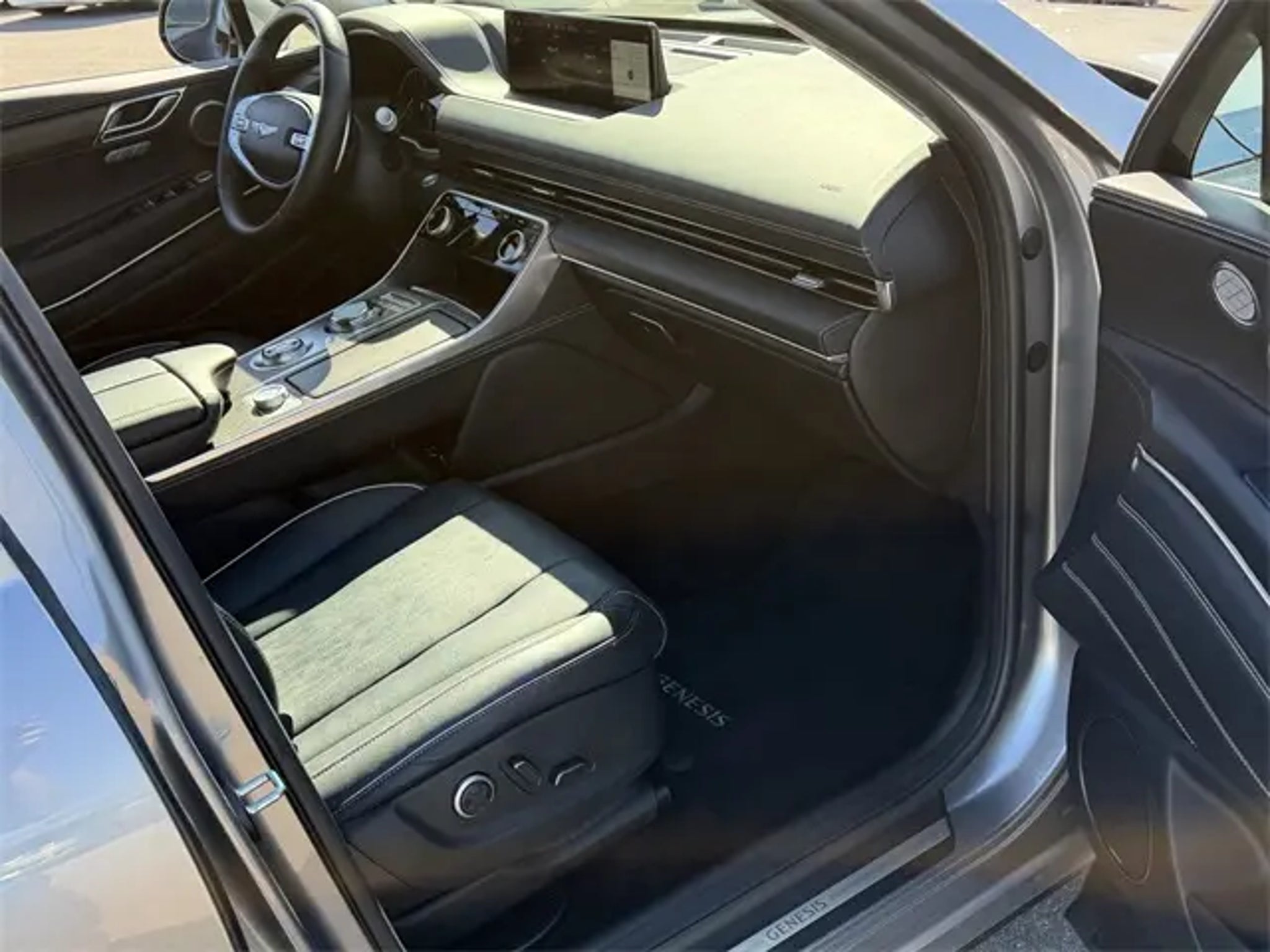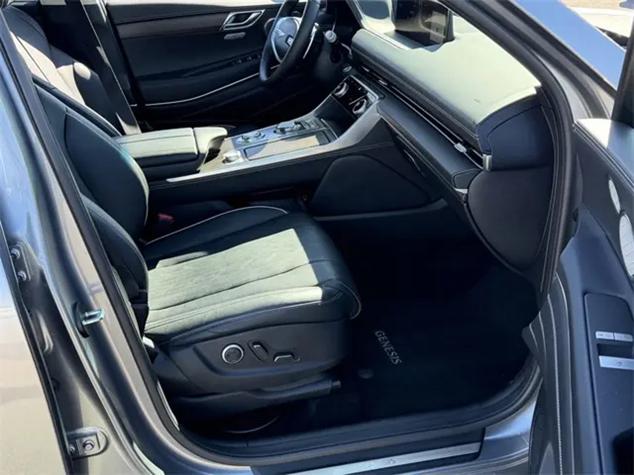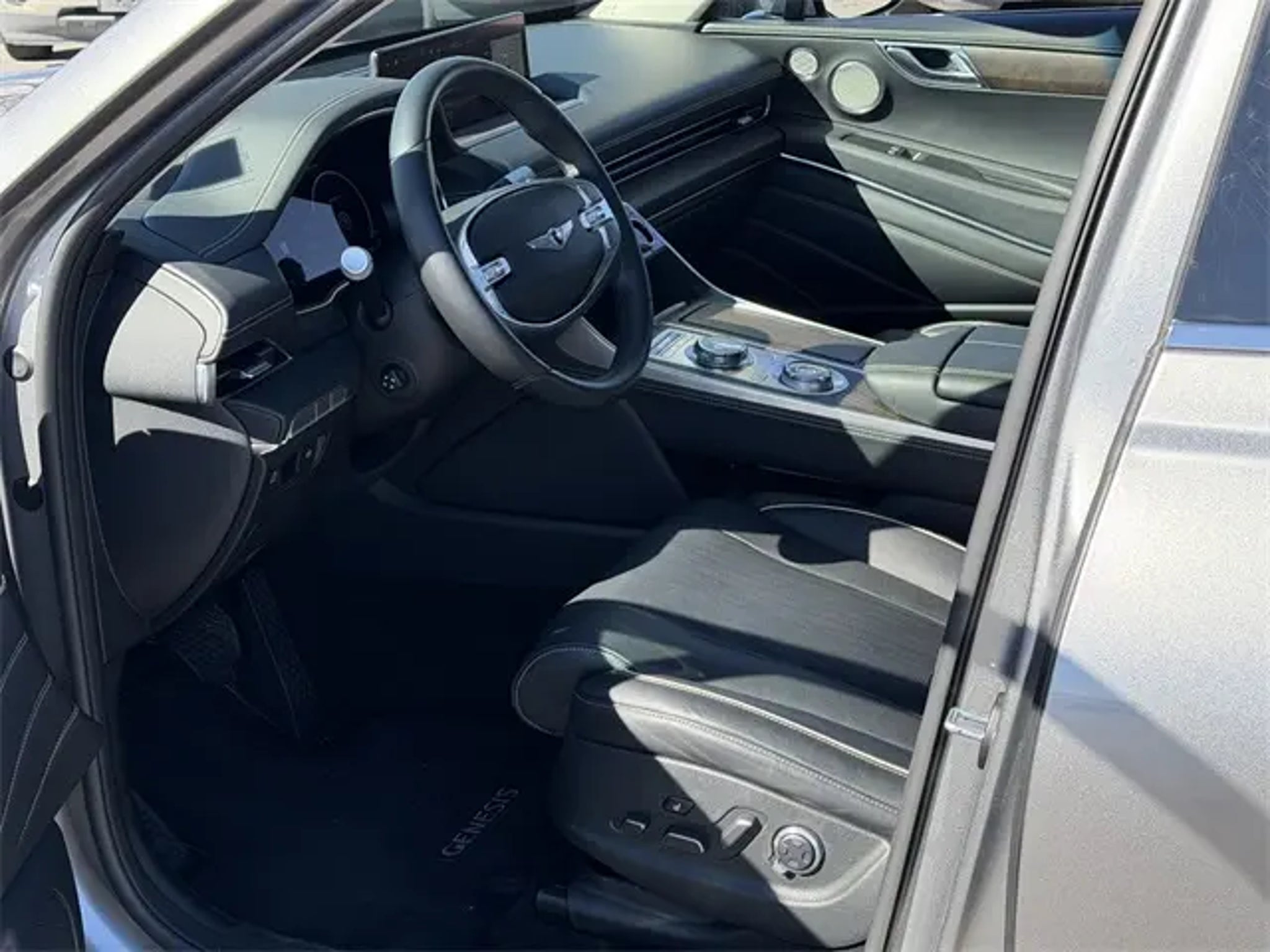 CARFAX One-Owner. Priced below KBB Fair Purchase Price! Grey 2023 Genesis GV80 2.5T AWD 8-Speed Automatic 2.5L DOHC ** MOONROOF **, NAVIGATION, Prestige Package. If you don't drive here, you can't save here! Price may not include recon fee. Prestige Package (Blind-Spot View Monitor, Leather Seating Surfaces, Monobloc Front Brakes, Option Group 02, Panoramic Sunroof, Parking Collision-Avoidance Assist, Radio: AM/FM/SiriusXM/HD Lexicon Prem Audio System, Remote Smart Parking Assist, Surround View Monitor, and Ventilated Front Seats), Advanced Package, 12 Speakers, 4-Wheel Disc Brakes, 4.363 Axle Ratio, ABS brakes, Air Conditioning, Alloy wheels, AM/FM radio: SiriusXM, Android Auto & Apple CarPlay, Anti-whiplash front head restraints, Auto High-beam Headlights, Auto tilt-away steering wheel, Auto-dimming door mirrors, Auto-dimming Rear-View mirror, Auto-leveling suspension, Automatic temperature control, Brake assist, Bumpers: body-color, Compass, Delay-off headlights, Driver door bin, Driver vanity mirror, Dual front impact airbags, Dual front side impact airbags, Electronic Stability Control, Emergency communication system: Genesis Connected Services, Exterior Parking Camera Rear, Four wheel independent suspension, Front anti-roll bar, Front Bucket Seats, Front Center Armrest, Front dual zone A/C, Front reading lights, Fully automatic headlights, Garage door transmitter: HomeLink, Genuine wood console insert, Genuine wood dashboard insert, Genuine wood door panel insert, Heated door mirrors, Heated Front Bucket Seats, Heated front seats, Heated steering wheel, Illuminated entry, Knee airbag, Leather steering wheel, Leatherette Seating Surfaces, Low tire pressure warning, Memory seat, Navigation System, Occupant sensing airbag, Outside temperature display, Overhead airbag, Overhead console, Panic alarm, Passenger door bin, Passenger vanity mirror, Power door mirrors, Power driver seat, Power Liftgate, Power passenger seat, Power steering, Power windows, Radio data system, Radio: AM/FM/SiriusXM/HD Audio System, Rain sensing wipers, Rear air conditioning, Rear anti-roll bar, Rear reading lights, Rear seat center armrest, Rear side impact airbag, Rear window defroster, Rear window wiper, Remote keyless entry, Security system, Speed control, Speed-sensing steering, Speed-Sensitive Wipers, Split folding rear seat, Spoiler, Steering wheel memory, Steering wheel mounted audio controls, Tachometer, Telescoping steering wheel, Tilt steering wheel, Traction control, Trip computer, Turn signal indicator mirrors, Variably intermittent wipers, and Wheels: 19 x 8.5J Medium Metallic Gray Alloy.
