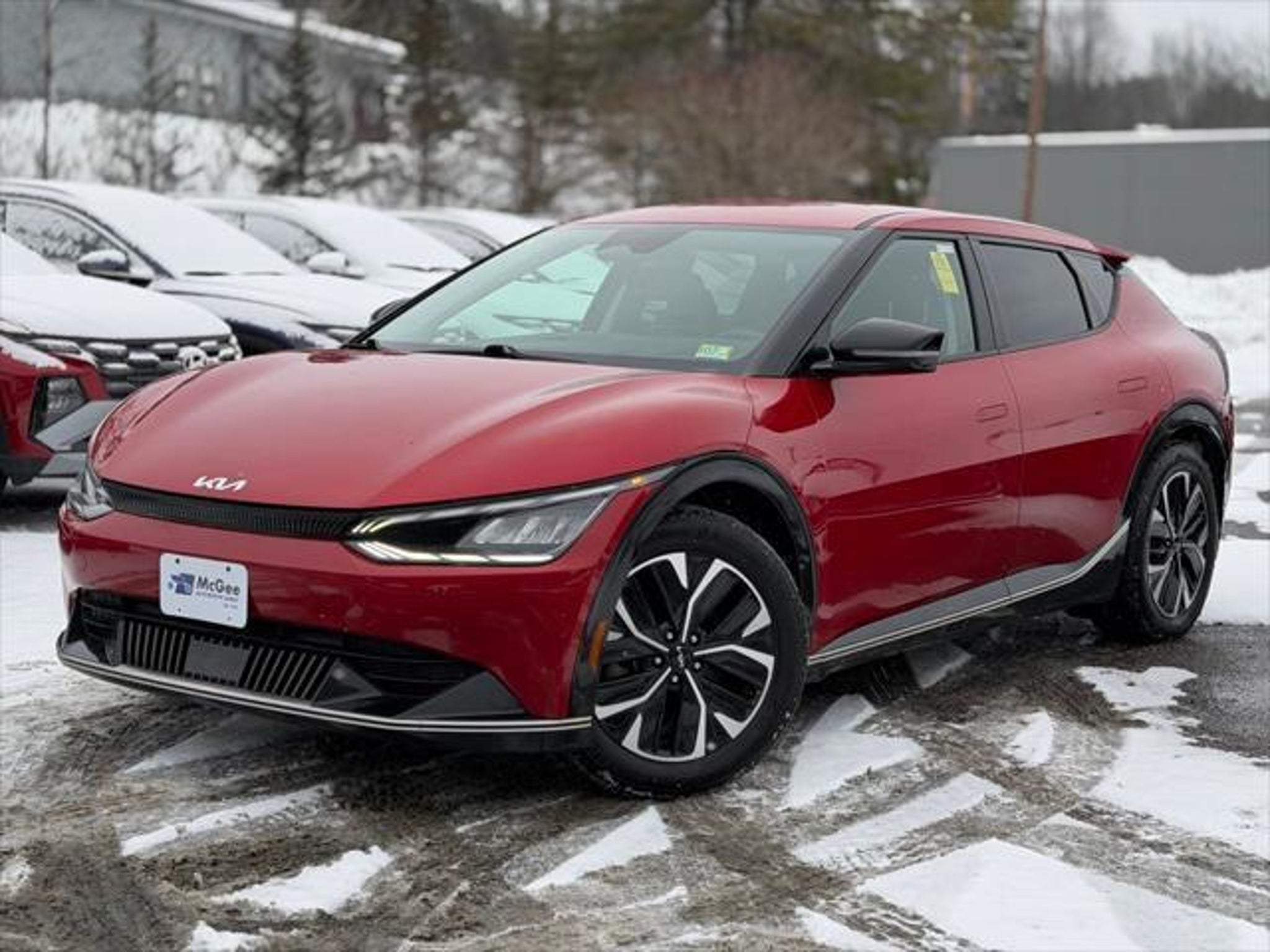 Recent Arrival! *Why Buy at McGee Hyundai CDJR Of Barre* -- Complimentary vehicle delivery available within range (contact us for details) -- On site parts and accessory department to customize your new vehicle. CARFAX One-Owner. Clean CARFAX. 2022 Kia EV6 Wind Wind Electric Motor 1-Speed Automatic AWD 4D Sport Utility Runway Red McGee Hyundai CDJR Barre is proud to present you with another True Market Priced Pre-Owned Vehicle. This 2022 Kia EV6 Wind is loaded with the following Factory Options: 14 Speakers, 4-Wheel Disc Brakes, ABS brakes, Air Conditioning, Alloy wheels, AM/FM radio: SiriusXM, Apple CarPlay & Android Auto, Auto High-beam Headlights, Auto-dimming Rear-View mirror, Automatic temperature control, Axle Ratio: 10.650, Brake assist, Bumpers: body-color, Carpeted Floor Mats, Delay-off headlights, Driver door bin, Driver vanity mirror, Dual front impact airbags, Dual front side impact airbags, Electronic Stability Control, Emergency communication system, Four wheel independent suspension, Front anti-roll bar, Front Bucket Seats, Front Center Armrest, Front dual zone A/C, Front reading lights, Fully automatic headlights, Heated & Ventilated Front Bucket Seats, Heated door mirrors, Heated front seats, Heated rear seats, Heated steering wheel, Illuminated entry, Knee airbag, Low tire pressure warning, Memory seat, Navigation system: AVN 5.0 Navigation System, Occupant sensing airbag, Outside temperature display, Overhead airbag, Overhead console, Panic alarm, Passenger door bin, Passenger vanity mirror, Power door mirrors, Power driver seat, Power Liftgate, Power passenger seat, Power steering, Power windows, Radio: Meridian Premium Audio System, Rain sensing wipers, Rear anti-roll bar, Rear seat center armrest, Rear window defroster, Remote keyless entry, Security system, Smart Key w/ Push Button and Remote Start, Speed control, Speed-sensing steering, Split folding rear seat, Spoiler, Steering wheel mounted audio controls, Telescoping steering wheel, Tilt steering wheel, Traction control, Trip computer, Turn signal indicator mirrors, Variably intermittent wipers, Vegan Leather Seat Trim, Ventilated front seats, and Wheels: 7.5J x 19 Black Painted Alloy!