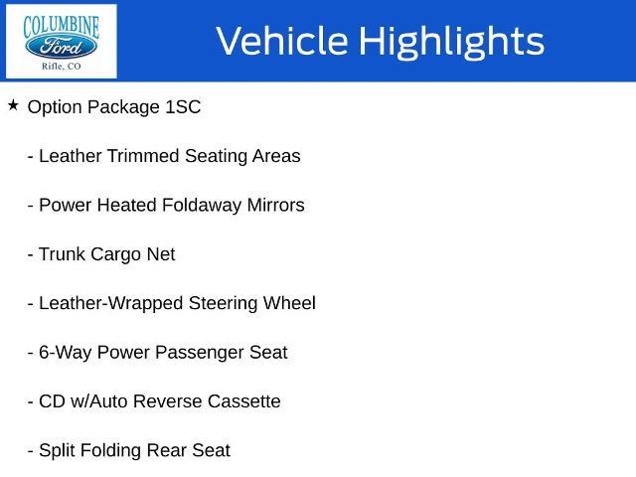 Bargain Corral!!! Welcome to our Bargain Corral Program, where value and transparency come standard. At Columbine Ford, we know our communities need reliable, affordable vehiclesâespecially those with a little extra mileage or a few more years behind them. Instead of fully reconditioning these solid pre-owned vehicles (and pricing them out of reach) or wholesaling them to dealers who sell them without disclosure, we offer them as-is, clearly inspected, and competitively priced. Any vehicle over 10 years old or 100,000 miles typically qualifies. Take advantage of exceptional savings and drive home a well-loved vehicle with plenty of life left to give! - ASTROROOF - pwr sliding gray-tint glass panel w/tilt feature - 16 CHROME-PLATED ALUMINUM WHEELS - Leather Package - Option Package 1SC - 6 Speaker Dimensional Sound System - CD w/Auto Reverse Cassette - Dual Zone Automatic Air Conditioning - Driver's Power Seat - Fog Lights - Keyless Remote Lock Control - Cruise Control - Faux Woodgrain Interior Accents - Power Heated Foldaway Mirrors - Electrochromic Rear-View Mirror - Leather-Wrapped Steering Wheel - Sunvisors w/Lighted Mirrors - 6-Way Power Passenger Seat - Leather Trimmed Seating Areas - Split Folding Rear Seat - Trunk Cargo Net - 16 Aluminum Wheels This 1999 Oldsmobile Intrigue GLS is a well-equipped, comfortable, and stylish mid-size sedan that's ready to take on your daily driving needs. With its powerful 3.5L V6 engine, smooth 4-speed automatic transmission, and impressive fuel economy of 19 city/27 highway MPG, this Intrigue delivers a satisfying blend of performance and efficiency. The exterior's sleek silver paint and chrome-plated aluminum wheels give the Intrigue a refined, upscale appearance, while the spacious, leather-trimmed interior pampers you with luxurious amenities like dual-zone automatic climate control, a premium sound system, and a power-sliding sunroof. Thoughtful features like keyless entry, cruise control, and heated power mirrors add to the Intrigue's convenience and comfort. Whether you're commuting, running errands, or embarking on a road trip, this Oldsmobile Intrigue GLS is a smart, well-rounded choice that won't break the bank. Backed by our Bargain Corral program, this pre-owned gem offers exceptional value and peace of mind. Visit us at Columbine Ford today to experience it for yourself! At Columbine Ford, we're proud to be Western Colorado's most trusted dealership and a multi-year recipient of Ford's prestigious President's Award for exceptional customer satisf