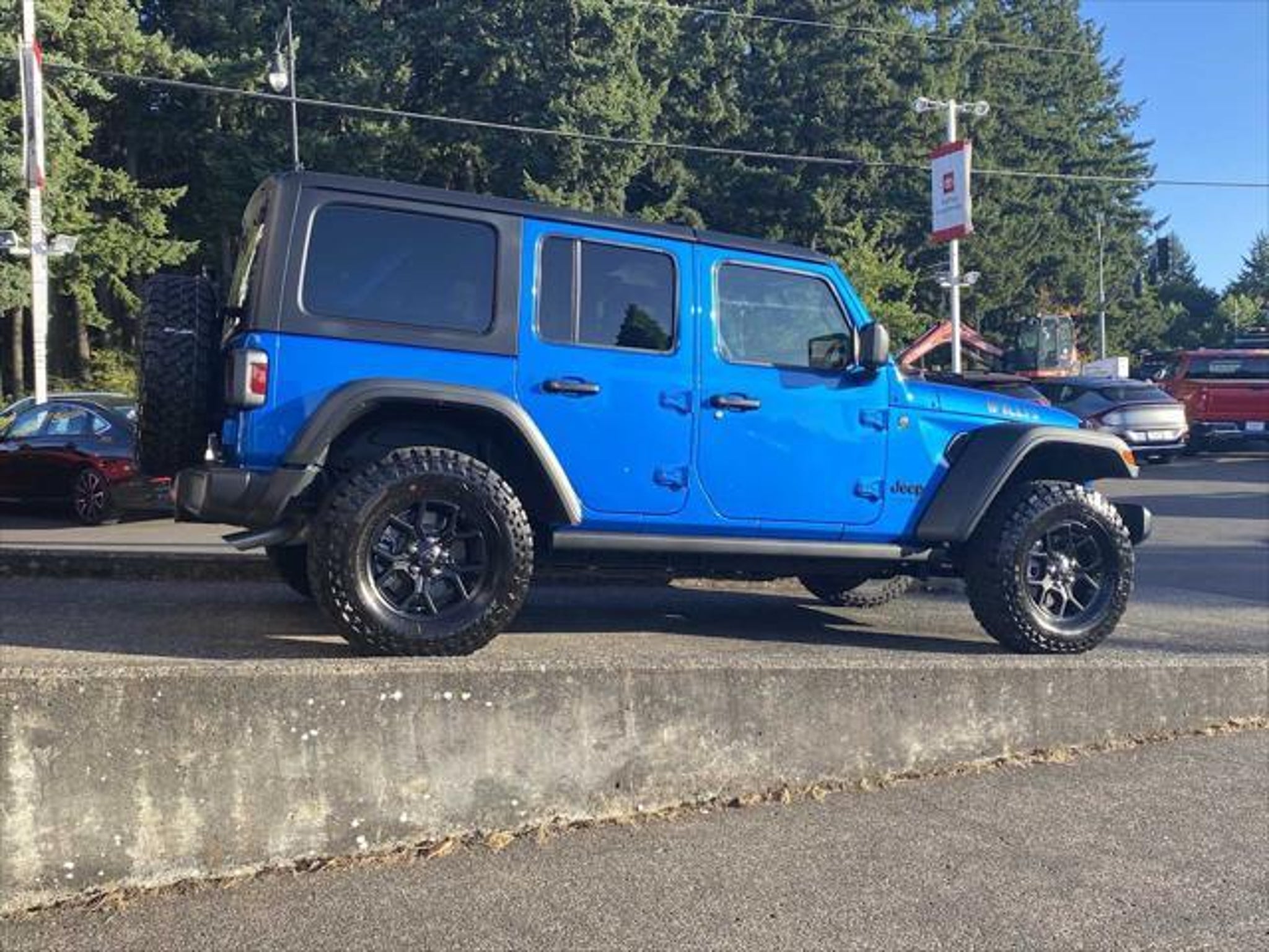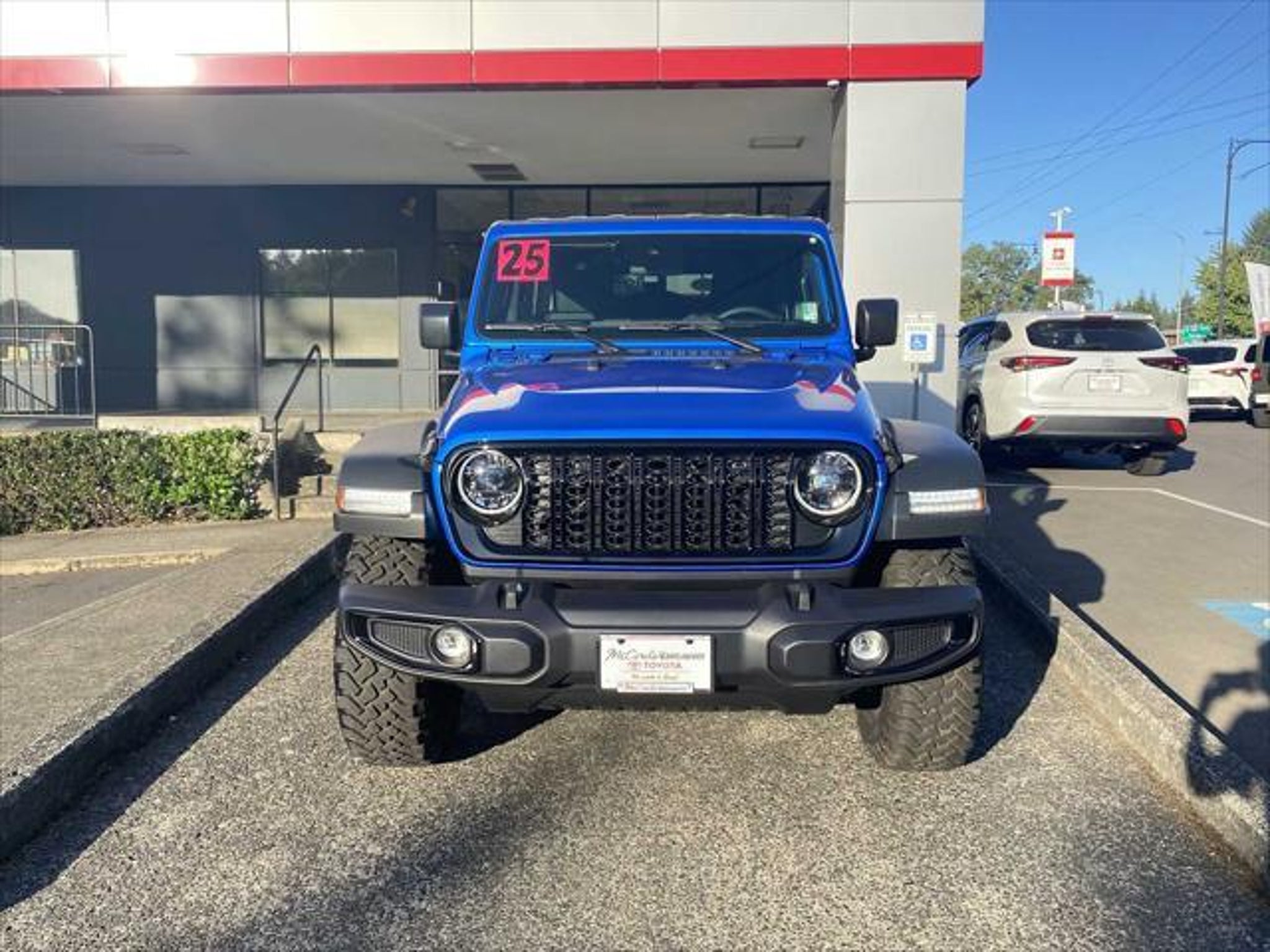 REDUCED FROM $45,491! CARFAX 1-Owner, LOW MILES - 2,504! Brake Actuated Limited Slip Differential, Smart Device Integration, Keyless Start, Bluetooth®, iPod/MP3 Input, Satellite Radio, Aluminum Wheels, 4x4, Back-Up Camera AND MORE! KEY FEATURES INCLUDE Back-Up Camera, Satellite Radio, iPod/MP3 Input, Bluetooth®, Aluminum Wheels, Keyless Start, Smart Device Integration, Brake Actuated Limited Slip Differential. MP3 Player, 4x4, Keyless Entry, Privacy Glass, Steering Wheel Controls. OPTION PACKAGES QUICK ORDER PACKAGE 24W WILLYS Engine: 3.6L V6 24V VVT UPG I w/ESS, Transmission: 8-Speed Automatic (850RE), 7 & 4 Pin Wiring Harness, Conventional Differential Front Axle, 4-Wheel Drive Swing Gate Decal, Black Grille, Injection Molded Black Rear Bumper, Dana M210 Wide HD Tube Front Axle, Daytime Running Lamps LED Accents, Front LED Fog Lamps, LED Premium Reflector Headlamps, E-Locker Rear Axle, Corning Gorilla Glass, Security Alarm, Class II Receiver Hitch, Mold In Color Bumper w/Gloss Black, Advanced Brake Assist, Automatic Headlamps, Off-Road Plus Mode, Willys Hood Decal, Full Speed Forward Collision Warning Plus, Rock Protection Sill Rails, 97 MPH Vehicle Max Speed Calibration, Power Heated Mirrors, Enhanced Adaptive Cruise Control, Auxiliary Switches, Dana M220 Wide Rear Axle, Molded, TRANSMISSION: 8-SPEED AUTOMATIC (850RE) Adaptive Cruise Control w/Stop, Anti-Lock 4-Wheel Disc Brakes, Integrated Radar Camera Module (IRCM), Dana M200 Rear Axle, Selec-Speed Control, BLACK 3-PIECE HARD TOP Freedom Panel Storage Bag, Rear Window Defroster, Rear Window Wiper/Washer, ENGINE: 3.6L V6 24V VVT UPG I W/ESS (STD). Jeep Willys with Hydro Blue Pearlcoat exterior and Black interior features a V6 Cylinder Engine with 285 HP at 6400 RPM*. AFFORDABILITY Reduced from $45,491. OUR PROMISE McCords Vancouver Toyota-Scion is a family owned and operated dealership since 1982. Our promise is to provide our customers with the best possible reconditioned used car on the market. We will run every used vehicle we offer for sale against the NHTSA (National Highway Traffic Safety Administration) recall data base and will address any recall before we sell it to you. Every used car is run through a 160 point quality control inspection- We pay our mechanics to find any issues so you dont have to. We offer a 5 day 500 mile No Questions Asked money back guarantee, a 12mo/12k mile limited powertrain warranty on any vehicle that is 14 years or newer and has less than 125k miles. The warranty allows you to fix the vehicle at any shop that you choose- not just us. Plus our Certified Toyota program that gives you 1yr/12k mile comprehensive warranty coverage and 7yr/100k mile powertrain coverage. MCCORDS VALUE PRICE We research our market and Value price every vehicle we offer for sale with a very competitive price. Less time negotiating and more time finding the vehicle that best matches your wants and needs. We look forward to your visit. Pricing analysis performed on 1/28/2026. Horsepower calculations based on trim engine configuration. Please confirm the accuracy of the included equipment by calling us prior to purchase.