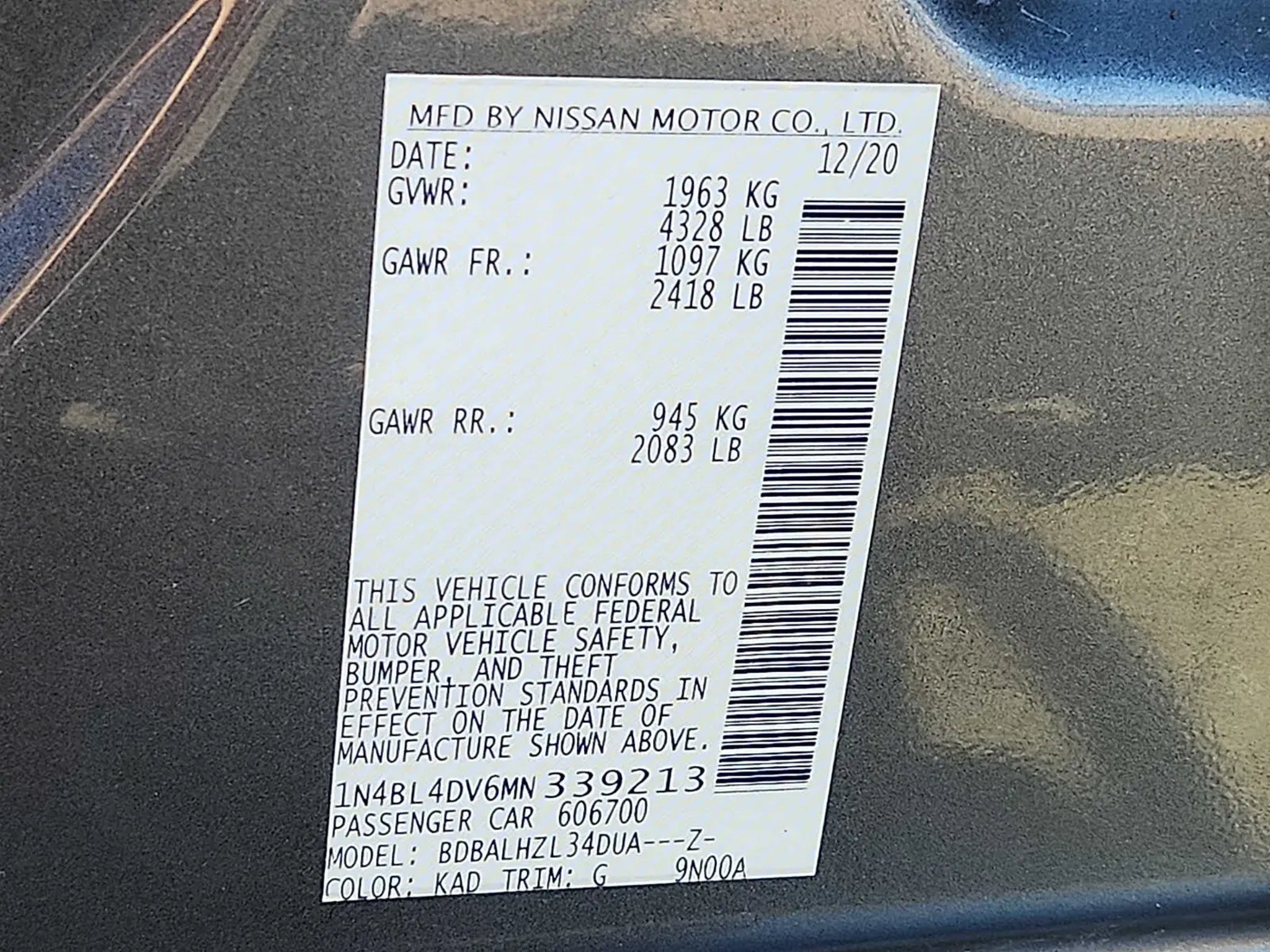 VIN 1N4BL4DV6MN339213