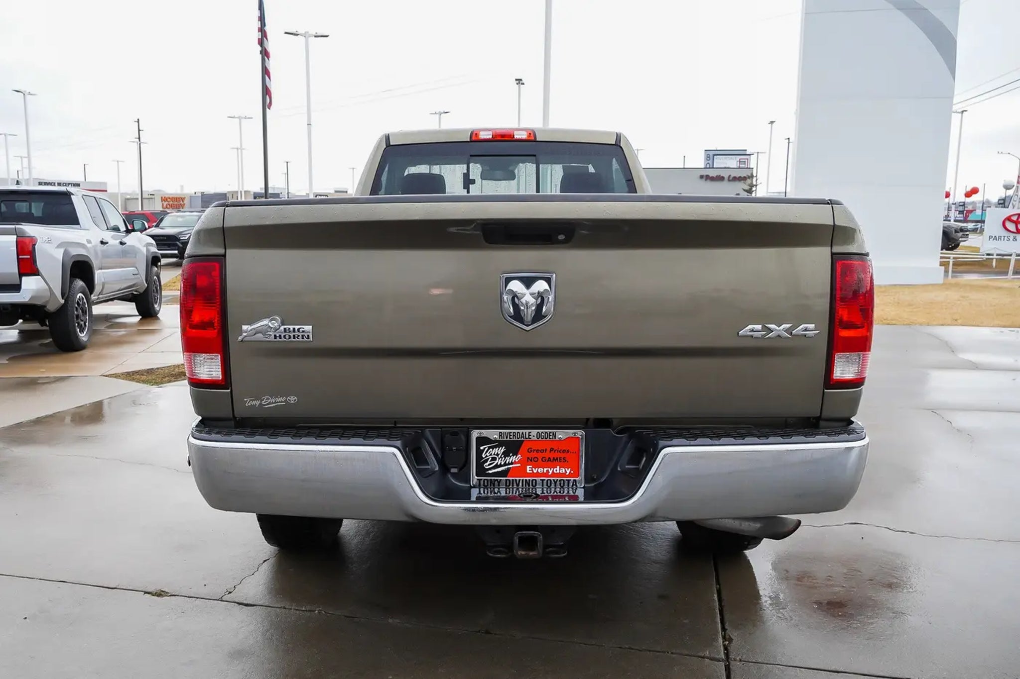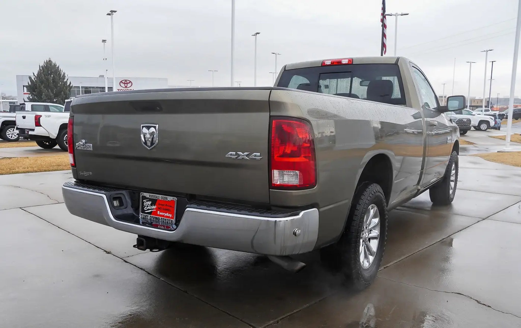 Only 89,688 Miles! Delivers 23 Highway MPG and 16 City MPG! This Ram 1500 boasts a Regular Unleaded V-6 3.6 L/220 engine powering this Automatic transmission. TRANSMISSION: 8-SPEED AUTOMATIC (845RE) (STD), MANUFACTURER'S STATEMENT OF ORIGIN, ENGINE: 3.6L V6 24V VVT (STD). This Ram 1500 Features the Following Options Wheels: 20 x 8 Aluminum Chrome Clad, Vinyl Door Trim Insert, Variable Intermittent Wipers, Valet Function, Urethane Gear Shifter Material, Trip Computer, Transmission: 8-Speed Automatic (845RE), Transmission w/Driver Selectable Mode and Oil Cooler, Trailer Wiring Harness, Towing Equipment -inc: Trailer Sway Control. Expert Reviews! As reported by KBB.com: If you want the only full-size pickup (so far) with the fuel economy of a smaller-displacement diesel engine yet all the pulling and working power you???d expect, the 2014 Ram 1500 is for you. Visit Us Today Stop by Tony Divino Toyota located at 777 West Riverdale Rd, Riverdale, UT 84405 for a quick visit and a great vehicle! * Estimated Monthly Payment will depend on vehicle make and model and will be determined upon actual vehicle inspection. All payments are estimates. Tax, title, registration and documentation fee ($349) are extra.* While every reasonable effort is made to ensure the accuracy of this information, we are not responsible for any errors or omissions contained on these pages. Please verify any information in question with Tony Divino Toyota.