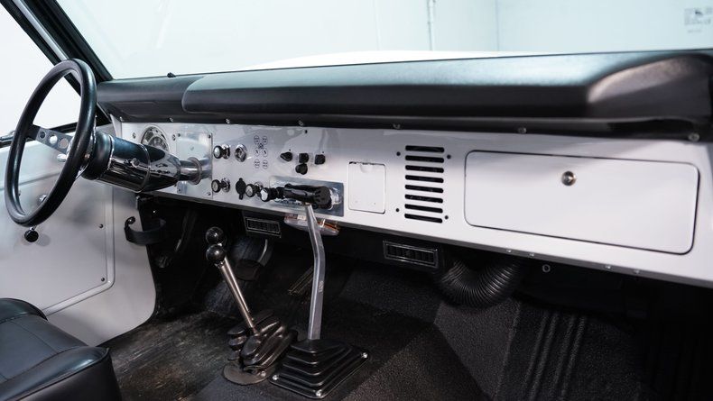 Under the hood, this Bronco packs a rebuilt 289 V8 paired with a 4-speed automatic transmission for a powerful and responsive ride. Performance upgrades include a Holley Demon 4-barrel carburetor, polished Edelbrock intake, MSD ignition, billet accessory drive, Hedman long tube headers, and a MagnaFlow dual side-exit exhaust. The aluminum radiator and electric fans keep things cool, while four-wheel power disc brakes and power steering ensure confident control on any terrain.