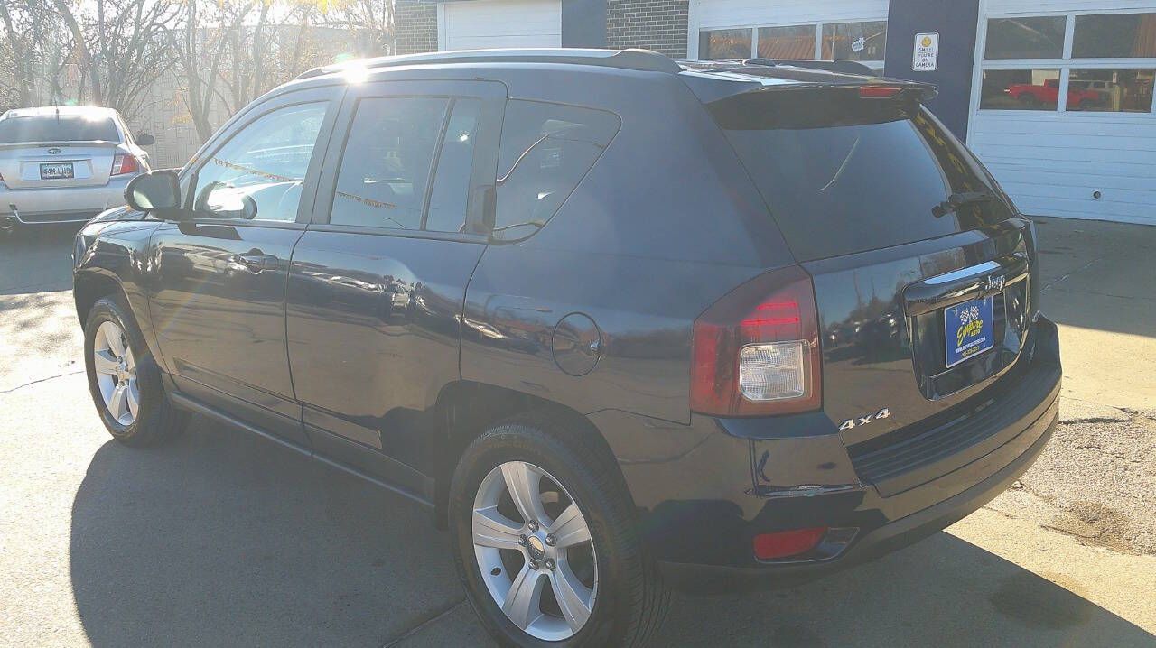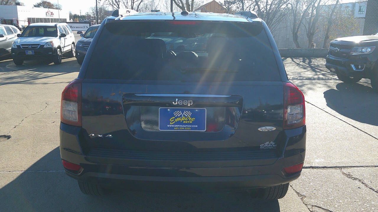 Low miles on this 17 Jeep Compass Latitude 4x4 in really clean condition. A must see and drive, it is the best value around. 90-day warranty and all service work is done. The front windshield is in excellent condition. The paint is in great shape and condition dings are visible on this vehicle. The tires are slightly worn with about 85% of tread life left. The interior was well-maintained and is extra clean. The exterior is clean and in good condition. The engine is functioning properly and has no issues. The transmission shifts very smoothly. The brakes are in great condition. The battery is in excellent condition. The car was previously owned by a non-smoker. A full-size spare is included with this vehicle. Be an Empire buyer today! empireautosf.com 605 339-2225