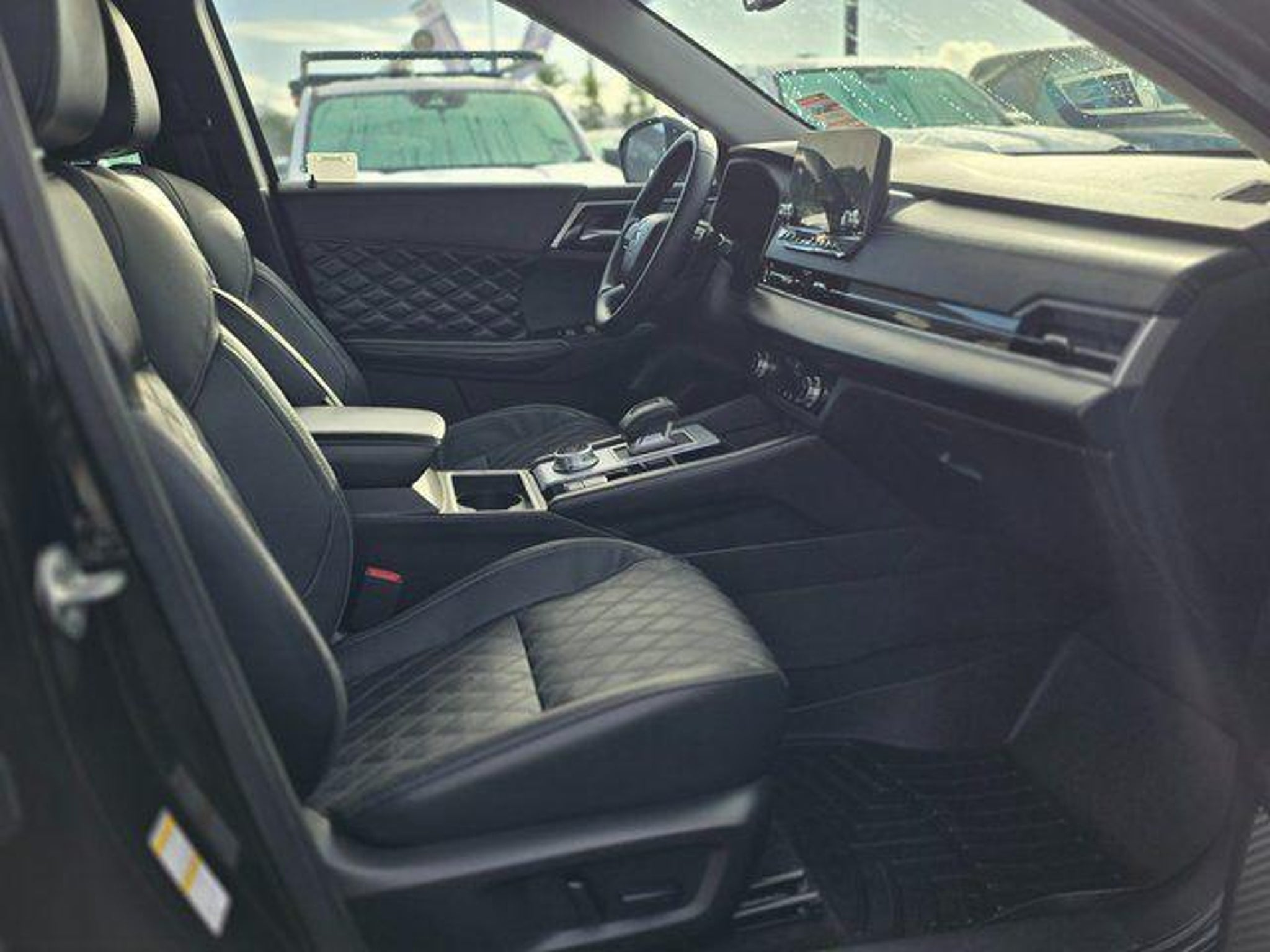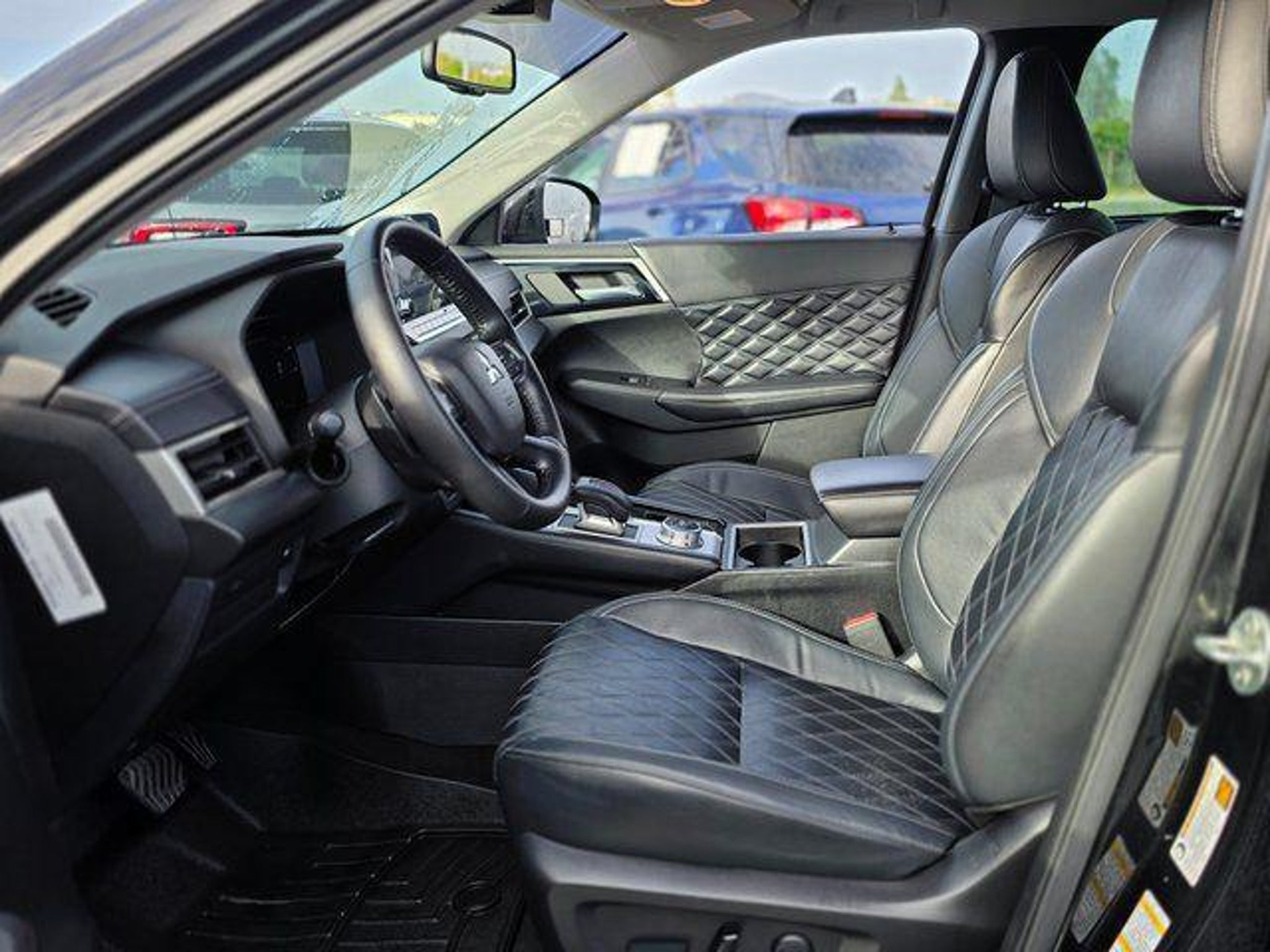 4-Wheel Disc Brakes, Android Auto & Apple CarPlay, Auto-dimming Rear-View mirror, Exterior Parking Camera Rear, Front dual zone A/C, Fully automatic headlights, Heated front seats, Heated rear seats, Leather Seat Trim, Memory seat, Navigation System, Power door mirrors, Power driver seat, Power Liftgate, Radio: AM/FM 9.0 Navigation w/Smartphone Link, Rain sensing wipers, Rear air conditioning, Reclining 3rd row seat, Remote keyless entry. Black Diamond 2023 Mitsubishi Outlander SEL 24/31 City/Highway MPG FWD CVT 2.5L 4-Cylinder DOHC Odometer is 8231 miles below market average! 24/31 City/Highway MPG