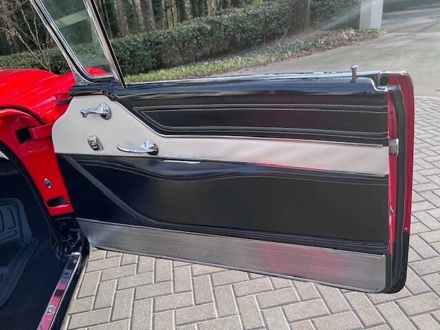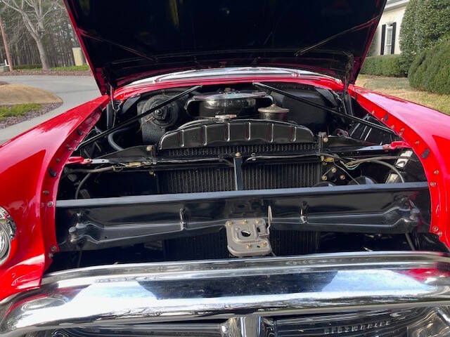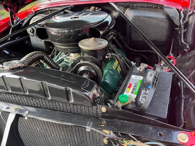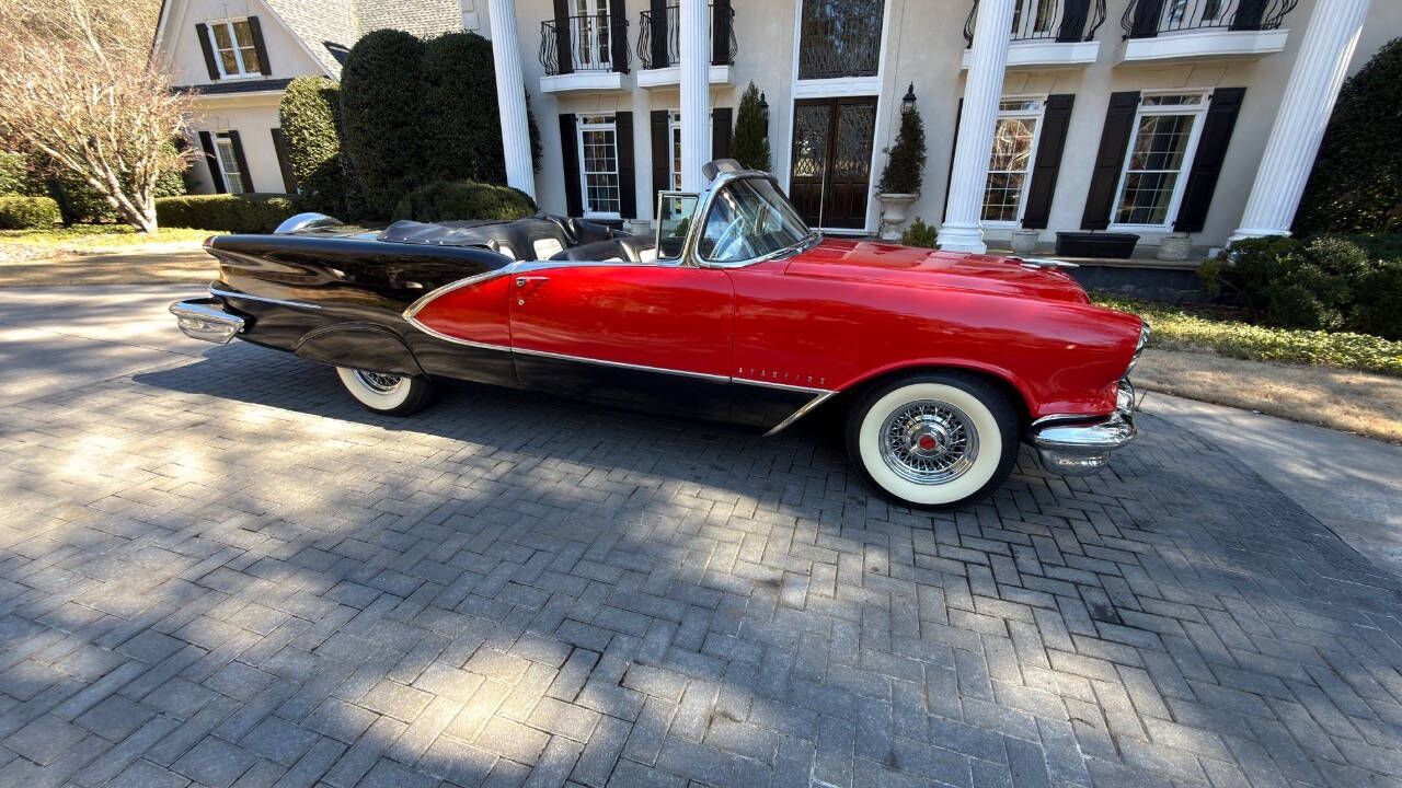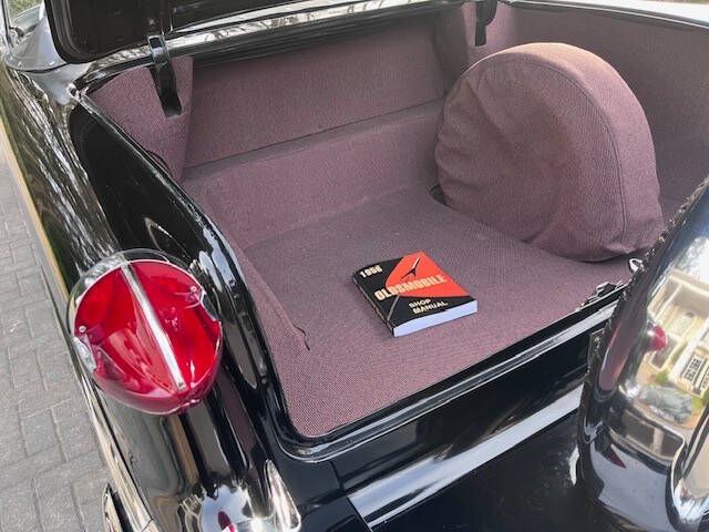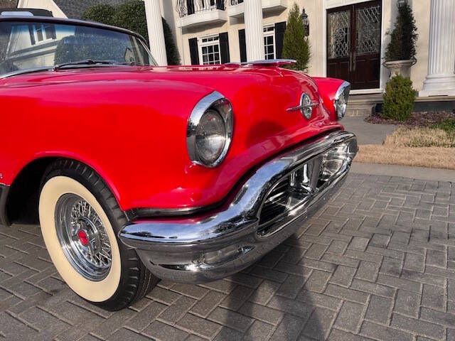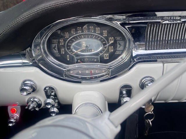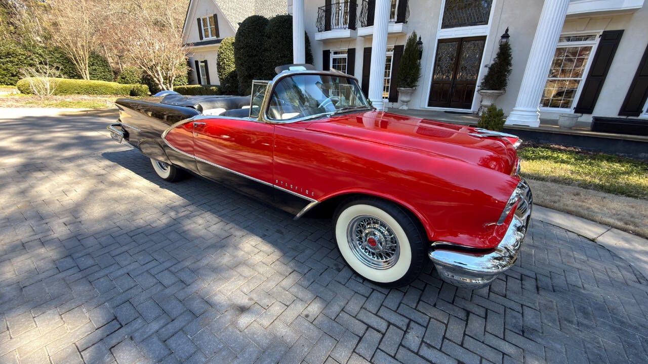 In 1956, a comprehensive redesign of the entire Oldsmobile lineup took place, including the flagship Ninety-Eight series which offered three distinct body styles. The convertible models were branded as the Starfire a nod to the previous years Starfire Dream Car. The 1956 model was updated to be visually more similar to the concept car, incorporating a large deep grille with minimal exterior trim and bumper elements. A Jet-Inspired grille created two deeply concave pods. This Magnificent and Quite Rare Starfire is finished in Stunning Fiesta Red and over Black with Black and White Interior and Black Soft Top underwent a Comprehensive Restoration incl. Exterior, Interior, Top, Brightwork, and Mechanics. It comes with a multitude of amenities including: Hydra-Matic Automatic Transmission 4 Speed Power Assisted Steering Power Assisted Brakes Power Windows Power Seat Power Convertible Top Vinyl and Stainless Door Panels Padded Dashboard Deluxe Push button Radio Delux Heating/Defrost System Courtesy Lamps Parking Brake Signal Oldsmobile Scripted Vanity Mirror Tinted Windows Electric Clock Cigar Lighter (Unused) Vent Windows Windshield Washers Turn Signals Backup Lamps Day/Night Rear View Mirror Chrome Side View Mirror Rear Fender Skirts Black Haartz Canvas Soft Top Black Convertible Top Boot Black and White Deluxe Leather Interior Rocket V-8 Engine 324 cu. in. displacement 5.3L 4 Barrel Carburation Dual Exhaust System 240 Horsepower 3.9 in./3.4 in. Bore/Stroke 9.25 Compression Weight: 3,780 lbs Length: 203.3 in. Wide Whitewall Tires 8.10 x15 Kelsey Hayes Styled Chrome Wire Wheels Oldsmobile Scripted Center Caps Stunning Rear Continental Kit Dual Exhaust Ports Recessed into Rear Bumper Show Quality Undercarriage, Engine Bay, and Trunk Magnificent Jet Styling Hood Ornament Original Owner Manual Sales Literature Shop Manual Many 50s Classic Aficionados believe the 50s Starfire Convertible is at the High Watermark of 50s Styling and Automotive Art! This exquisite Starfire is Absolutely Immaculate Throughout. Of the limited number produced in 1956, only a handful are believed to remain in this color combination, highly optioned, and in this condition! It is as Straight as an Arrow and an Absolute Joy to Drive. It garners all the Oohs and Aahs anytime out. Ready for Show or Tour! Ask $89,950.