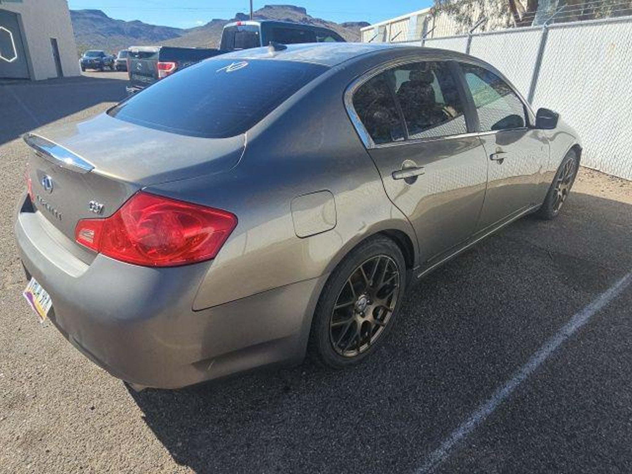 Graphite Leather. 3.7L V6 DOHC 24V Recent Arrival! Desert Shadow 2010 INFINITI G37 Journey RWD At High Desert Hyundai, we pride ourselves on offering a stellar automotive experience for drivers in Kingman, Henderson NV, and Prescott AZ. Our dedicated team of sales advisors, service technicians, and financing experts are here to address all your needs with the utmost respect, care, and attention to detail. Whether you're interested in the sleek Hyundai Santa Fe Sport, the stylish Sonata, the efficient Elantra, the versatile Tucson, or the compact Accent, our knowledgeable team will guide you through all the features and benefits of each model. If you're in the market for a reliable used car, our team is ready to help you explore our extensive inventory of pre-owned vehicles. Each car undergoes a thorough inspection to ensure it meets our high standards of quality and reliability. Our auto finance team is here to provide personalized solutions that fit your individual needs. Whether you're looking to lease a new Hyundai or finance a pre-owned vehicle, we offer a range of options to make the process stress-free. Start with our online appraisal form and credit application to get a head start. Our commitment to excellence doesn't end with the sale. Our onsite auto service and repair department is staffed with skilled technicians who use cutting-edge tools and technologies to keep your vehicle running smoothly. For those who prefer to perform their own maintenance, we offer a vast collection of authentic Hyundai parts and accessories. High Desert Hyundai has all your automotive needs covered. Whether you're stopping by for a test drive or need an oil change, our team is ready to assist you. Visit us at 4180 N Stockton Hill Rd, Kingman, Arizona, or contact us today to learn more about our services and inventory. This 2010 INFINITI G37 is equipped with the following options: Graphite Leather, 17 Aluminum Alloy Wheels, 4-Wheel Disc Brakes, 6 Speakers, ABS brakes, Air Conditioning, Alloy wheels, AM/FM radio: XM, AM/FM/CD Player w/MP3/WMA Capability, Anti-whiplash front head restraints, Auto-dimming Rear-View mirror, Automatic temperature control, Brake assist, Bumpers: body-color, CD player, Delay-off headlights, Driver door bin, Driver vanity mirror, Dual front impact airbags, Dual front side impact airbags, Electronic Stability Control, Exterior Parking Camera Rear, Four wheel independent suspension, Front anti-roll bar, Front Bucket Seats, Front Center Armrest, Front dual zone A/C, Front fog lights, Front reading lights, Front Sport Seats, Fully automatic headlights, Garage door transmitter: HomeLink, Heated door mirrors, Heated Front Bucket Seats, Heated front seats, High intensity discharge headlights: Bi-Xenon, Illuminated entry, Leather Appointed Seat Trim, Leather Shift Knob, Leather steering wheel, Low tire pressure warning, Occupant sensing airbag, Outside temperature display, Overhead airbag, Overhead console, Panic alarm, Passenger door bin, Passenger vanity mirror, Power door mirrors, Power driver seat, Power passenger seat, Power steering, Power windows, Radio data system, Rear anti-roll bar, Rear reading lights, Rear seat center armrest, Rear window defroster, Remote keyless entry, Security system, Speed control, Speed-sensing steering, Speed-Sensitive Wipers, Steering wheel mounted audio controls, Tachometer, Telescoping steering wheel, Tilt steering wheel, Traction control, Trip computer, Trunk Net (Discontinued), and Variably intermittent wipers.