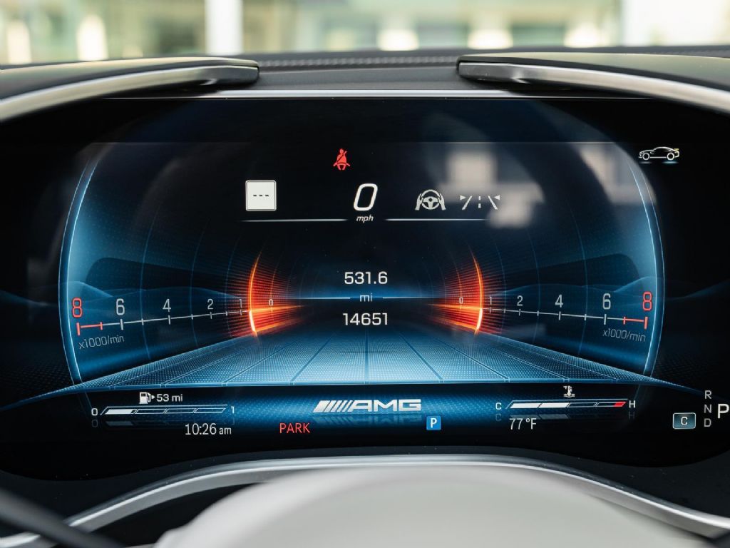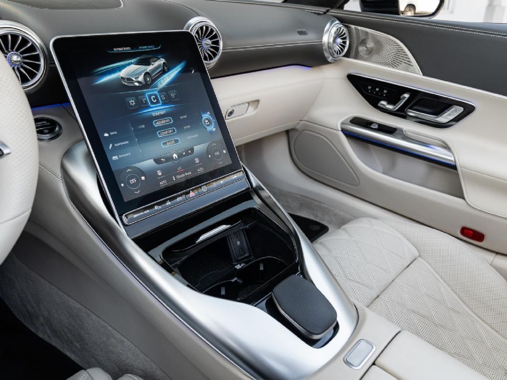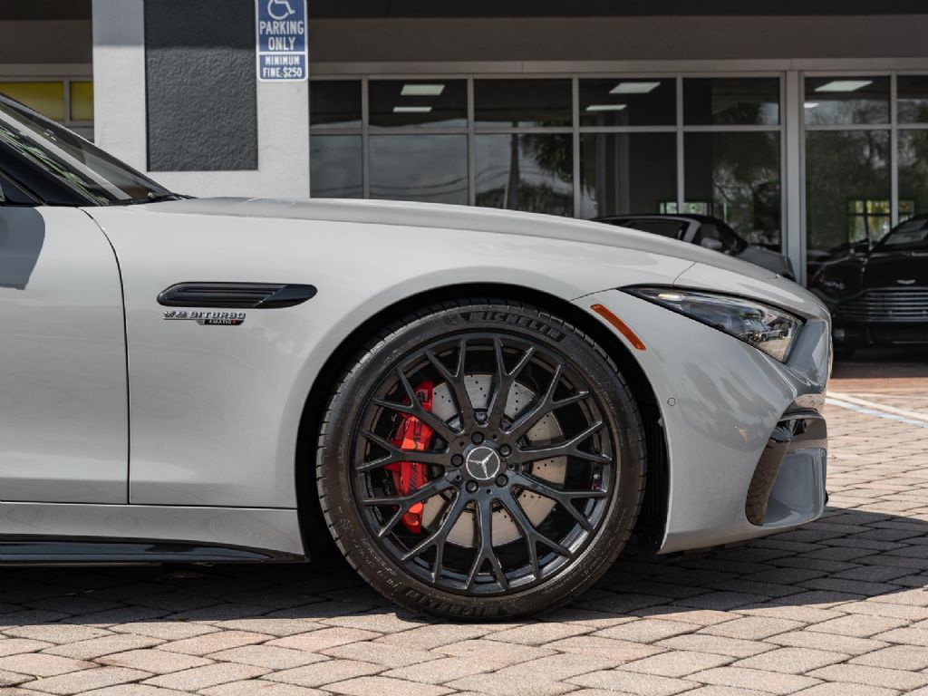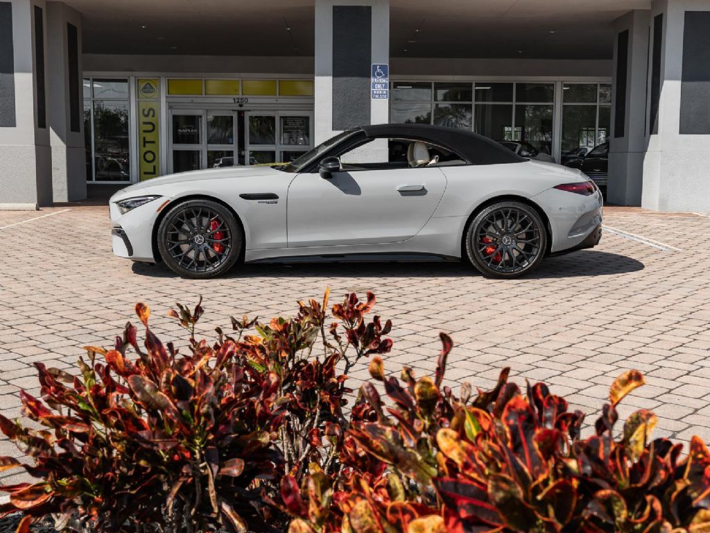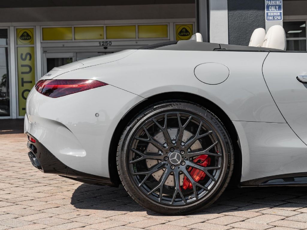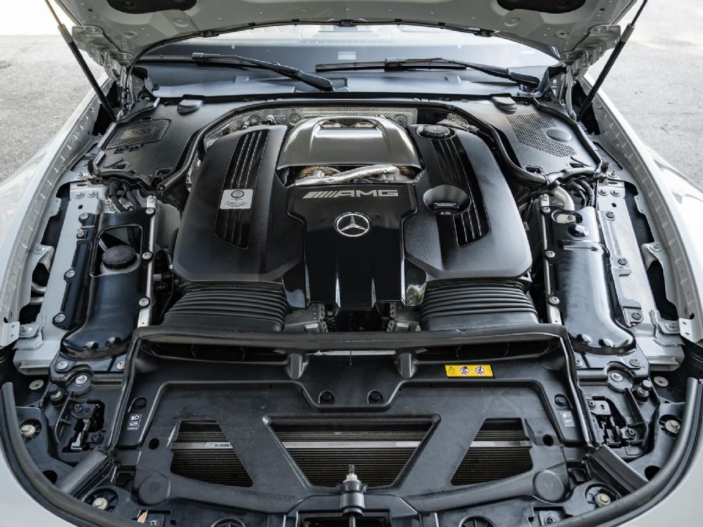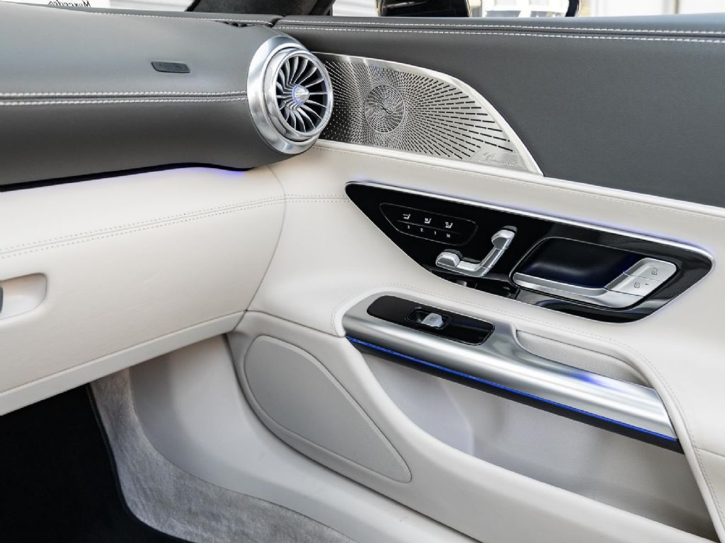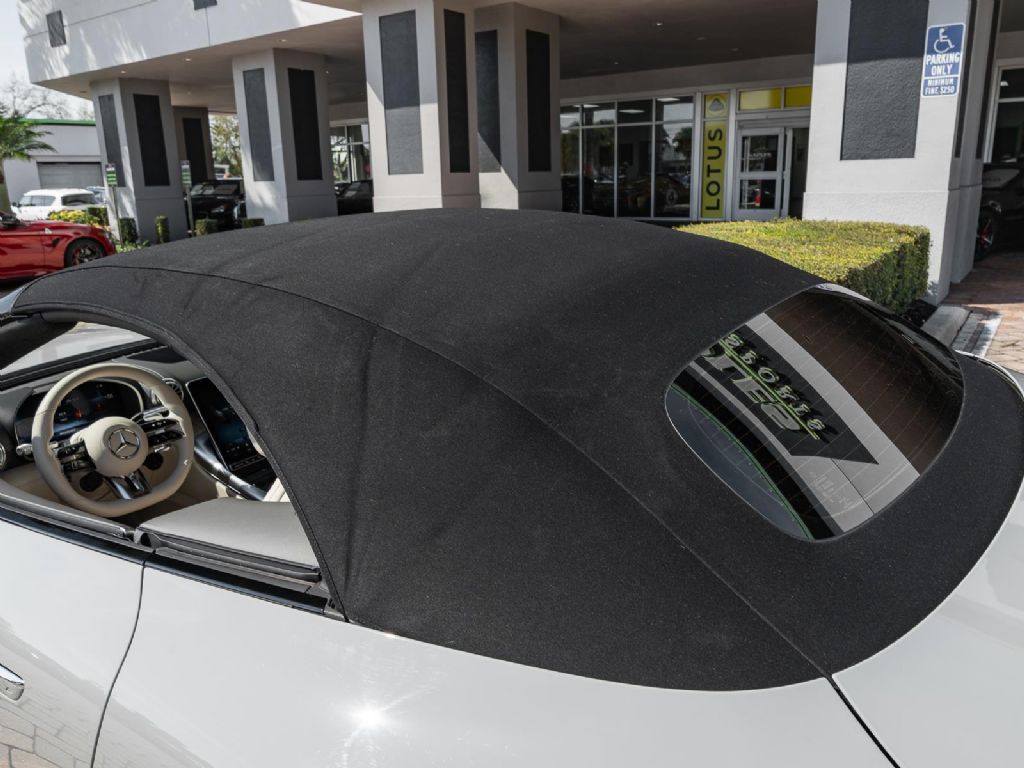 This 2022 Mercedes Benz SL 55 AMG represents a complete reinvention of the iconic SL platform, combining modern AMG performance engineering with grand touring refinement and everyday usability. Finished in sophisticated Alpine Grey over a Macchiato Beige interior and showing only 14,651 miles, this example offers a striking balance of sportiness and luxury with near new condition appeal. The redesigned chassis features an aluminum intensive architecture developed by AMG, paired with advanced 4MATIC+ all wheel drive for enhanced traction and confidence in all driving conditions. Inside, the cabin blends cutting edge technology with premium craftsmanship, highlighted by turbine style vents, a portrait oriented central display, and beautifully tailored leather surfaces that elevate the roadster experience while maintaining a distinctly performance focused cockpit.