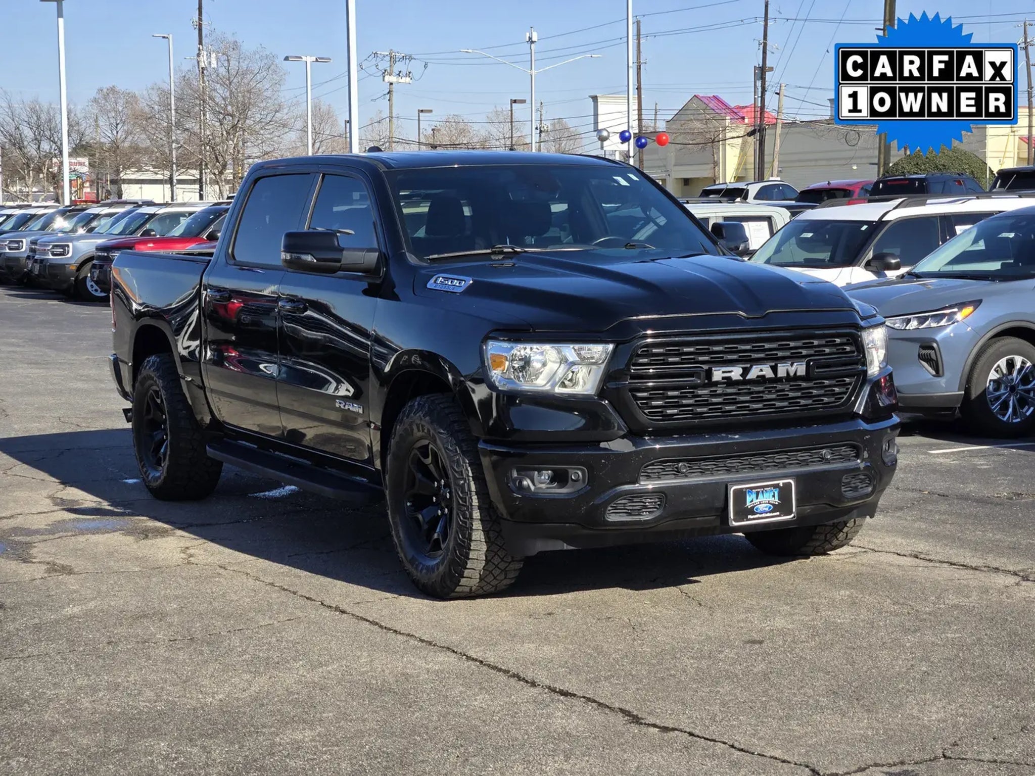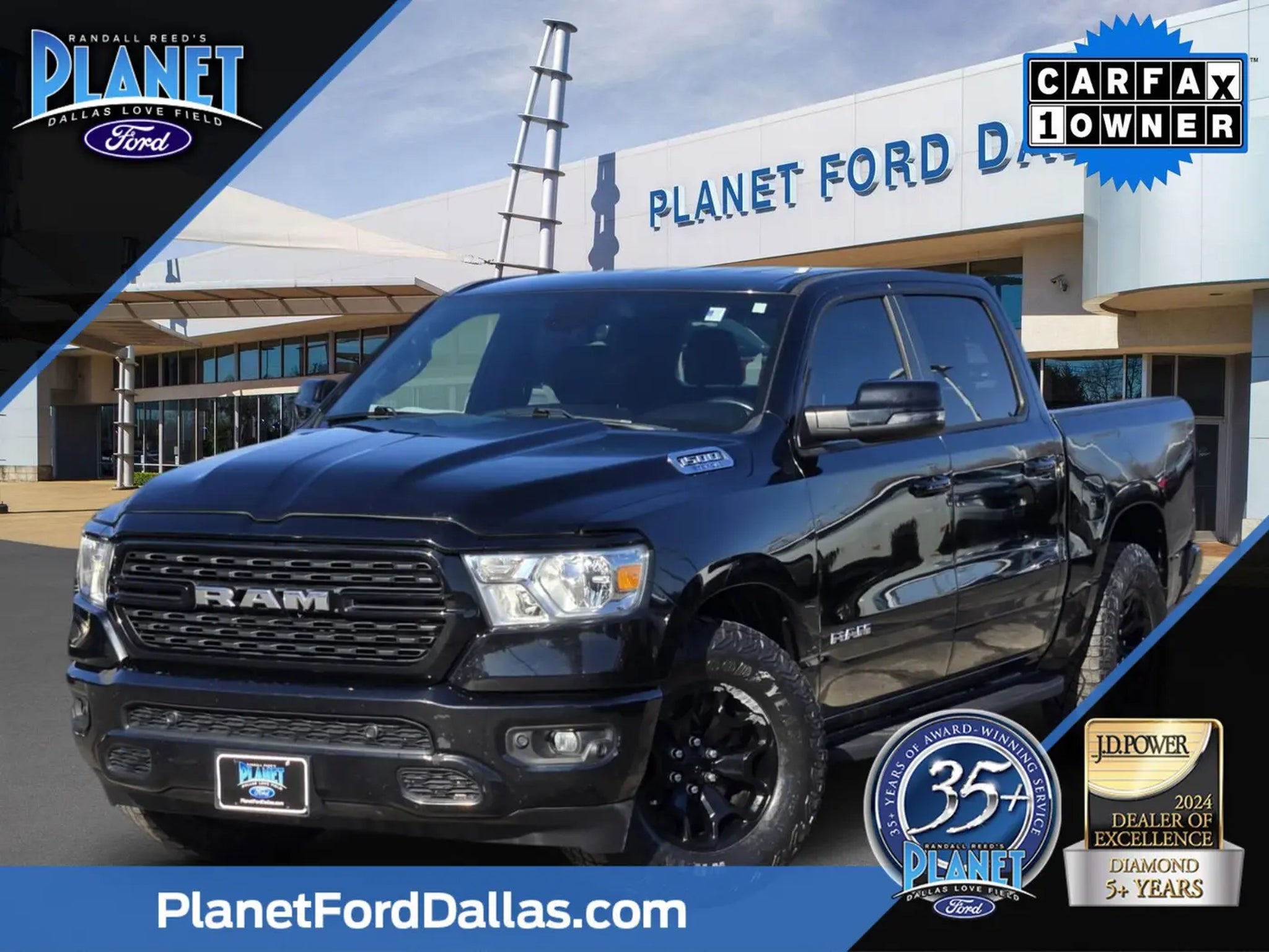 Challenge it all in our One Owner 2023 RAM 1500 Big Horn Crew Cab 4X2 that's ready to take charge of your life in Diamond Black Crystal Pearl! Motivated by a 3.6 Liter Pentastar V6 offering 305hp to an 8 Speed TorqueFlite Automatic transmission. Capable of towing and hauling without breaking a sweat, this Rear Wheel Drive truck also achieves nearly 25mpg on the highway with a fierce and functional design. Highlights include quad halogen headlamps, an LED hitch lamp, bright bumpers, chrome accents, alloy wheels, a Class III bumper hitch, and heated power mirrors.Our Big Horn cabin can bring out your best with comfortable cloth seats, a leather-wrapped steering wheel, air conditioning, a RAM clean-air system, keyless access, pushbutton ignition, cruise control, door-sill scuff plates, a 12V outlet, and convenient storage solutions. Exclusive Uconnect® technology anchors the infotainment system, which bundles voice control, a 5-inch touchscreen, and a six-speaker audio system.RAM helps inspire confidence behind the wheel with features like a rearview camera, electronic stability/traction control, tire pressure monitoring, trailer sway damping, a rear-seat reminder, hill start assistance, advanced airbags, and more. It's no wonder our RAM 1500 Big Horn is in such high demand! Save this Page and Call for Availability. We Know You Will Enjoy Your Planet Ford Dallas Test Drive Towards Ownership!