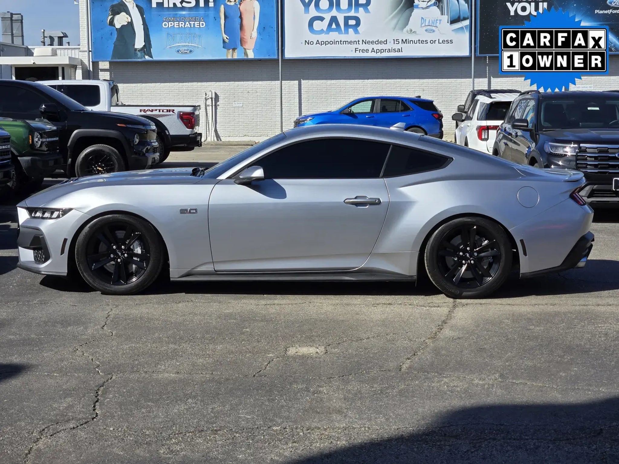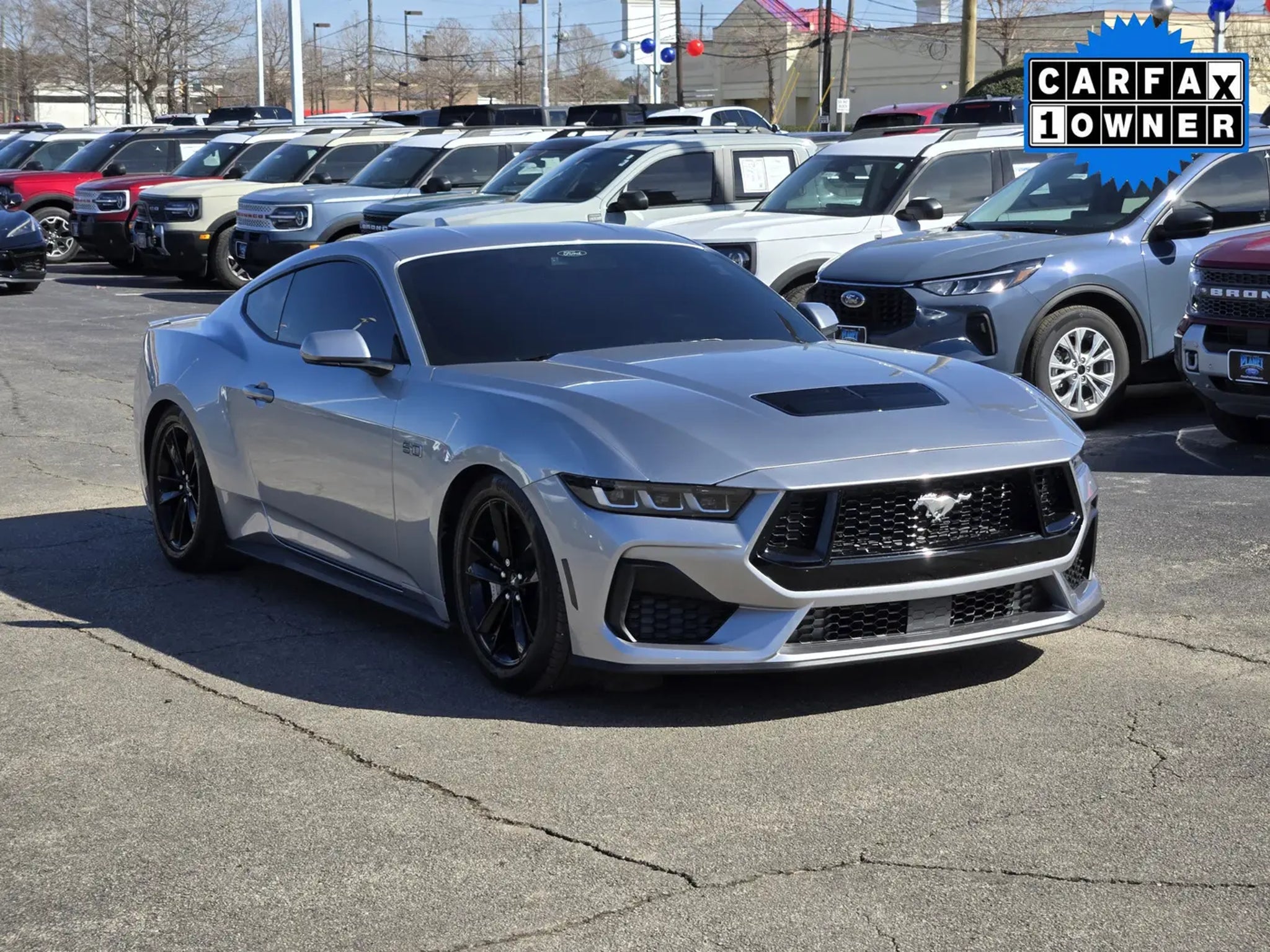 Our One Owner, Accident-Free, Low Mile 2024 Ford Mustang GT Fastback chases adrenaline in Iconic Silver Metallic! Motivated by a 5.0 Liter V8 providing 480hp to a 6 Speed Manual transmission for thrilling performance when you open up the throttle. This premium pony car also handles with aggressive athleticism, and it achieves nearly 23mpg cruising on the highway. Our amazing Mustang is a modern classic with signature LED lighting, sequential taillights, bold black alloy wheels, a wedge-type rear spoiler, and a vented hood. If you're looking to get noticed, look no further than this one!The driver-centric layout of our GT cabin commands respect with supportive cloth seats, a leather flat-bottom steering wheel, single-zone climate control, keyless access, and pushbutton ignition for quick getaways. A 12.4-inch digital instrument cluster and a 13.2-inch touchscreen are standard for fast connections with Apple CarPlay®, Android Auto®, WiFi compatibility, Bluetooth®, Track Apps, and a six-speaker sound system. Our Mustang takes on the real world with more practical trunk space than you might think!With Ford features like automatic braking, blind-spot monitoring, forward-collision warning, lane-keeping assistance, rear parking sensors, a rearview camera, tire pressure monitoring, and more, you're on track for safer travel. All that makes our Mustang GT a must-have for serious drivers! Save this Page and Call for Availability. We Know You Will Enjoy Your Planet Ford Dallas Test Drive Towards Ownership!