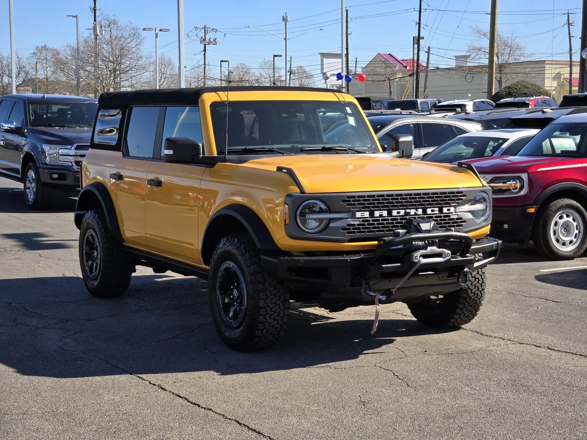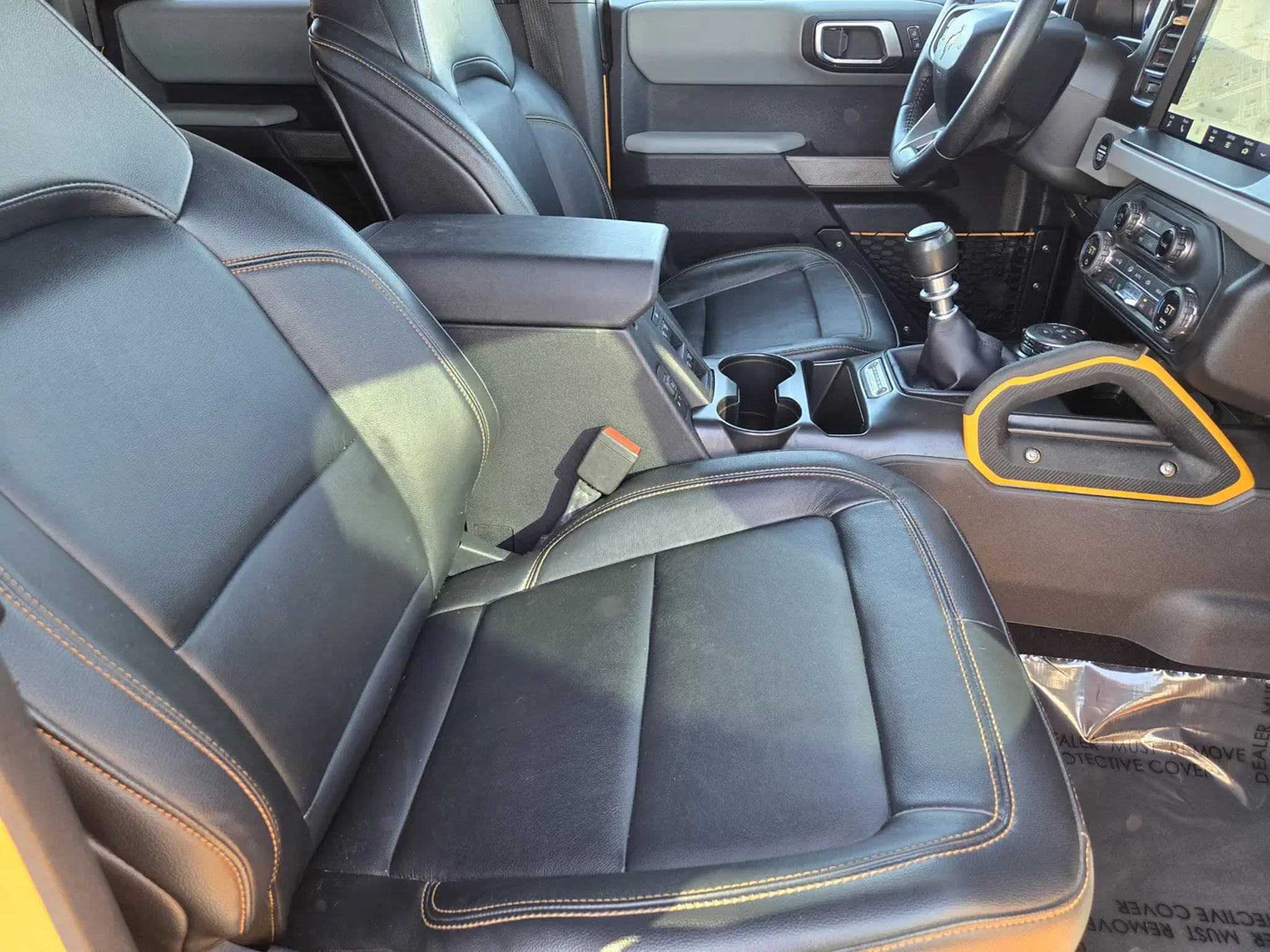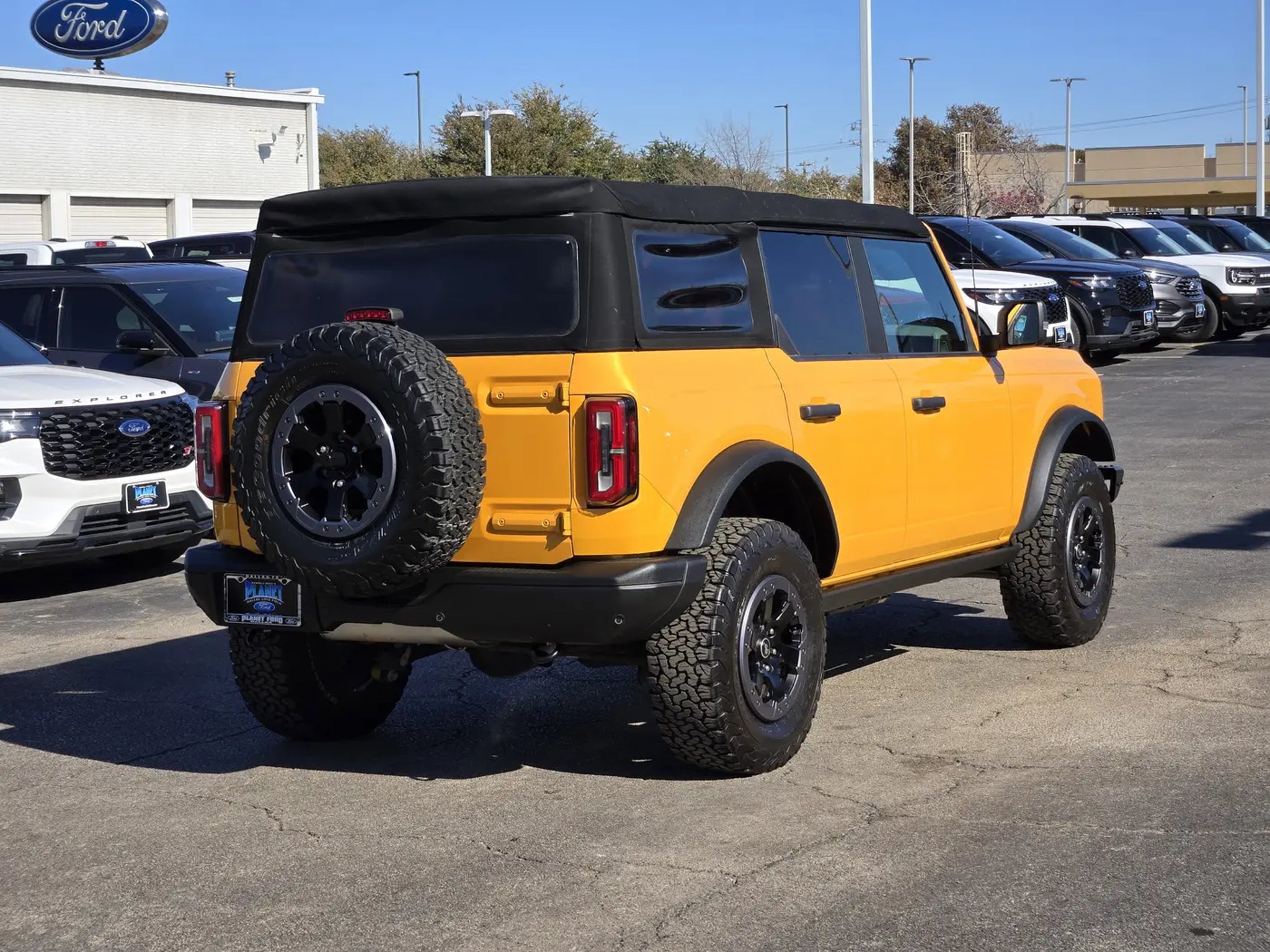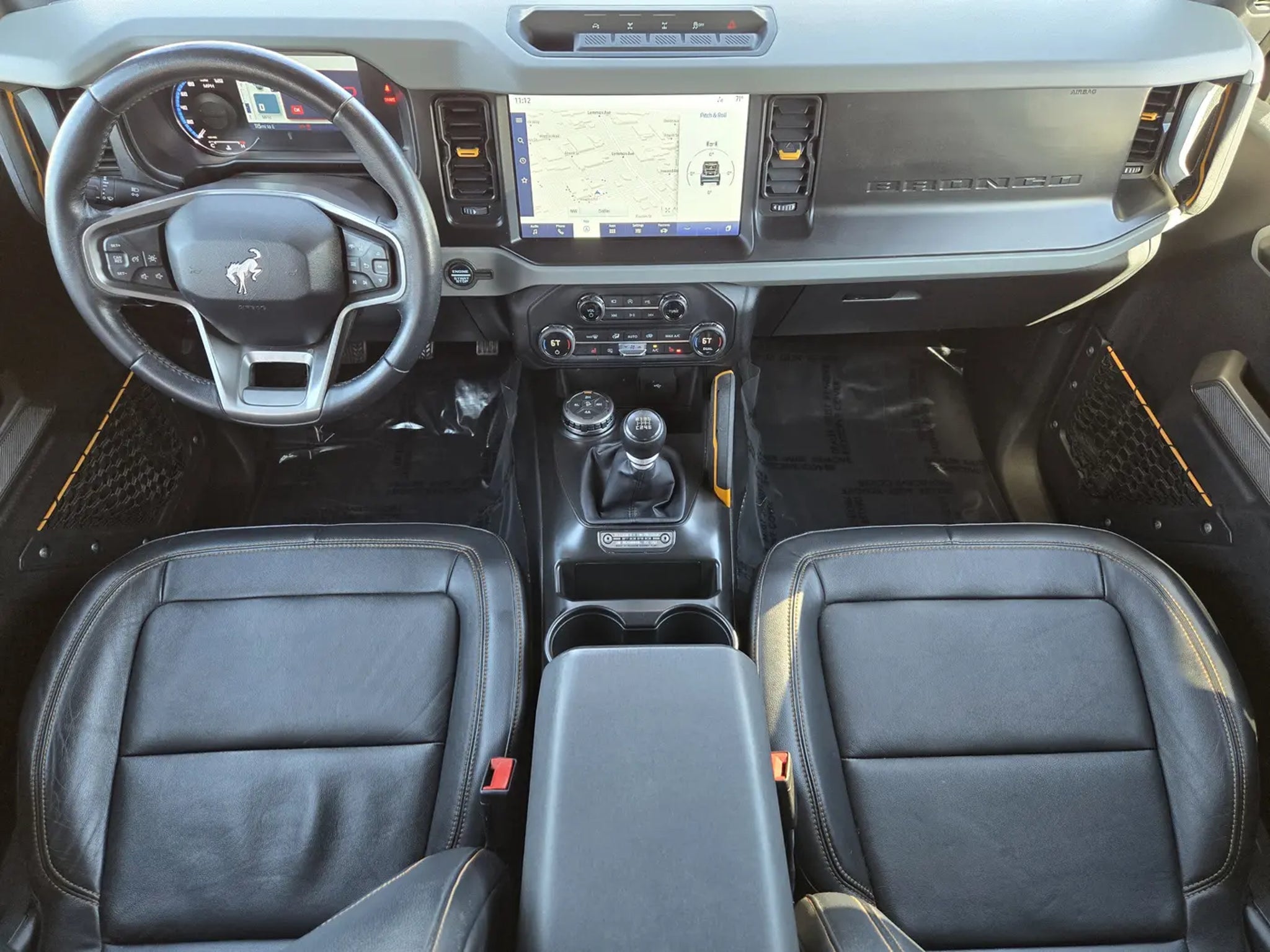Our athletic 2021 Ford Bronco Badlands 4 Door 4X4 with the High Pack is incredibly good at conquering your toughest challenges in Cyber Orange! Powered by a TurboCharged 2.3 Liter EcoBoost 4 Cylinder offering 270hp paired with a 7 Speed Manual transmission for fearless capability. This Four Wheel Drive SUV also returns nearly 18mpg on the highway and showcases remarkable off-road mastery, thanks to a seven-mode Terrain Management System with a dedicated rock-crawling mode to enhance a heavy-duty suspension, a disconnecting front sway bar, upgraded bumpers, LED lighting, fog lamps, 17-inch black wheels, and our High Pack's LED spotlights. And open-air thrills await with the easy-to-remove soft top and doors.Upgraded for comfort, our Badlands cabin boasts our High Pack with heated leather front seats, dual-zone automatic climate control, remote start, connected navigation, and a 12-inch touchscreen. That advanced display works with SYNC 4 technology to further support Android Auto®/Apple CarPlay®, WiFi compatibility, Bluetooth®, and a six-speaker sound system. You can enjoy plenty of clever cargo space, too!Ford lets you confidently explore your world with our High Pack's 360-degree camera, automatic braking, blind-spot monitor, lane-keeping assistance, parking sensors, and more. Built wild and ready for fun, our Bronco Badlands brings back a classic name with a modern twist! Save this Page and Call for Availability. We Know You Will Enjoy Your Planet Ford Dallas Test Drive Towards Ownership!