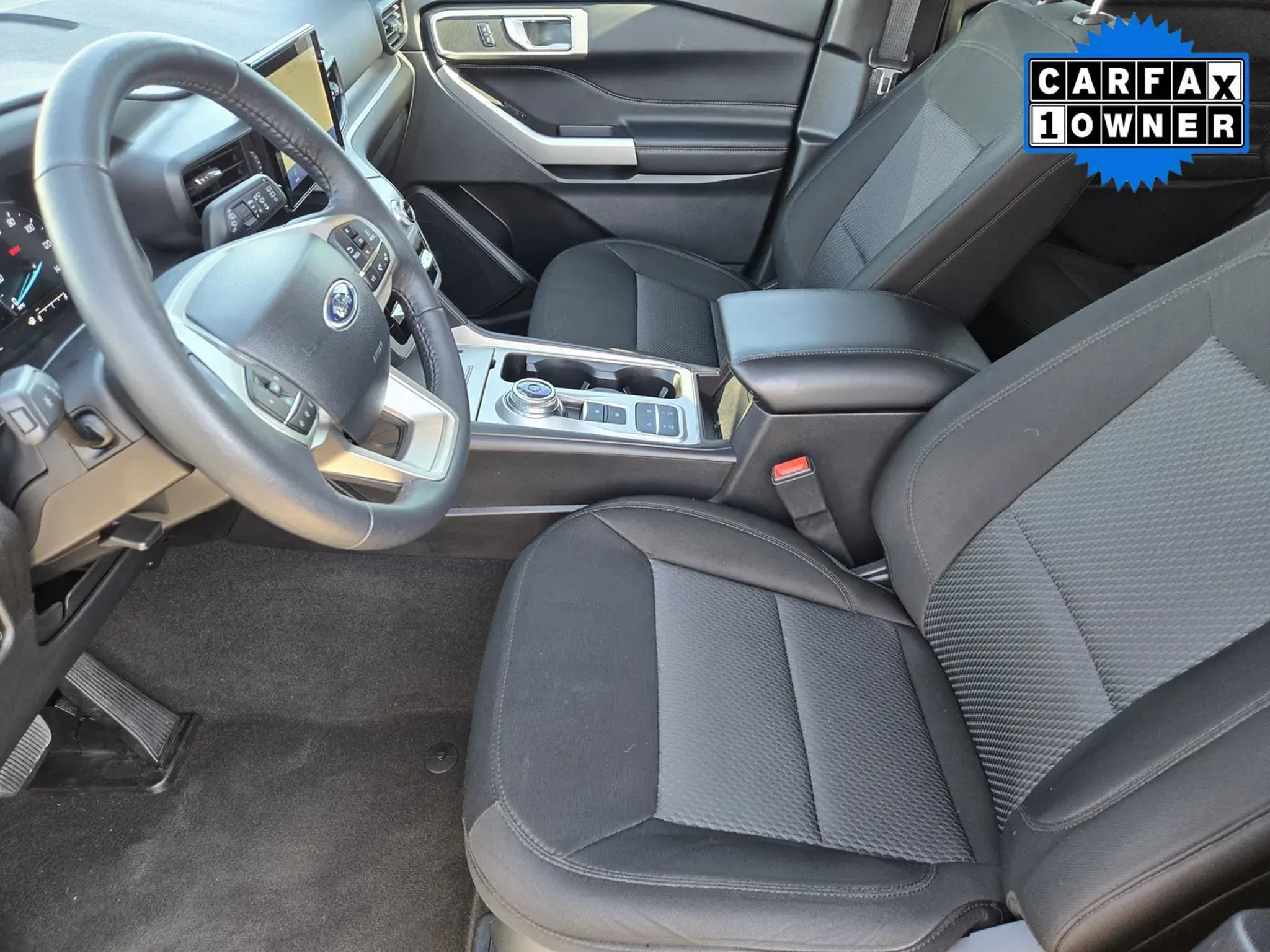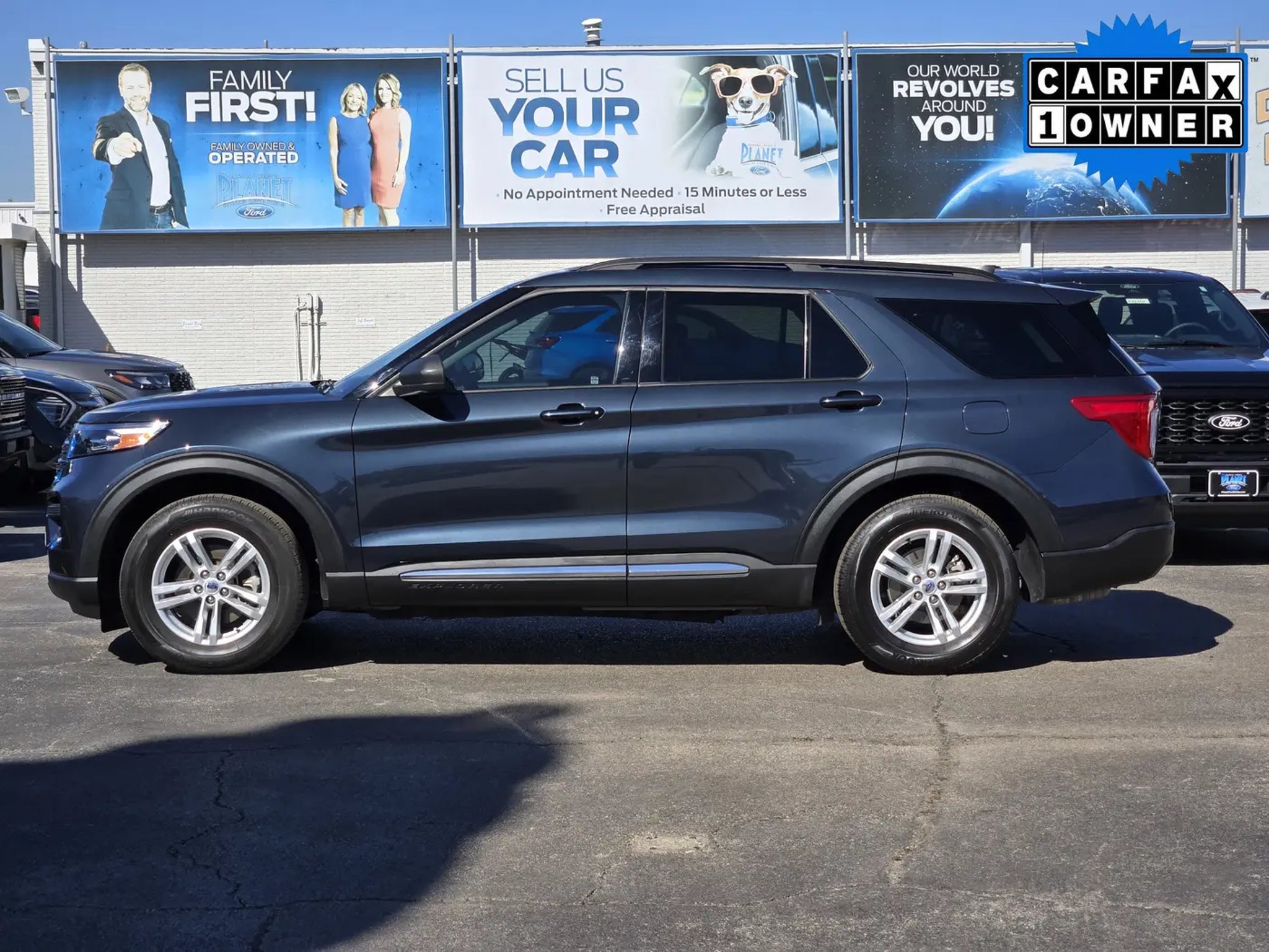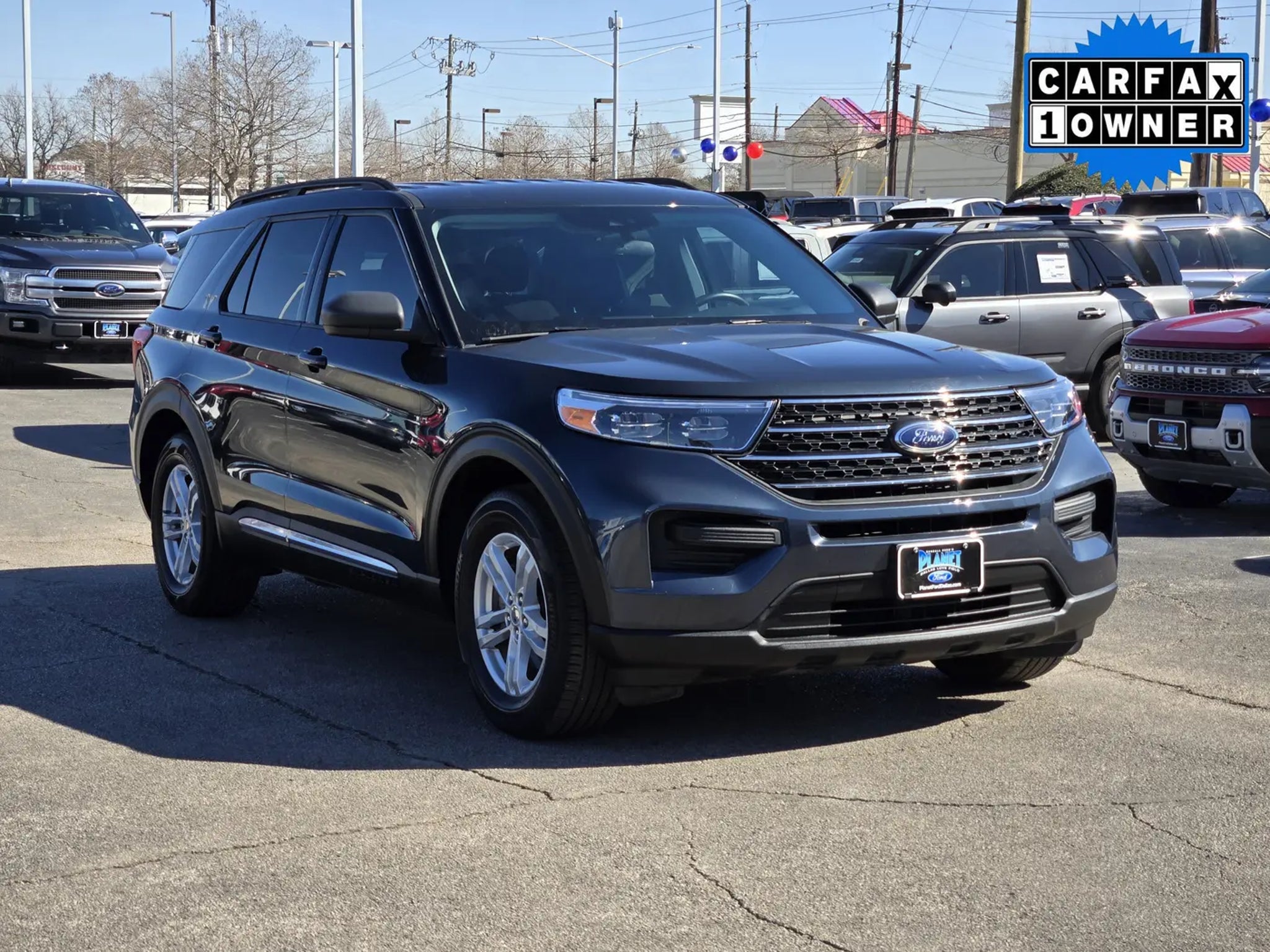 Our fantastic One Owner, Accident Free 2024 Ford Explorer XLT can free you from ordinary driving in Stone Blue Metallic! Powered by a TurboCharged 2.3 Liter EcoBoost 4 Cylinder offering 300hp matched to a 10 Speed Automatic transmission engineered for excellent performance. A robust suspension is standard for dealing with rugged conditions, and this Rear Wheel Drive SUV sees nearly 28mpg on the highway. Also rugged-looking, our Explorer arrives in bold style with signature LED lighting, a power liftgate, roof rails, a rear-bumper step pad, black cladding, chrome accents, and 18-inch 5-spoke painted alloy wheels.Family-focused benefits in our XLT cabin include heated cloth power front seats, second-row captain's chairs, a flexible third row, a leather-wrapped steering wheel, tri-zone automatic temperature control, keyless access/ignition, and multiple 12V power outlets. Exclusive SYNC technology powers the infotainment system with a 10.1-inch touchscreen, a 6.5-inch driver display, WiFi compatibility, Apple CarPlay®, Android Auto®, Bluetooth®, and a six-speaker sound system. Ample cargo space makes it easy to pack up and go!Enjoy a safer approach to family travel with smart Ford technologies like automatic braking, forward collision warning, blind-spot monitoring, a rearview camera, lane-keeping assistance, rear parking sensors, and more. Our Explorer XLT lets you live life to the fullest with features like those! Save this Page and Call for Availability. We Know You Will Enjoy Your Planet Ford Dallas Test Drive Towards Ownership!