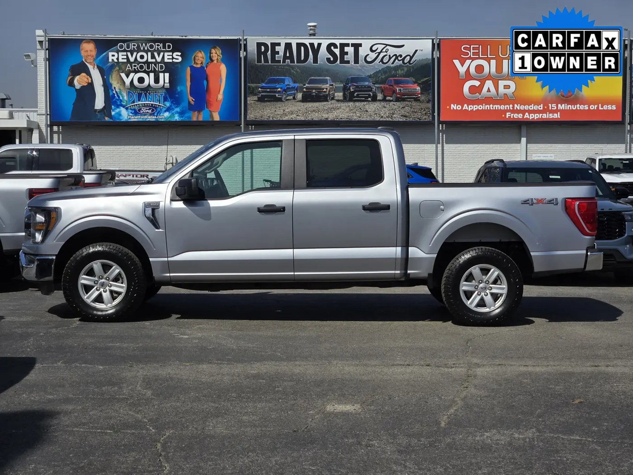 Big and bold in Iconic Silver Metallic, our Certified, Accident-Free 2023 Ford F-150 XLT SuperCrew 4X4 is ready to work hard for you! Powered by a Twin-TurboCharged 3.5 Liter EcoBoost V6 serving up 400hp connected to a 10 Speed Automatic transmission so you can get more done with less effort. This Four Wheel Drive truck is also easy to maneuver at work or play, and it sees nearly 23mpg on the highway. Rugged good looks are standard with our F-150, which showcases halogen headlamps, fog lamps, chrome bumpers, 17-inch silver-painted alloy wheels, and heated power mirrors.Take command of your day in our XLT cabin that offers supportive cloth seats, an 8-way power driver seat, a tilt/telescoping steering wheel, air conditioning, power accessories, cruise control, a 4-inch productivity screen, a 12V powerpoint, and intelligent connectivity. SYNC technology is the starting point and works with an 8-inch touchscreen, voice control, Apple CarPlay®/Android Auto®, WiFi compatibility, Bluetooth®, and an AM/FM stereo for rewarding digital benefits. This superior interior has plenty of versatile storage, too!Ford inspires confidence with sophisticated safety from lane-keeping assistance, automatic emergency braking, blind spot monitoring, forward collision warning, a rearview camera, dynamic hitch assistance, hill-start assistance, Safety Canopy airbags, and more. Now find out for yourself why our F-150 XLT is so popular! Save this Page and Call for Availability. We Know You Will Enjoy Your Planet Ford Dallas Test Drive Towards Ownership!