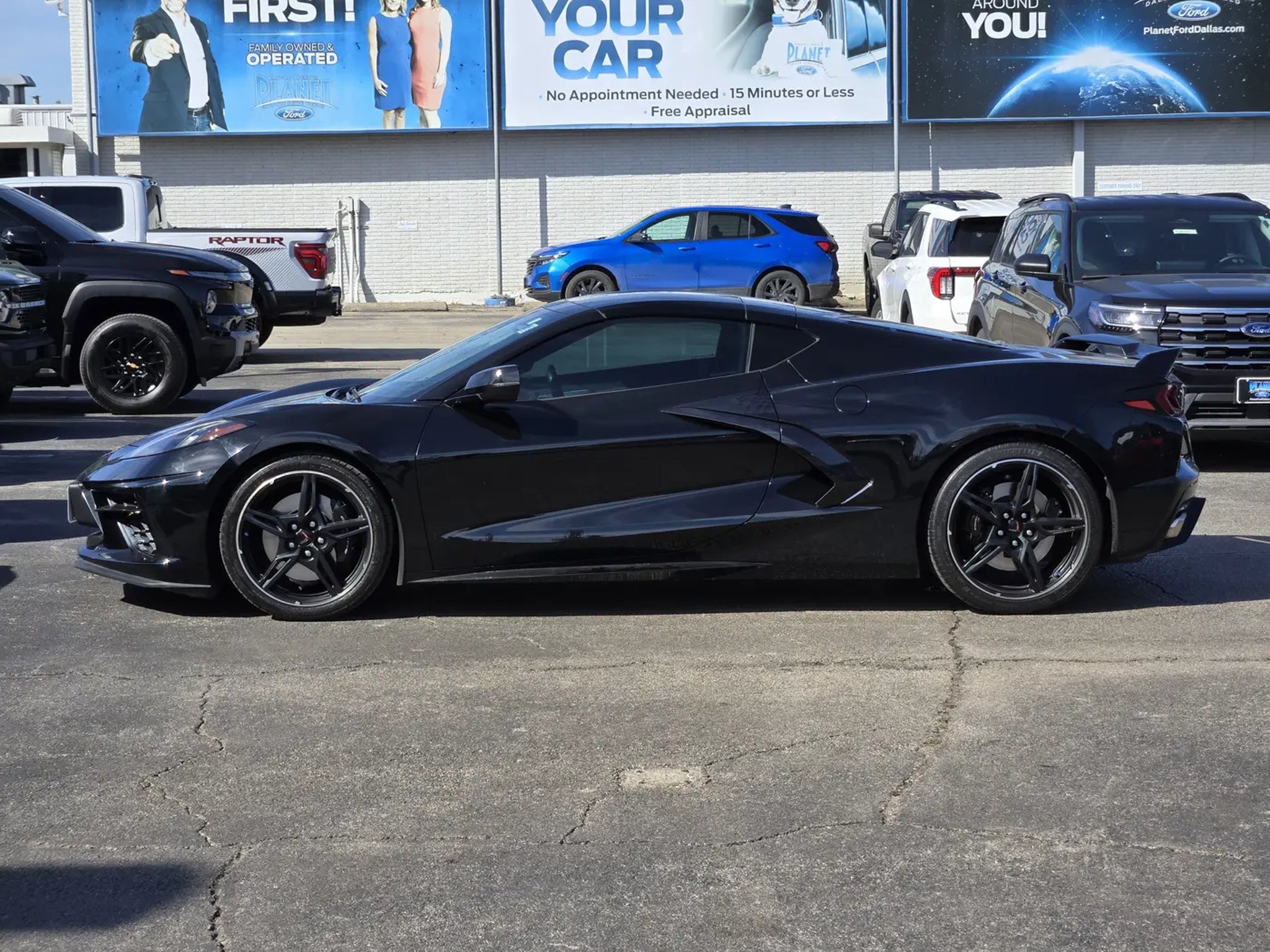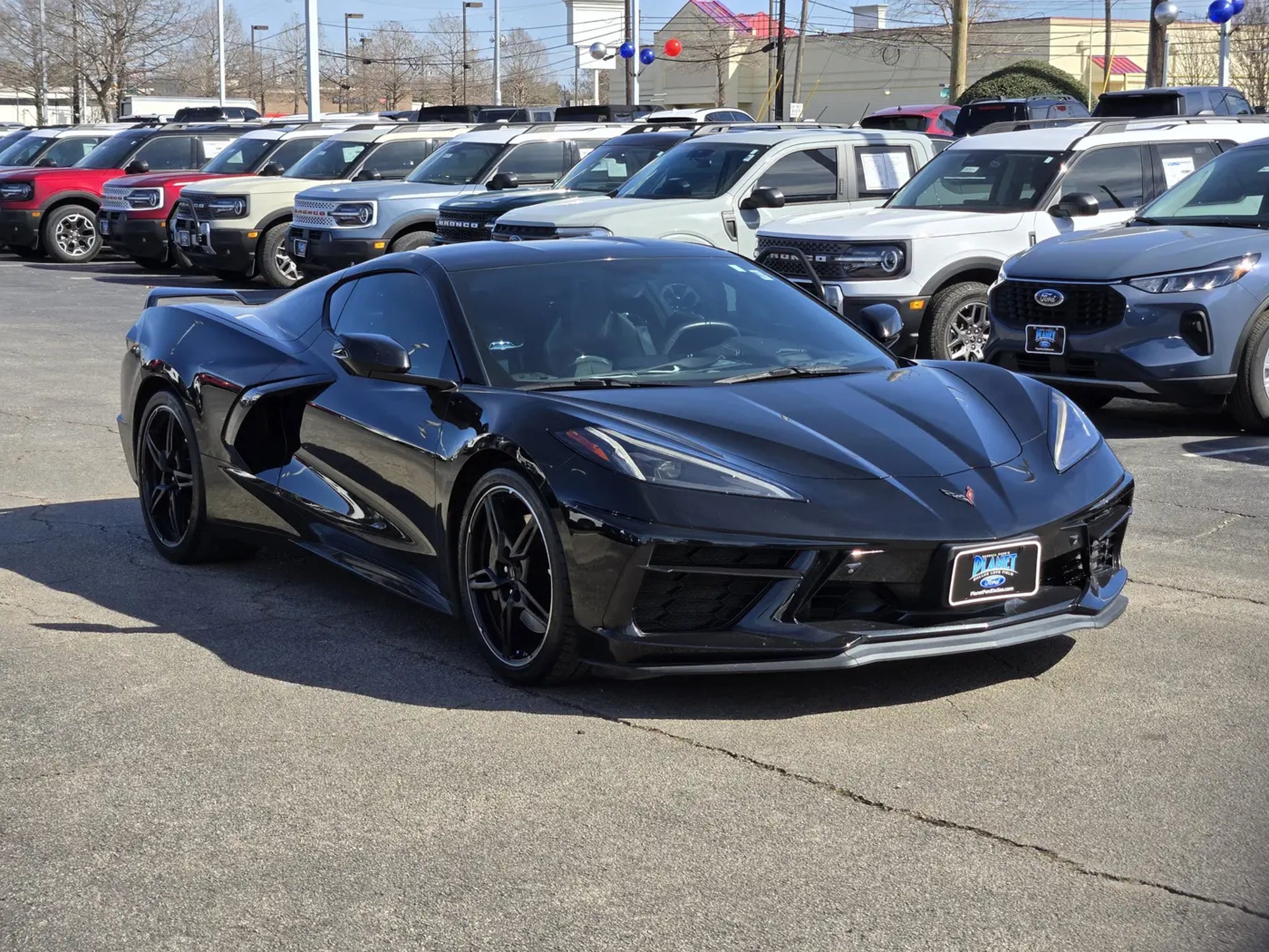 You've dreamed about our upscale 2021 Chevrolet Corvette Stingray 3LT Coupe, now drive it for yourself in Black! Motivated by a 6.2 Liter V8 supplying 490hp connected to a paddle-shifted 8 Speed Dual-Clutch Automatic transmission that puts performance first. This coupe combines blistering acceleration backed by Brembo brakes, and it yearns to run free on the twistiest back roads you can find. You can see nearly 27mpg on the highway, too, all in a mid-engined supercar that looks nothing short of fantastic with its LED lighting, alloy wheels, Carbon Flash accents, quad-tipped exhaust, and a removable roof panel for incredible open-air thrills.Stay calm and cool even on your hottest laps in our Stingray 3LT's cabin thanks to Nappa leather heated/ventilated GT2 competition-style seats, a racing-style heated leather steering wheel, dual-zone automatic climate control, and high-tech features to master your world the way our Corvette masters the road. The 12-inch driver display, 8-inch touchscreen, full-color navigation, wireless Android Auto®/Apple CarPlay®, WiFi compatibility, Bluetooth®, wireless charging, a head-up display, and Bose audio are just a few of our favorite highlights.Stay out of harm's way with Chevrolet's front/rear cameras, side blind-zone alert, rear cross-traffic alert, rear parking sensors, and more. Carry on the Corvette legacy in this stunning Stingray 3LT! Save this Page and Call for Availability. We Know You Will Enjoy Your Planet Ford Dallas Test Drive Towards Ownership!