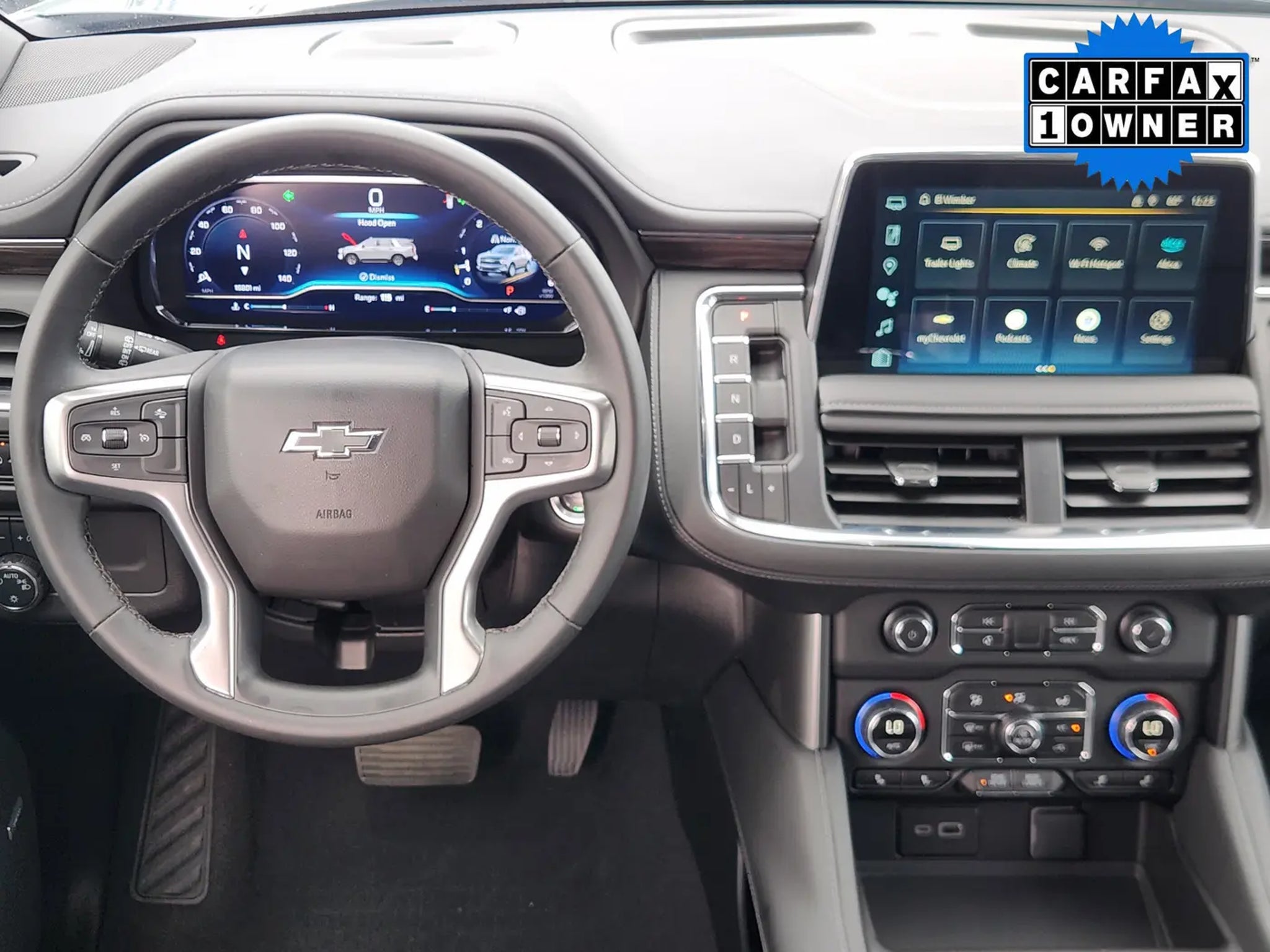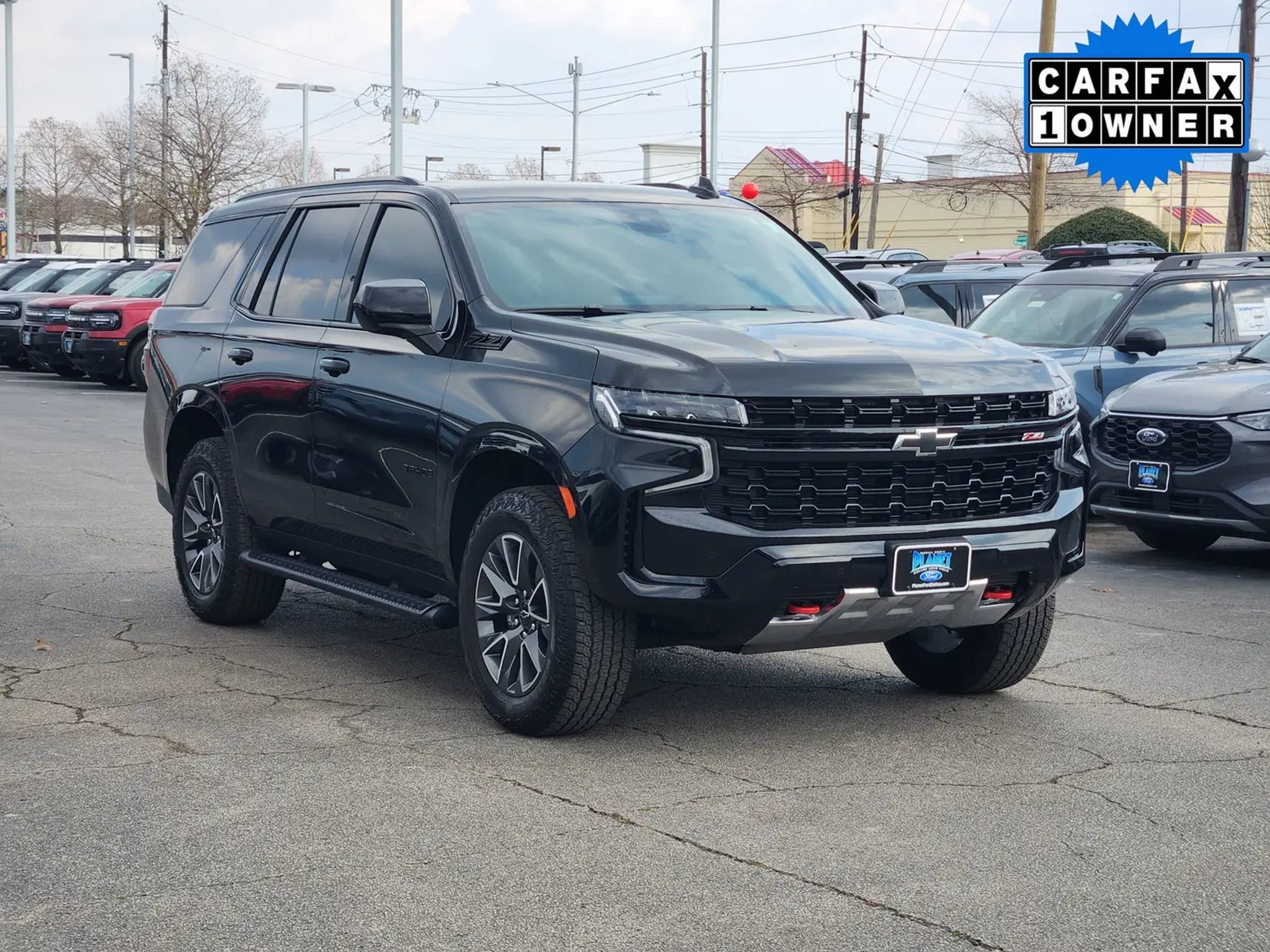 Families love our One Owner, Accident-Free, Low Mile 2024 Chevrolet Tahoe Z71 4WD in Black when they want a little extra capability for going farther! Motivated by a 5.3 Liter V8 delivering 355hp to a 10 Speed Automatic transmission. A 2-speed transfer case and hill-descent control are standard for staying on the move over difficult terrain, and this Four Wheel Drive SUV sees nearly 19mpg on the highway. Our Tahoe's bold exterior shows off LED lighting, black roof rails/assist steps, a performance front skid plate, red recovery hooks, an off-road front bumper, 20-inch wheels, and a hands-free liftgate.Our Z71 cabin has room for eight, ample cargo space, and comfortable amenities like heated leather power front seats, convenient second and third rows, a wrapped steering wheel, tri-zone automatic climate control, cruise control, keyless access/ignition, and remote start. Top Tahoe technologies include a 12-inch driver display, a 10.2-inch touchscreen, connected navigation, WiFi compatibility, wireless Android Auto®/Apple CarPlay®, Bose audio, wireless charging, voice control, and Bluetooth®.Chevrolet helps safeguard your journeys with automatic braking, forward-collision warning, an HD rearview camera, lane-keeping assistance, parking sensors, hitch guidance, trailer sway control, hill start assistance, and other intelligent features. Designed to dominate, our Tahoe Z71 delivers the goods! Save this Page and Call for Availability. We Know You Will Enjoy Your Planet Ford Dallas Test Drive Towards Ownership!