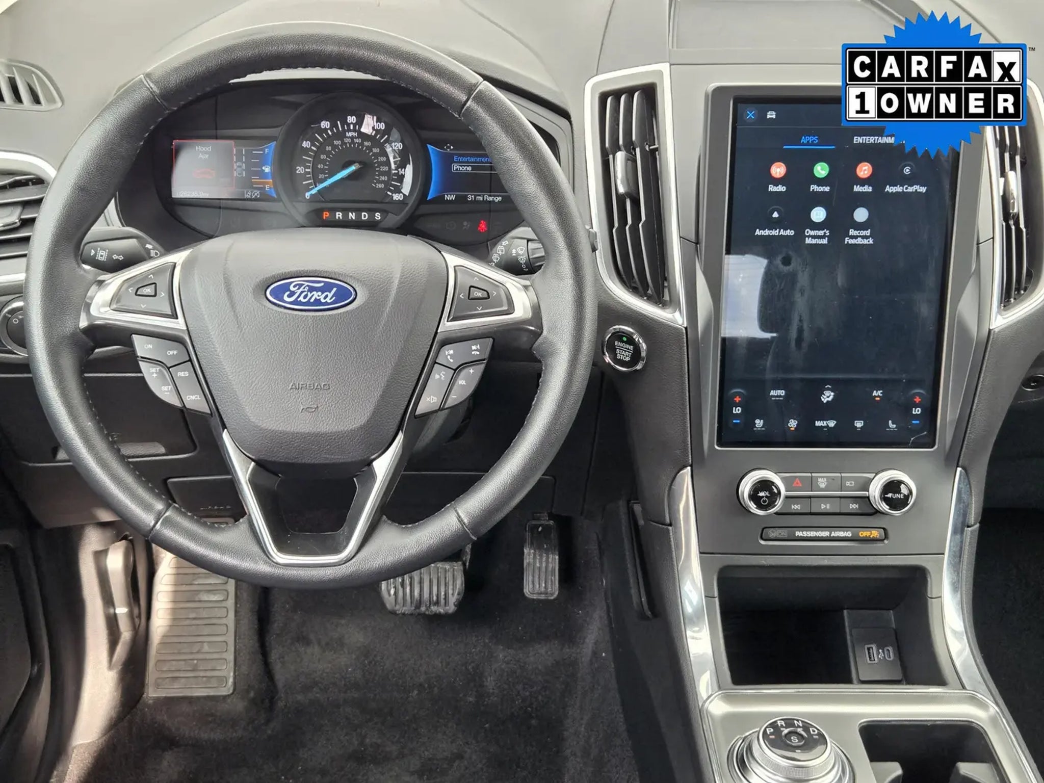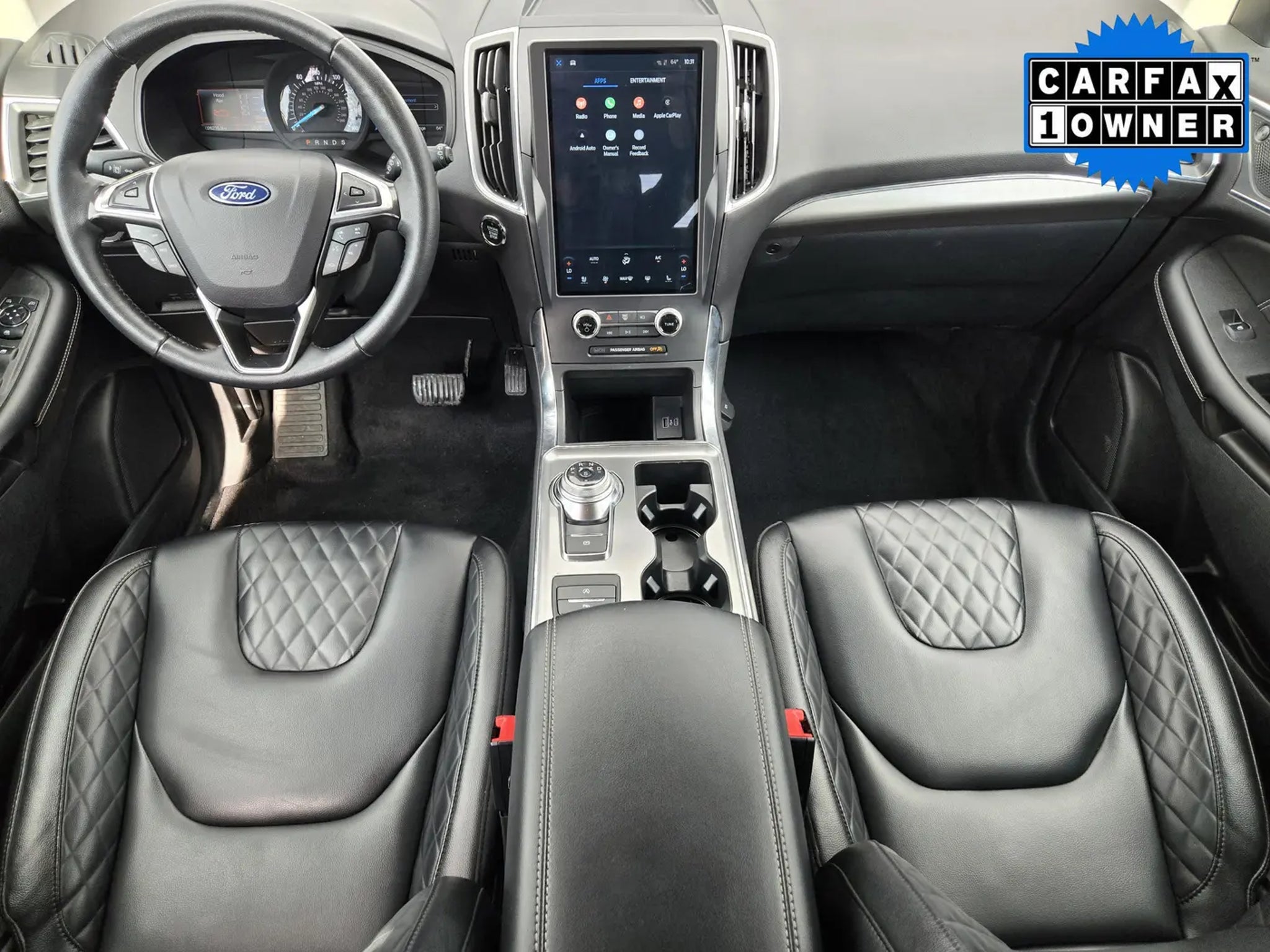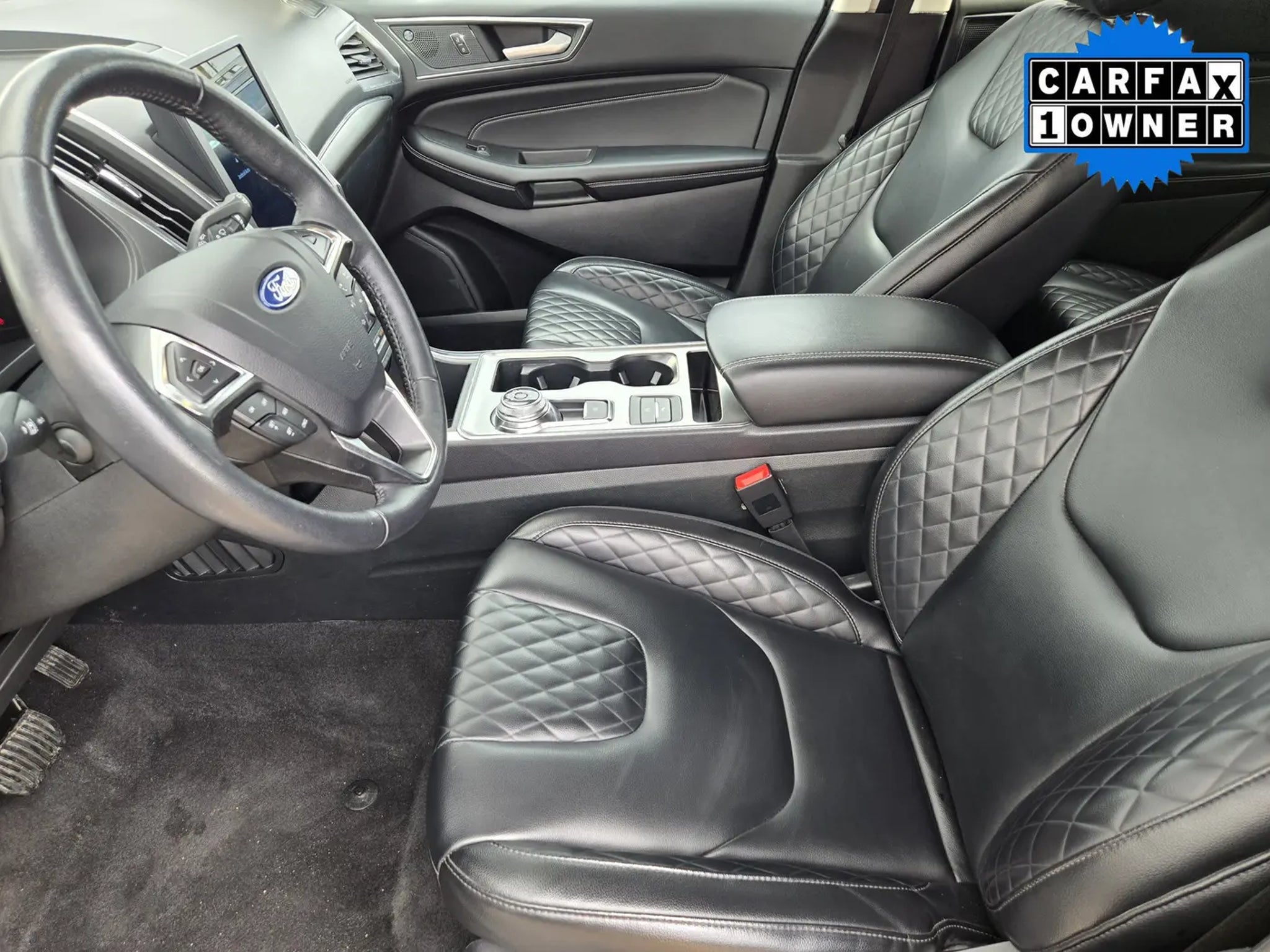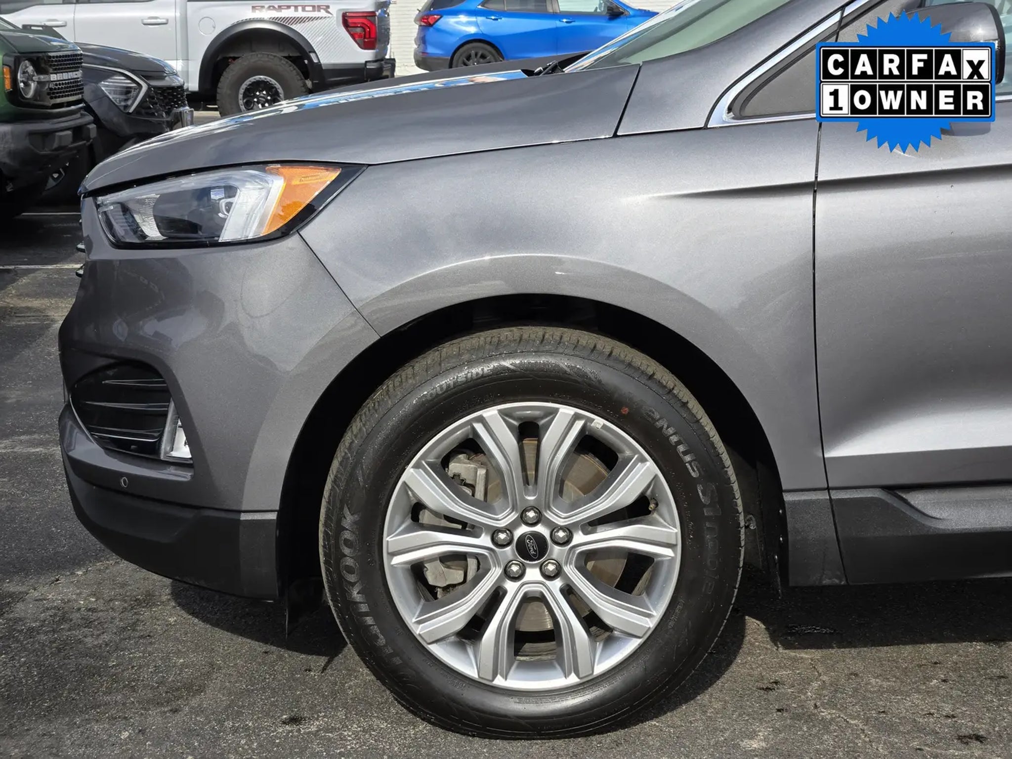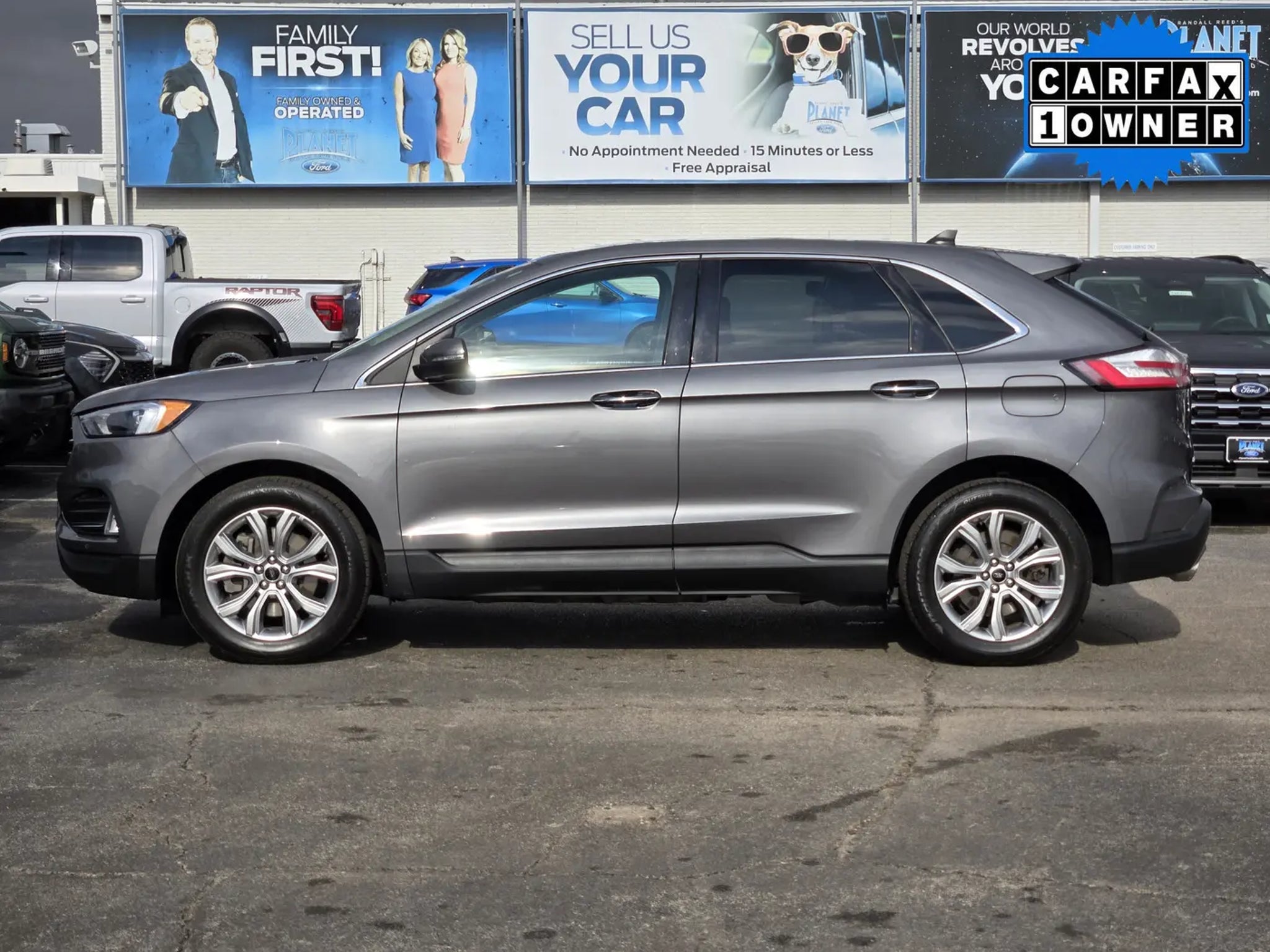 You'll love our One Owner 2024 Ford Edge Titanium AWD that shows off style and luxury in Carbonized Gray Metallic! Powered by a TurboCharged 2.0 Liter EcoBoost 4 Cylinder supplying 250hp to an 8 Speed Automatic transmission with a sophisticated rotary gear selector. Composed handling helps you keep comfortably on the move, and this All Wheel Drive SUV returns nearly 28mpg on the highway. Bold Edge design comes into the picture with LED signature lighting, fog lamps, a hands-free liftgate, bright-tipped integrated exhaust outlets, a chrome grille, a rear spoiler, and eye-catching 20-inch alloy wheels.Our Titanium cabin is impressive, featuring heated ActiveX power front sport seats, a heated leather steering wheel, dual-zone automatic climate control, remote start, keyless access, pushbutton ignition, and a handy 110V/150W power outlet. Leading Edge technologies include a 12-inch touchscreen, dual 4.2-inch driver displays, Android Auto®, Apple CarPlay®, WiFi compatibility, Bluetooth®, wireless charging, voice control, and a Bang & Olufsen surround-sound audio system.Rest assured that Ford surrounds you with safety by supplying automatic braking, blind-spot monitoring, a rearview camera, lane-keeping assistance, tire-pressure monitoring, rear cross-traffic alert, hill-start assistance, and more. Own our Edge Titanium, and cut through the crowd in style! Save this Page and Call for Availability. We Know You Will Enjoy Your Planet Ford Dallas Test Drive Towards Ownership!