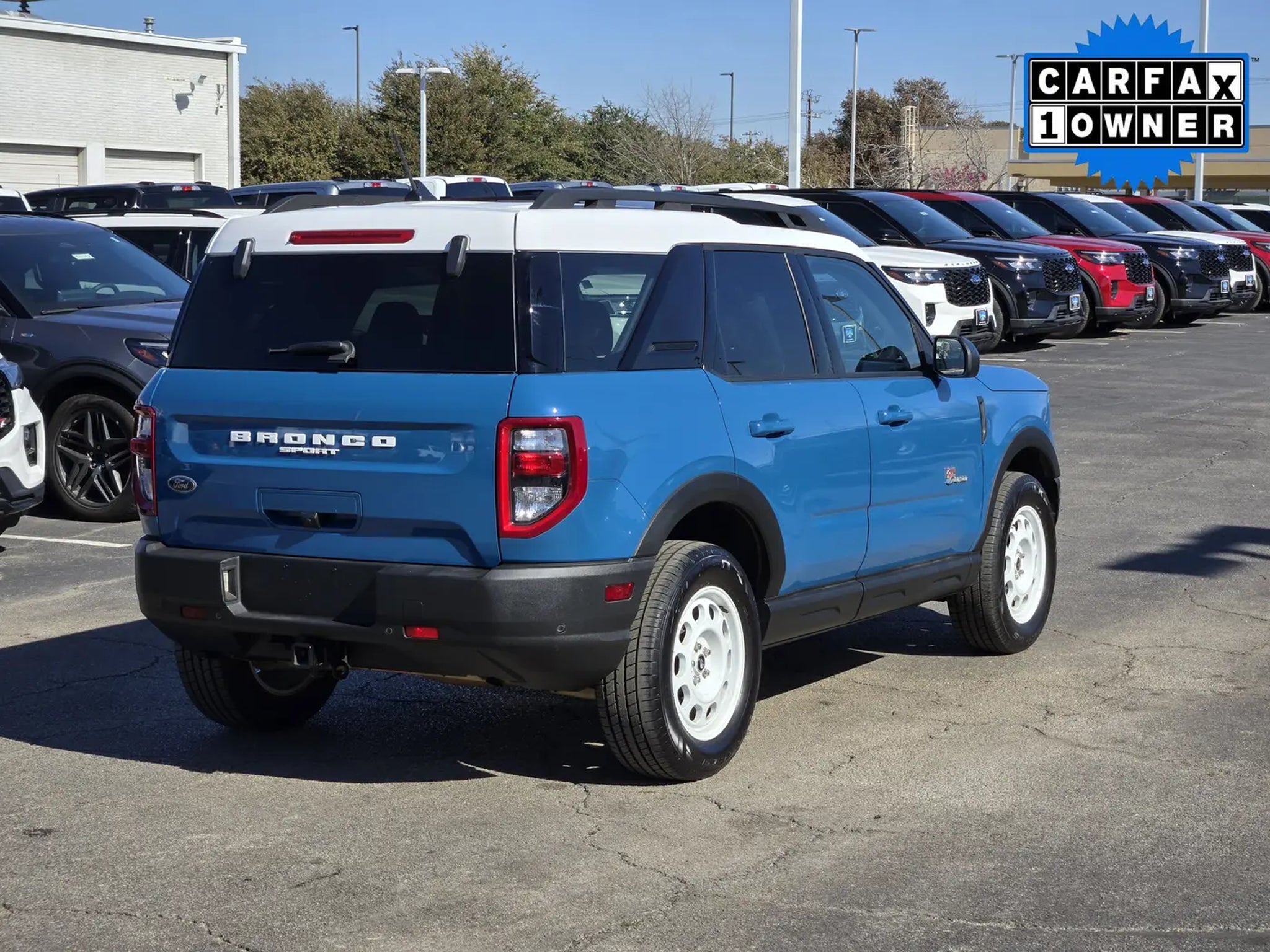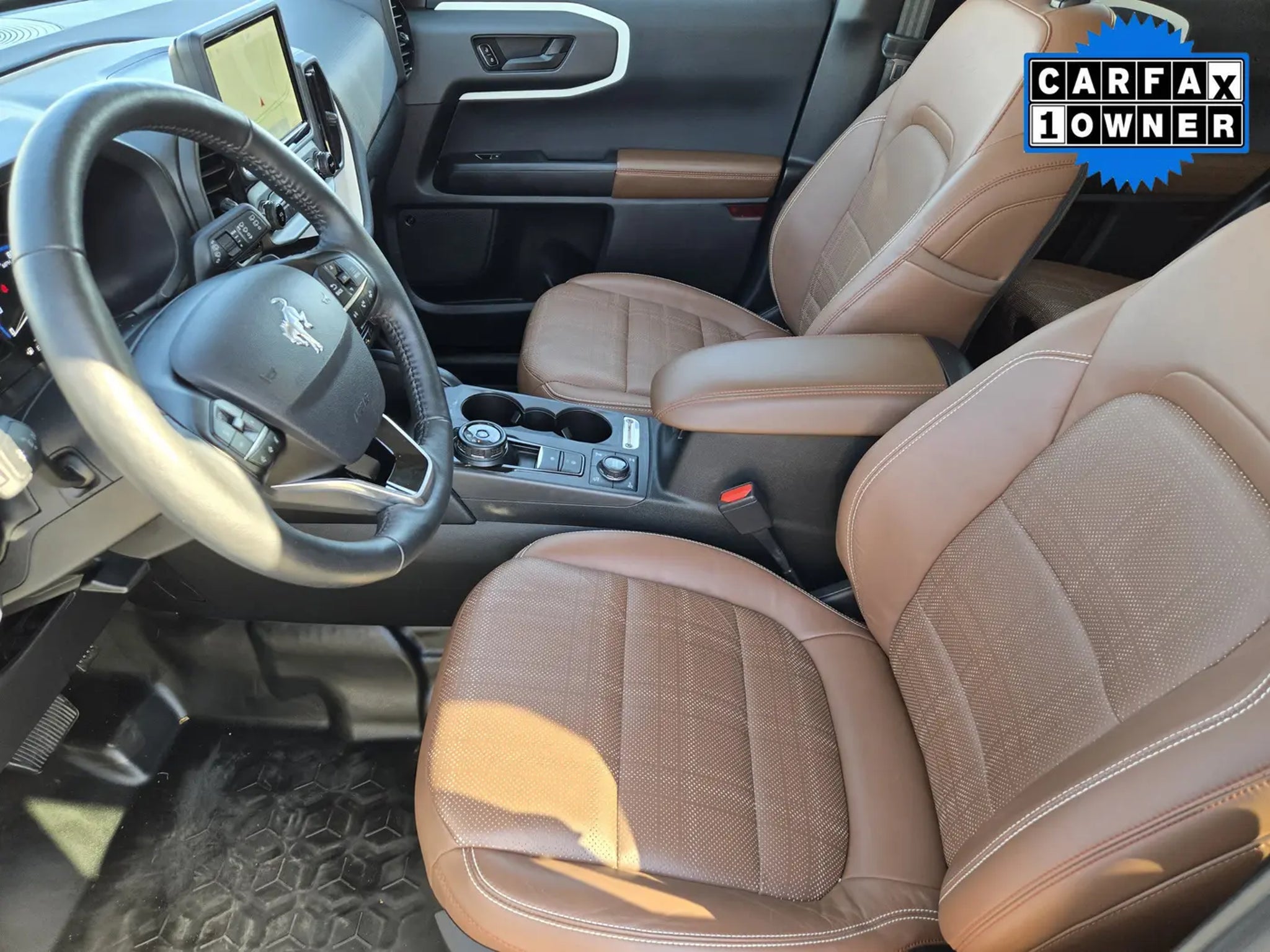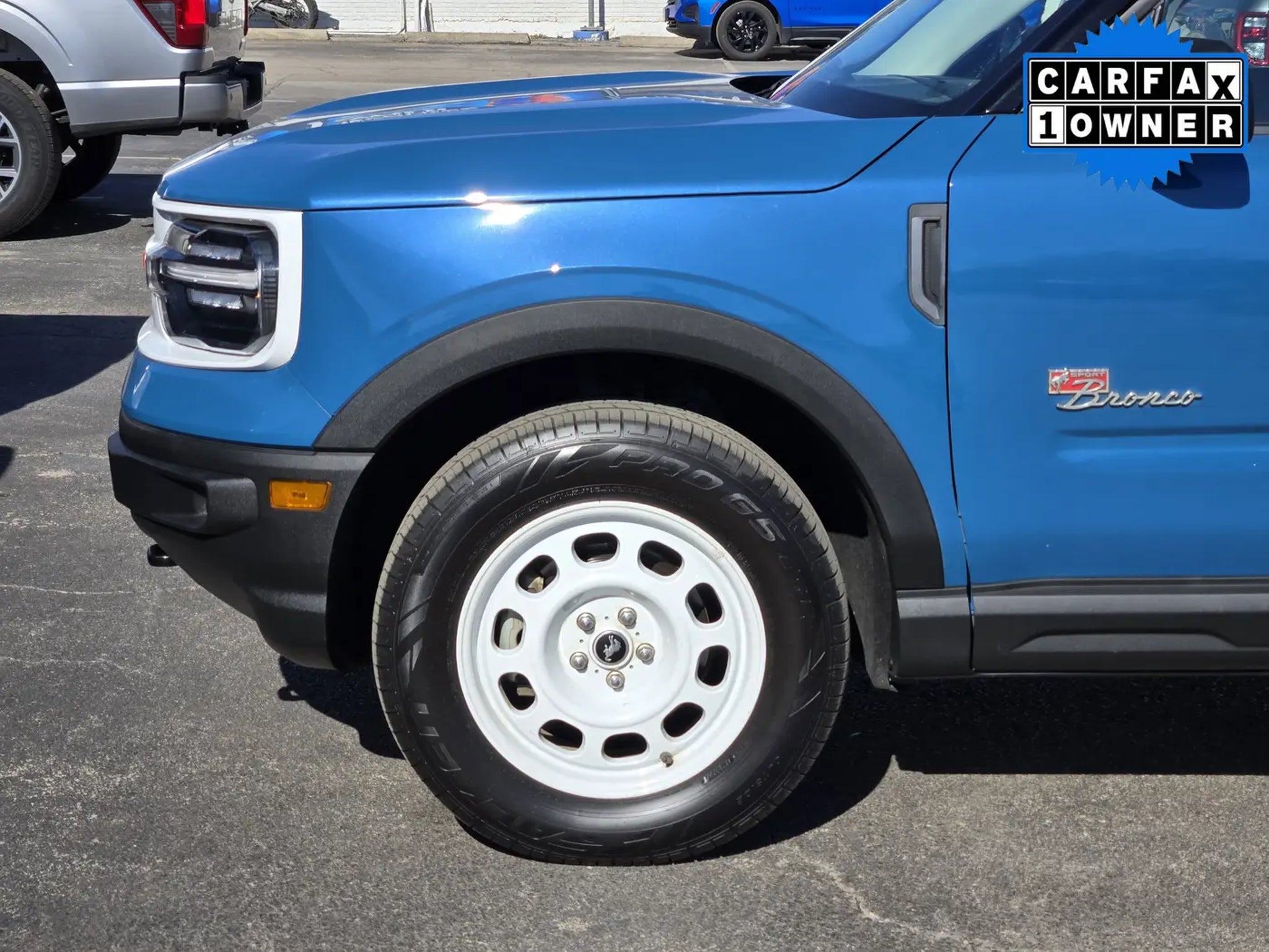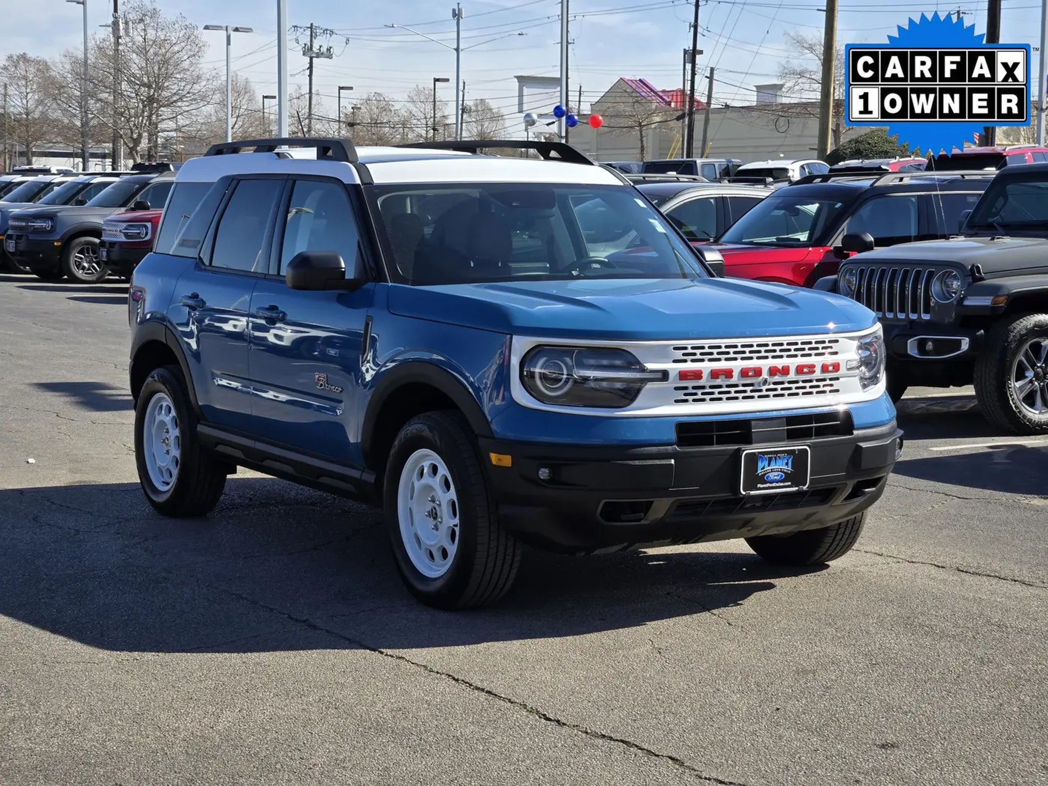 Honoring the original, our One Owner, Accident-Free 2023 Ford Bronco Sport Heritage Limited 4X4 blends retro style and rugged capability in Peak Blue! Powered by a TurboCharged 2.0 Liter EcoBoost 4 Cylinder offering 250hp to an 8 Speed Automatic transmission for high-strength performance. You can also use terrain management and an off-road suspension to separate yourself from the pack when you leave the pavement, and our Four Wheel Drive SUV sees nearly 26mpg on the highway. Dramatic design elements include a safari-style white roof, a power sunroof, red grille lettering, LED lighting, fog lamps, a script Bronco badge, metal bash plates, front tow hooks, and bold 17-inch Oxford White alloy wheels.Old-school appearance cues and modern comfort come together in our Heritage Limited cabin with heated leather/vinyl power front seats with plaid inserts, a heated leather steering wheel, dual-zone, keyless access/ignition, and app-based remote start. High-tech infotainment like an 8-inch touchscreen, full-color navigation, wireless charging, WiFi compatibility, enhanced voice recognition, Android Auto®, Apple CarPlay®, Bluetooth®, and B&O audio help you stay connected as you move through your world.Ford helps you stay out of harm's way with a backup camera, automatic emergency braking, a blind-spot monitor, lane-keeping assistance, and more. Now gear up and get out there in our Bronco Sport Heritage Limited today! Save this Page and Call for Availability. We Know You Will Enjoy Your Planet Ford Dallas Test Drive Towards Ownership!