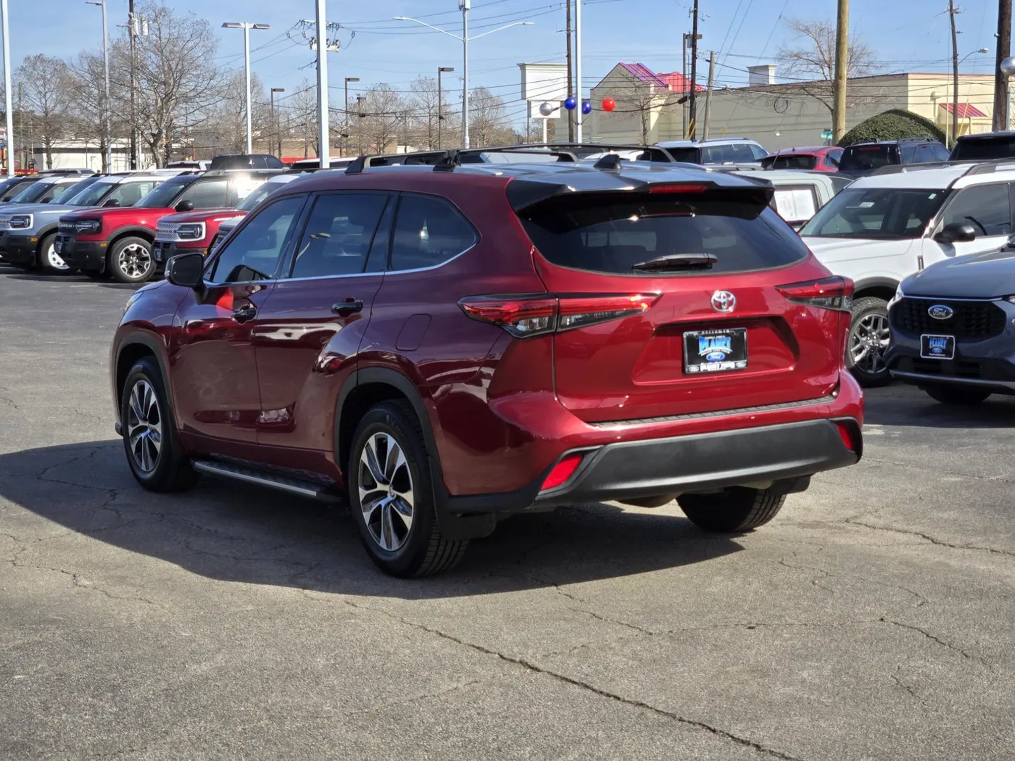 Our family friendly 2022 Toyota Highlander XLE is built for adventure in a stylish Ruby Flare Pearl! Motivated by a 3.5 Liter V6 that offers 295hp tethered to an 8 Speed Automatic transmission. Power like that is a major plus for our Front Wheel Drive SUV, which also scores nearly 29mpg on the highway with a strong and stylish design. Our Highlander has LED lighting, fog lamps, heated power mirrors, a power sunroof, a power liftgate, and 18-inch alloy wheels to make a bold impression.Climb inside our XLE cabin that's at your service with room for seven, thanks to heated SofTex® power front seats, second-row captain's chairs, a leather-wrapped steering wheel, tri-zone automatic climate control, and soft-touch surfaces for sophisticated comfort. Well-connected, our Highlander meets your needs for mobile communications with an 8-inch touchscreen, Android Auto®, Apple CarPlay®, Bluetooth®, WiFi compatibility, Amazon Alexa compatibility, wireless charging, voice recognition, and six-speaker audio.Toyota Safety Sense technology helps take care of you with automatic braking, lane-keeping assistance, adaptive cruise control, a rearview camera, blind-spot monitoring, and more. Our Highlander XLE aims to be outstanding and has no trouble hitting the target! Save this Page and Call for Availability. We Know You Will Enjoy Your Planet Ford Dallas Test Drive Towards Ownership!