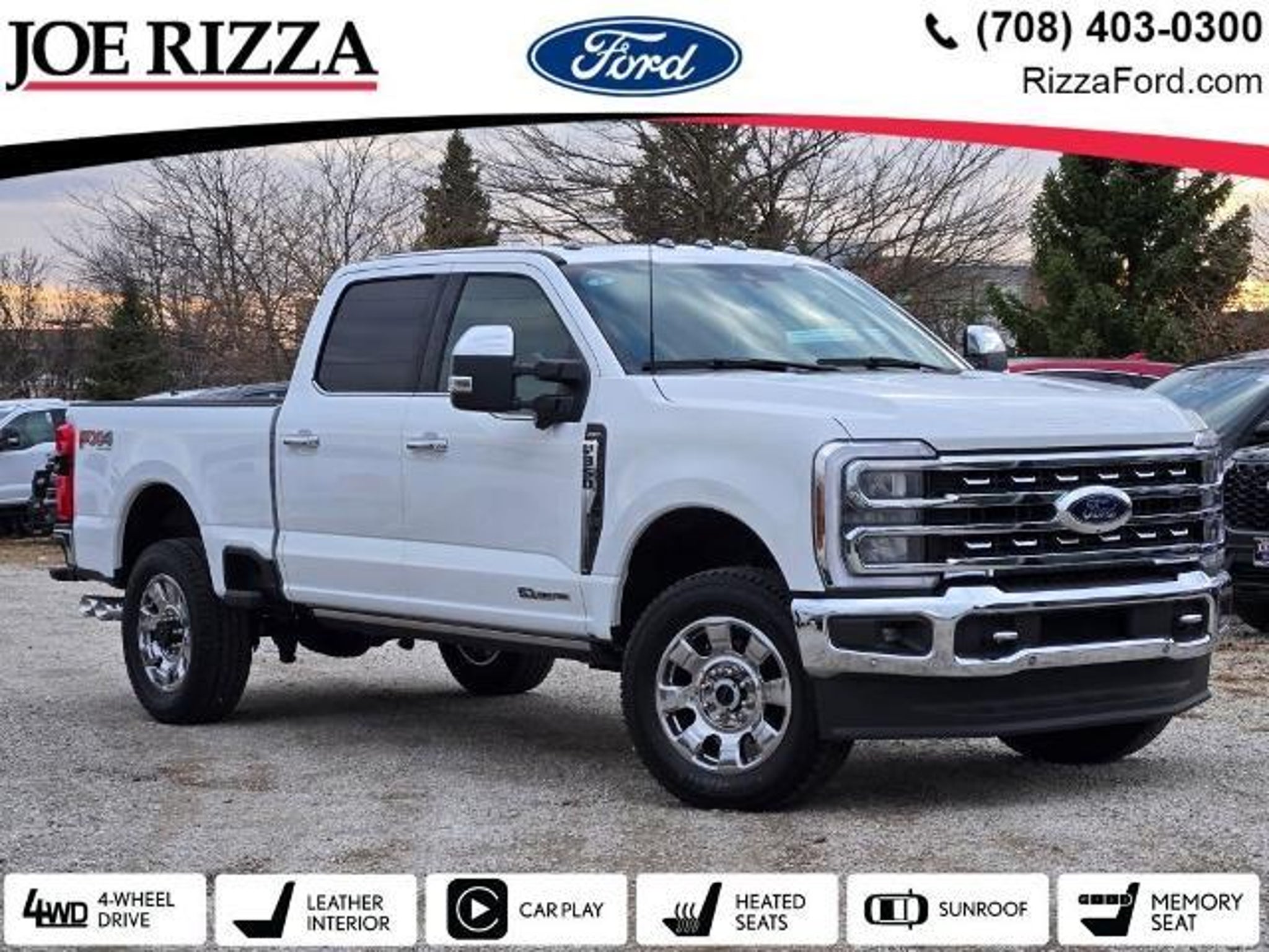Oxford White 2024 Ford F-350SD Lariat 4WD Leather Seats, 4WD, 4-Way Adjustable Headrests, 6 Angular Bright Anodized Step Bars, Chrome Door Handles, Chrome Exhaust Tip, Chrome Package, Electronic-Locking w/3.55 Axle Ratio, Front Sensing System, FX4 Off-Road Package, GVWR: 11,499 lb Payload Package, Head-Up Display, Hill Descent Control, Intelligent Adaptive Cruise Control w/Stop-and-Go, Lariat Ultimate Package, LED Roof Clearance Lights, Navigation system: Connected Navigation (includes complimentary 1-year trial), Off-Road Specifically Tuned Shock Absorbers, Order Code 618A, Power-Deployable Running Boards, Pro Trailer Backup Assist, Pro Trailer Hitch Assist, Radio: B&O Unleashed Sound System by Bang & Olufsen, SiriusXM Radio w/360L, Snow Plow Prep Package, SYNC 4 w/Enhanced Voice Recognition, Tailgate Step & Handle, Unique Chrome Mirror Caps, Unique FX4 Off-Road Box Decal, Upfitter Switches (6), Wheels: 20 Chrome PVD Aluminum, Wireless Charging Pad. Odometer is 23913 miles below market average! Serving all of Chicago, Orland Park, Tinley Park, Frankfort, New Lenox, Mokena, Manhattan, Homer Glen, Lockport, Lemont Oak Lawn, Palos Heights, Palos Hills, Oak Brook, Naperville, Hinsdale, Lombard, Lisle, Bolingbrook, Joliet and Oak Park, Chicago land & Chesterton, Crown Point, DeMotte, Dyer, East Chicago, Griffith, Highland, Hammond, Hebron, Hobart, Kentland, Lake Station, La Porte, Merrillville, Michigan City, Munster, Portage, Rensselaer, Schererville, St. John, Cedar Lake, Valparaiso, and Winfield,Gary, Northwest Indiana. All Fords and Lincolns have went through a 150 point inspection and certification is available. Please ask your salesperson about the benefits of owning a certified vehicle.