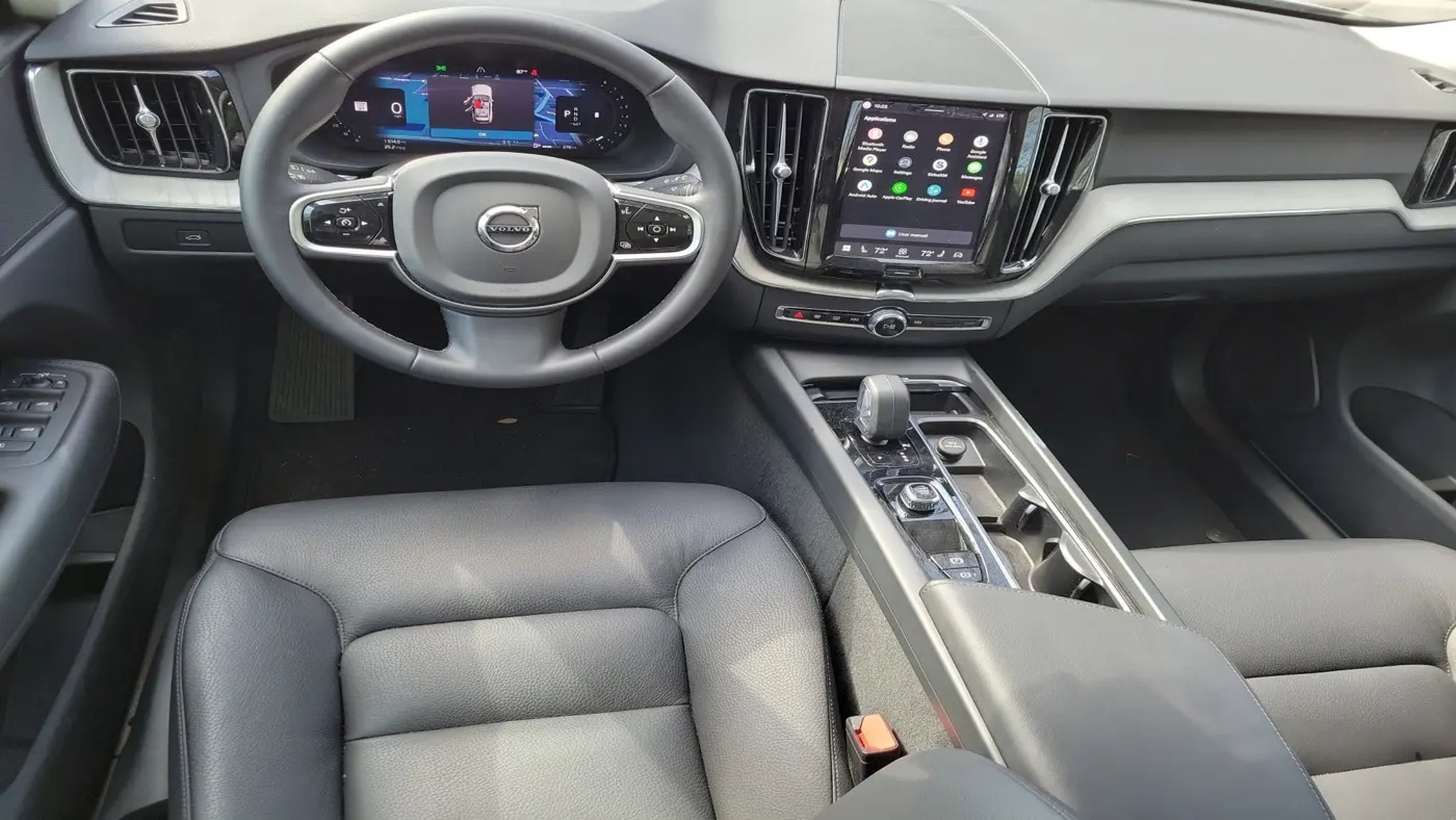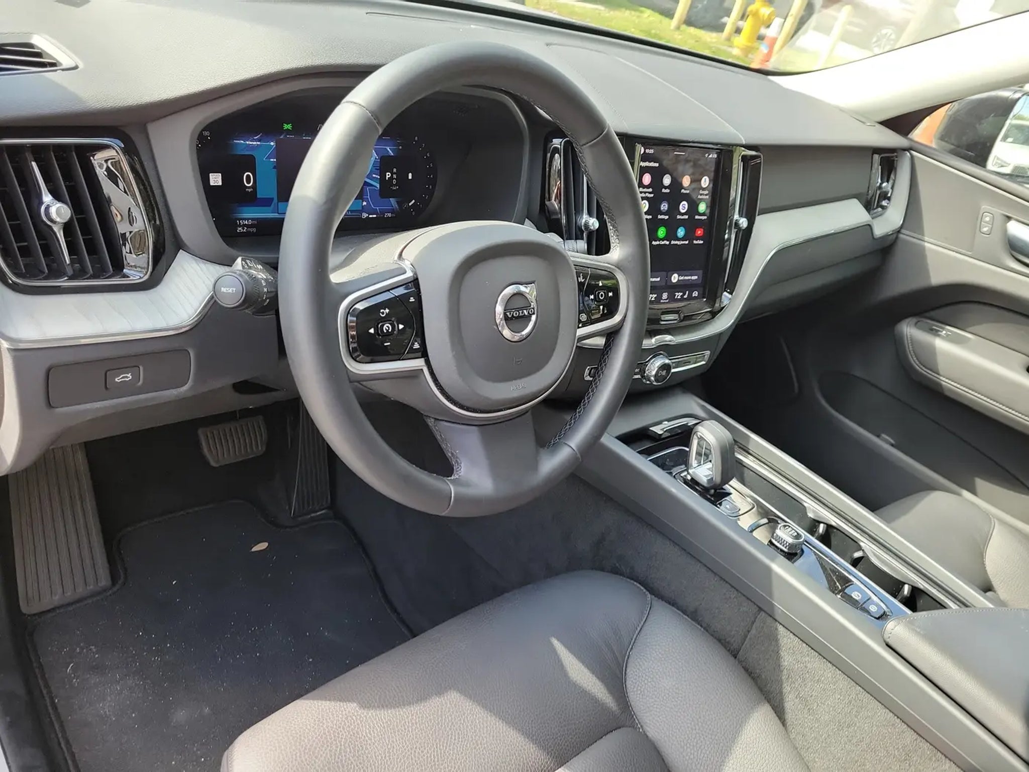 CARFAX One-Owner. Silver 2025 Volvo XC60 B5 Plus 2.0L I4 Turbocharged DOHC 16V LEV3-ULEV70 Automatic with Geartronic AWD 10 Speakers, 4-Wheel Disc Brakes, ABS brakes, Air Conditioning, Alloy wheels, AM/FM radio: SiriusXM, Anti-whiplash front head restraints, Apple CarPlay, Auto High-beam Headlights, Auto-dimming door mirrors, Auto-dimming Rear-View mirror, Automatic temperature control, Brake assist, Bumpers: body-color, Delay-off headlights, Driver door bin, Driver vanity mirror, Dual front impact airbags, Dual front side impact airbags, Electronic Stability Control, Emergency communication system: Volvo Cars App w/4 Year Subscription, Exterior Parking Camera Rear, Four wheel independent suspension, Front anti-roll bar, Front Bucket Seats, Front Center Armrest, Front dual zone A/C, Front fog lights, Front reading lights, Fully automatic headlights, Garage door transmitter: HomeLink, Heated door mirrors, Heated Front Bucket Seats, Heated front seats, Illuminated entry, Knee airbag, Leather Shift Knob, Leatherette Upholstery, Low tire pressure warning, Memory seat, Occupant sensing airbag, Outside temperature display, Overhead airbag, Panic alarm, Passenger door bin, Passenger vanity mirror, Power door mirrors, Power driver seat, Power Liftgate, Power moonroof, Power passenger seat, Power steering, Power windows, Radio data system, Radio: High Performance Sound System, Rain sensing wipers, Rear anti-roll bar, Rear fog lights, Rear reading lights, Rear seat center armrest, Rear window defroster, Rear window wiper, Remote keyless entry, Security system, Speed control, Split folding rear seat, Spoiler, Steering wheel mounted audio controls, Tachometer, Telescoping steering wheel, Tilt steering wheel, Traction control, Trip computer, Turn signal indicator mirrors, Variably intermittent wipers, and Wheels: 19 5-V Spoke Black Diamond Cut Alloy.Odometer is 4528 miles below market average! Priced below KBB Fair Purchase Price! 23/30 City/Highway MPGCALL USED CAR SALES FOR INFORMATION AND IMMEDIATE ASSISTANCE .