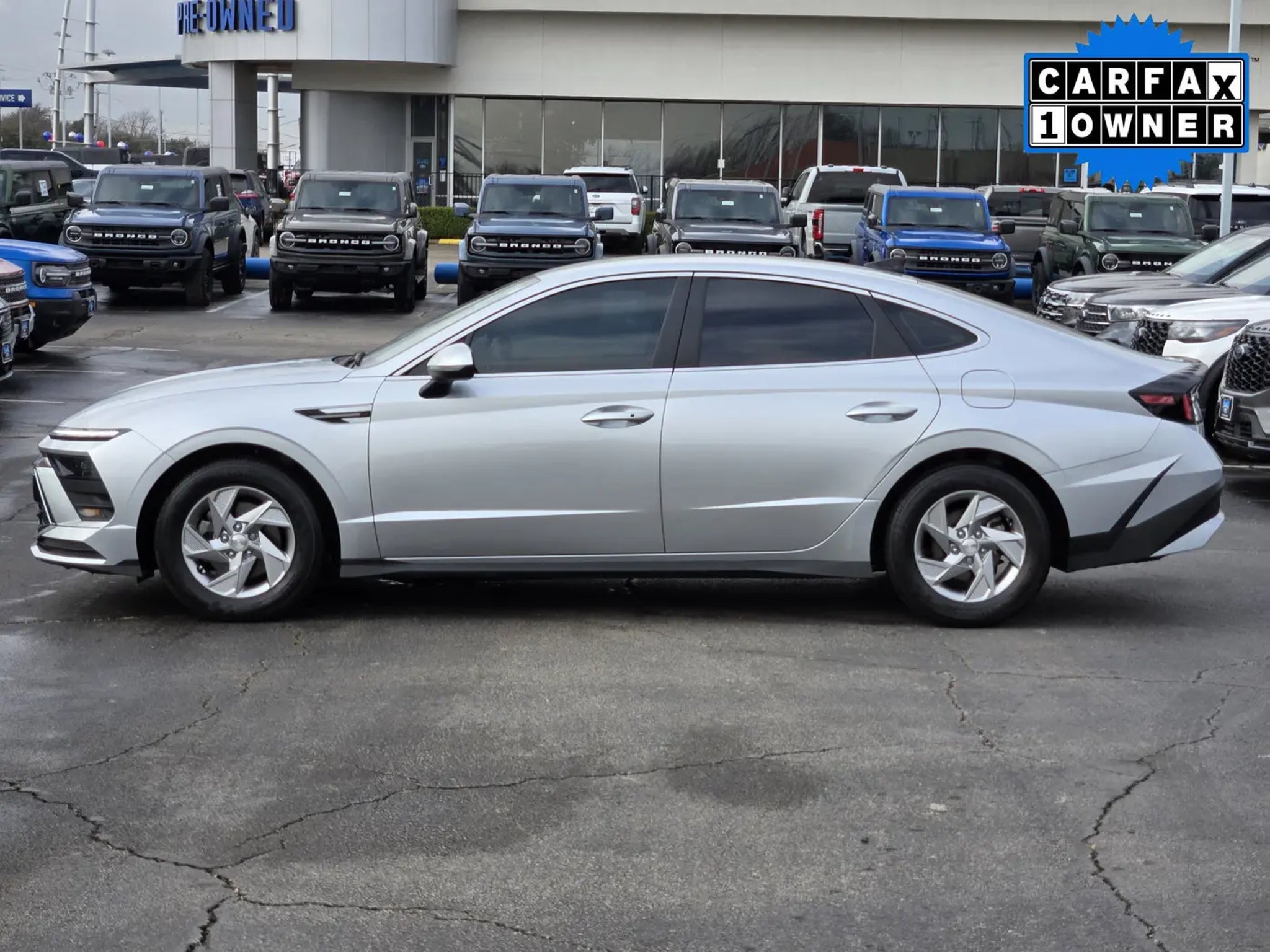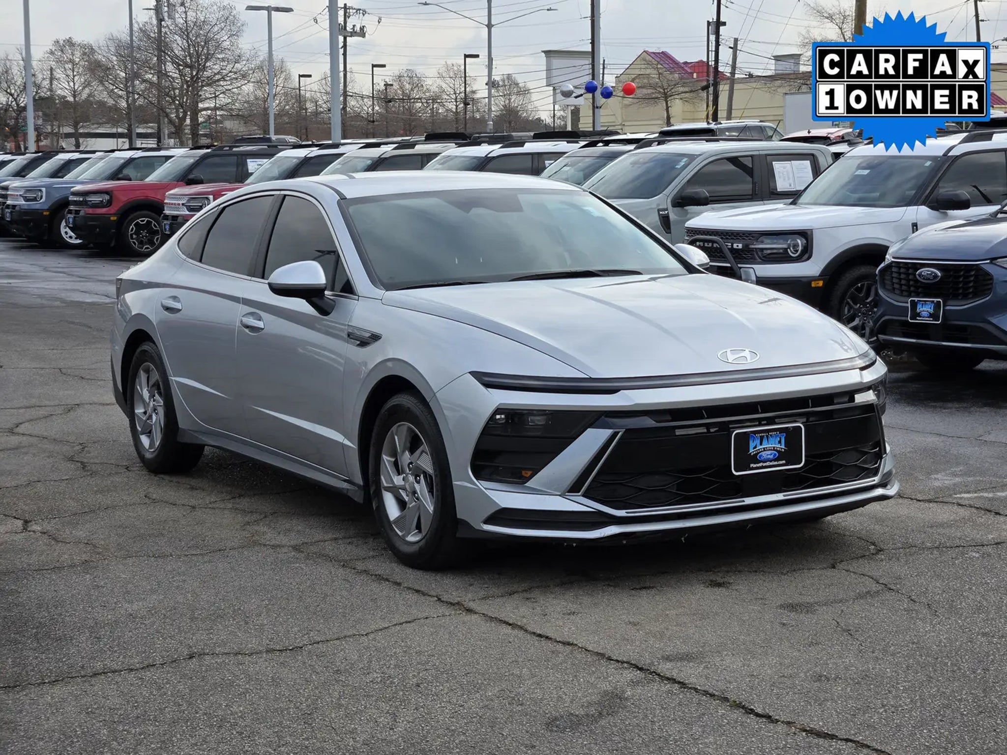 Refined and responsive, our One Owner, Accident-Free 2025 Hyundai Sonata SE Sedan delivers premium features and a bold presence in Aero Silver. Powered by a 2.5 Liter 4 Cylinder delivering 191hp to a paddle-shifted 8 Speed Automatic transmission with Drive Mode Select to help fine-tune performance further. This Front Wheel Drive sedan also combines sharp handling with the ability to return nearly 36mpg on the highway. Also sharp-looking, our Sonata makes a striking impression with LED lighting, gloss-black rocker panels, 17-inch alloy wheels, twin exhaust tips, a black mesh grille, a rear spoiler, and a hands-free trunk.Our SE cabin rewards owners with impressive comfort and technology. Notice the heated cloth front seats with eight-way power for the driver, a multifunction steering wheel, dual-zone automatic climate control, a 4.2-inch driver display, and keyless access/ignition. Dual 12.3-inch touchscreens are conveniently located for seamless connections with Apple CarPlay®, Android Auto®, Bluetooth®, and a six-speaker sound system. The result is a roomy interior that's ready for modern-day driving!Hyundai provides a comprehensive suite of safety features to ensure your peace of mind, including automatic braking, adaptive cruise control, lane-keeping assistance, blind-spot monitoring, a rearview camera, a driver attention monitor, and more. Our Sonata SE sedan is made to raise the bar for midsize sedans! Save this Page and Call for Availability. We Know You Will Enjoy Your Planet Ford Dallas Test Drive Towards Ownership!